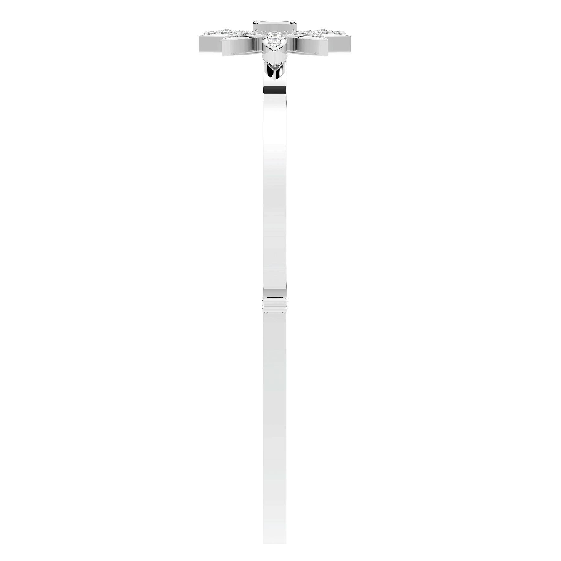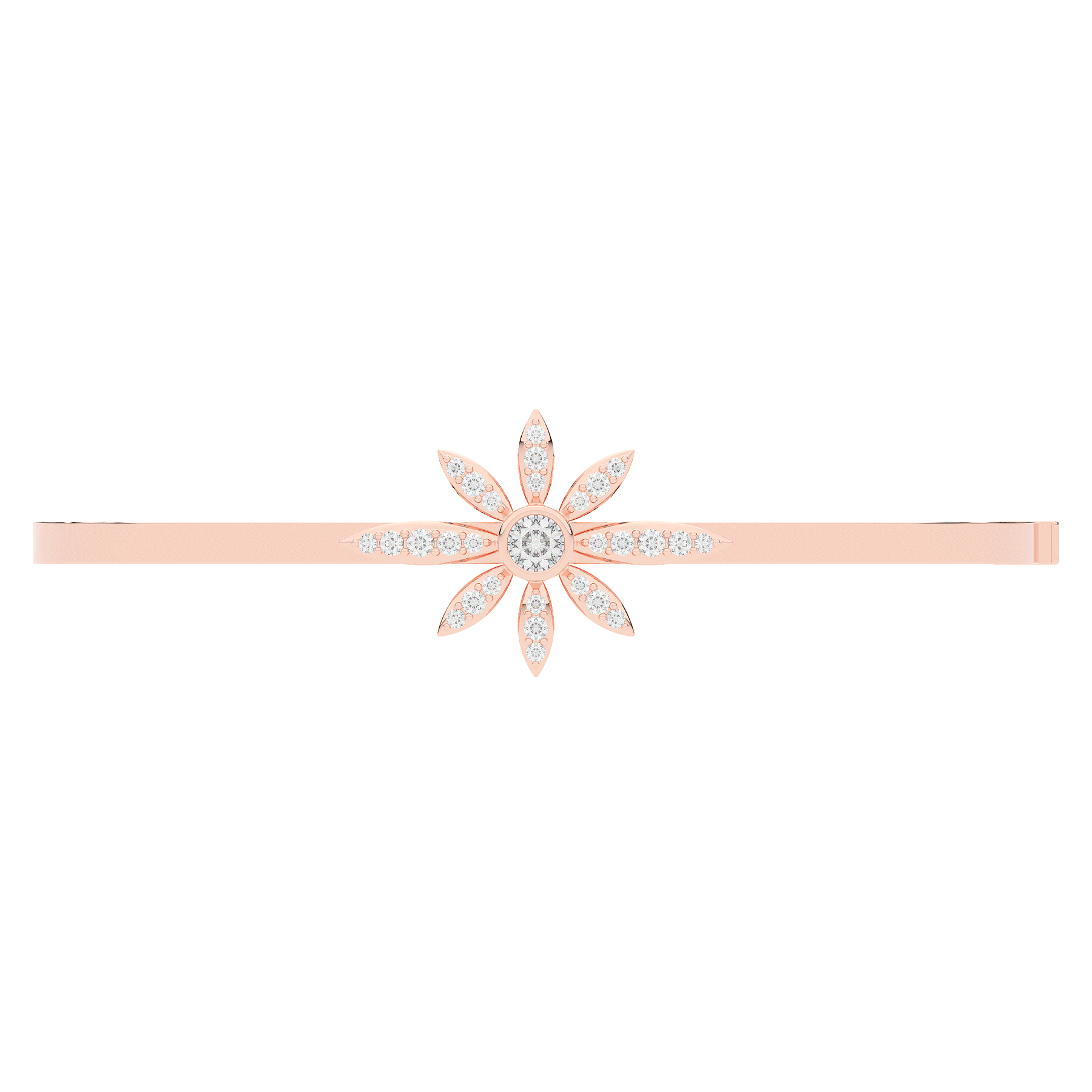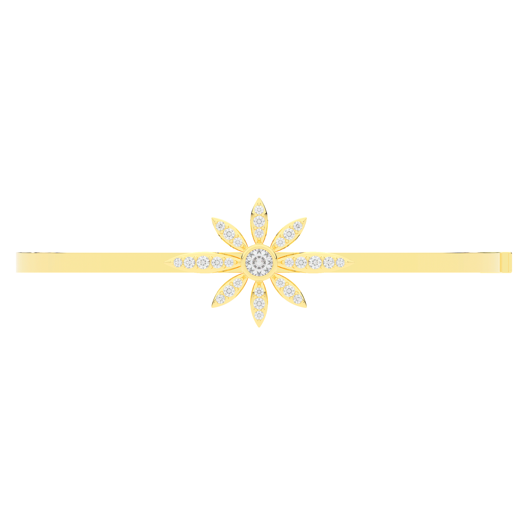This beautiful bangle features a stylized flower accented with bright round lab grown diamonds on its top. This bangle is available in 14k white, yellow, or rose gold.