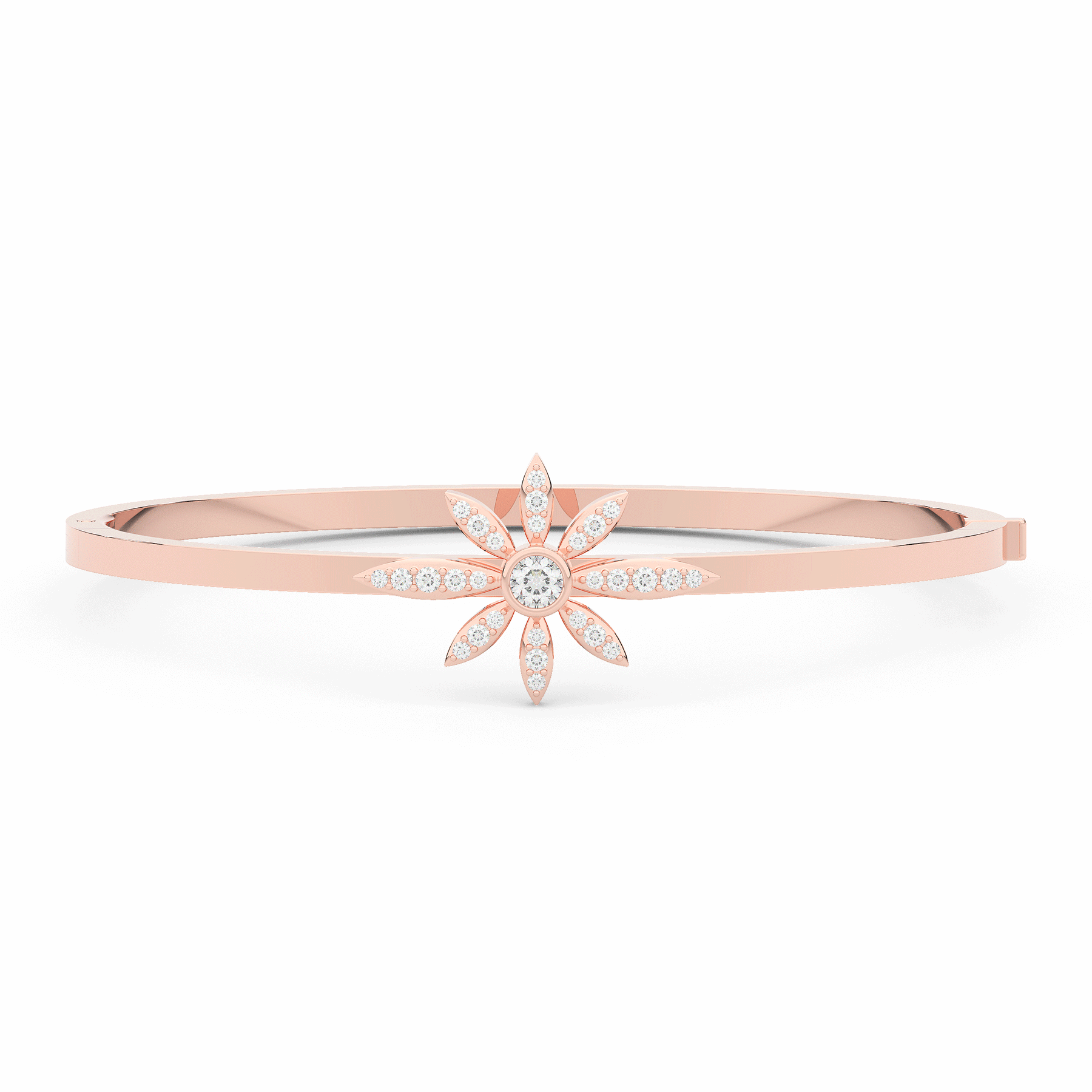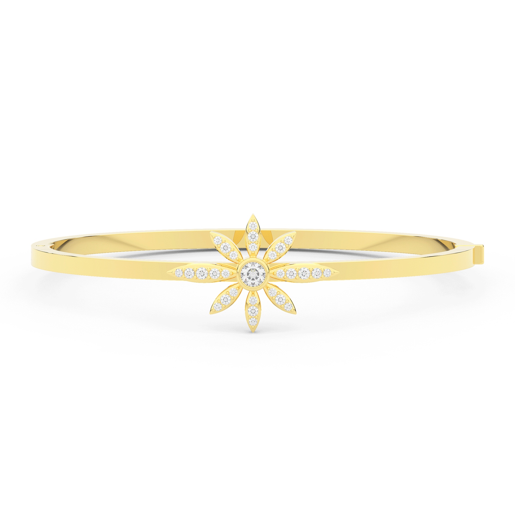 0.40CT.TW ROUND LAB BEZEL AND PRONG SET FLOWER DIAMOND BANGLE - Nazarelle