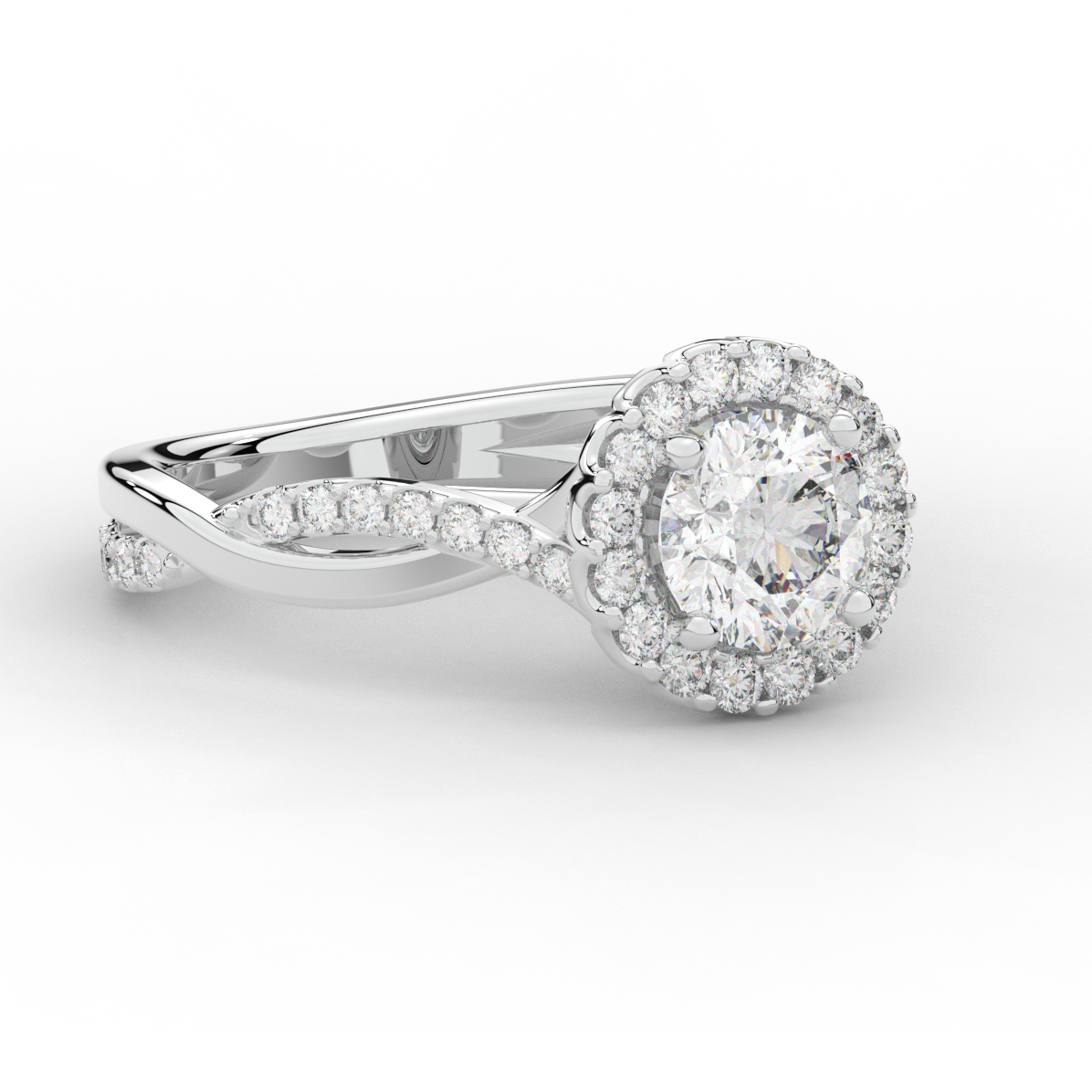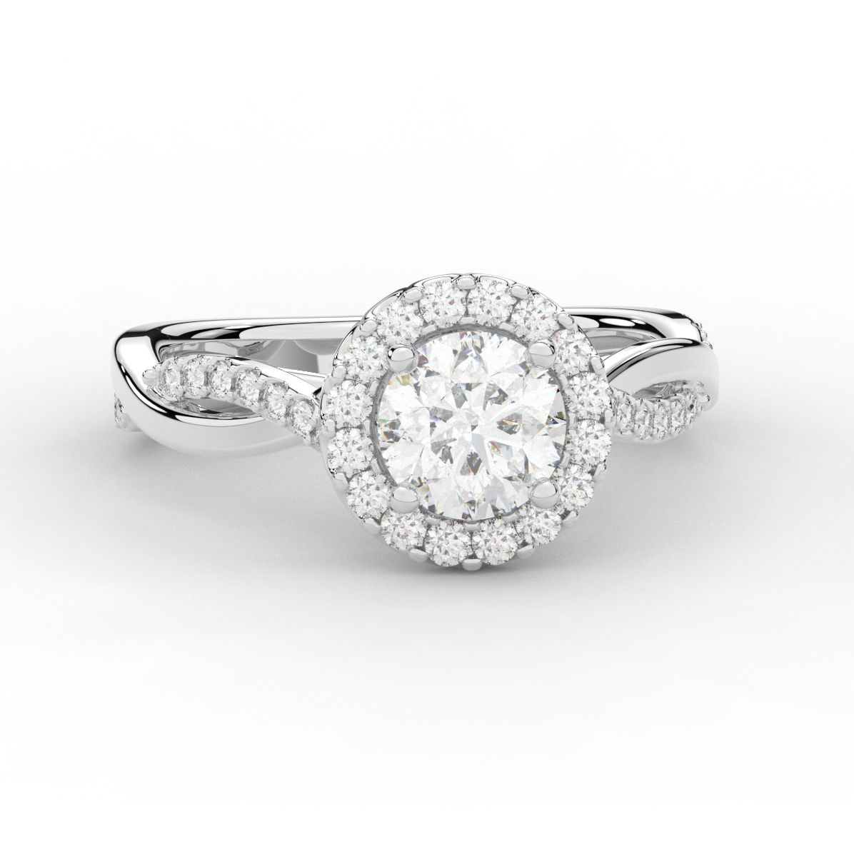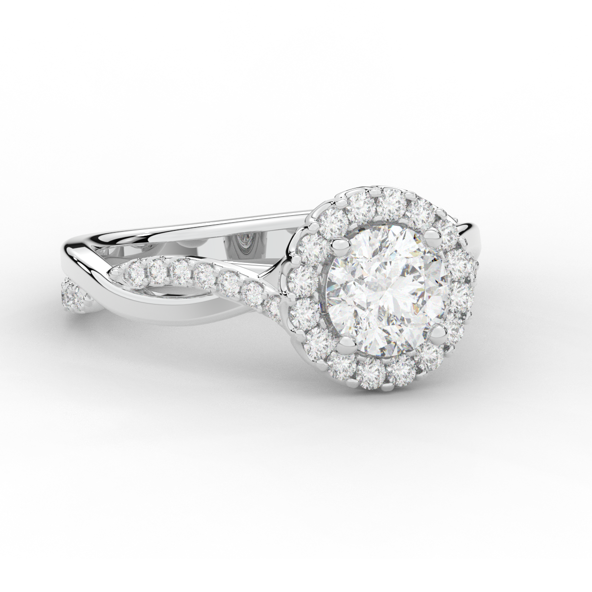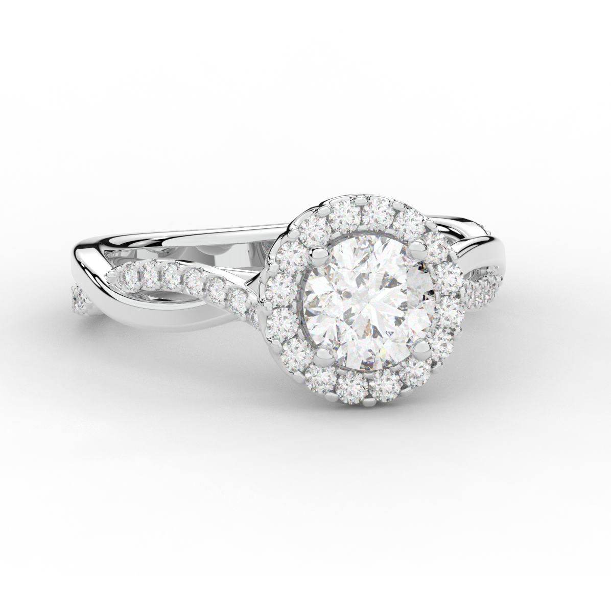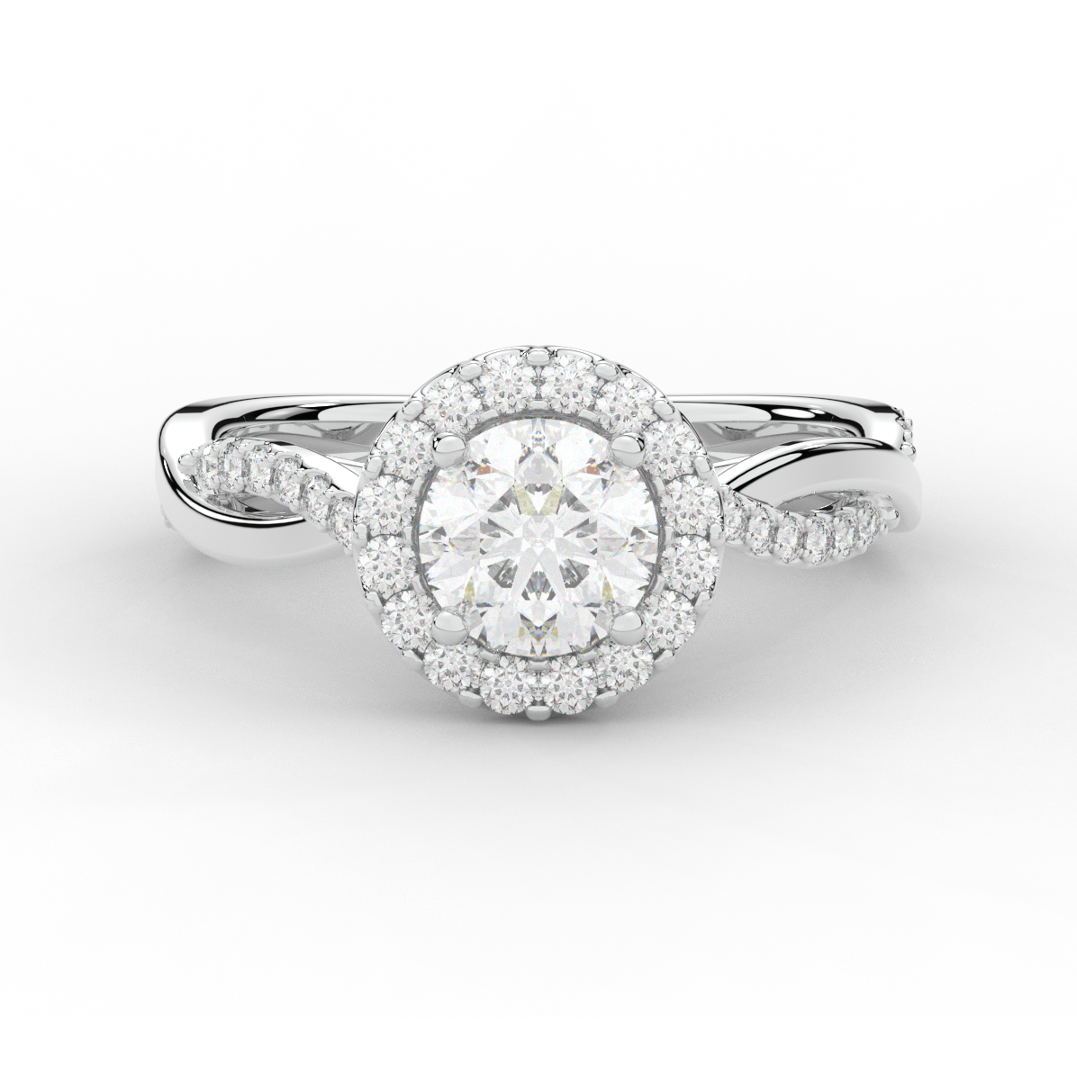 1.35CT.TW ROUND LAB DIAMOND HALO TWIST BAND ENGAGEMENT RING - Nazarelle