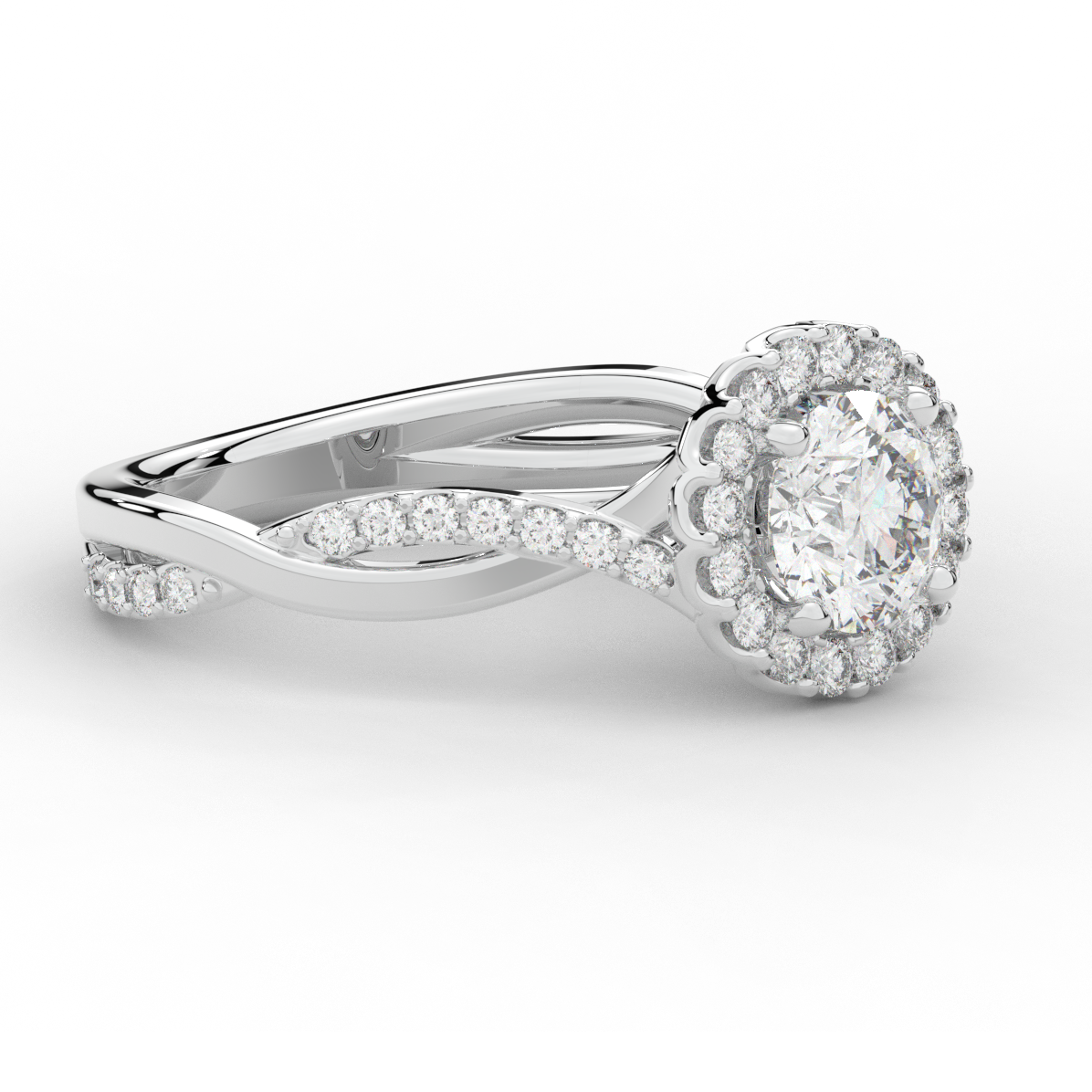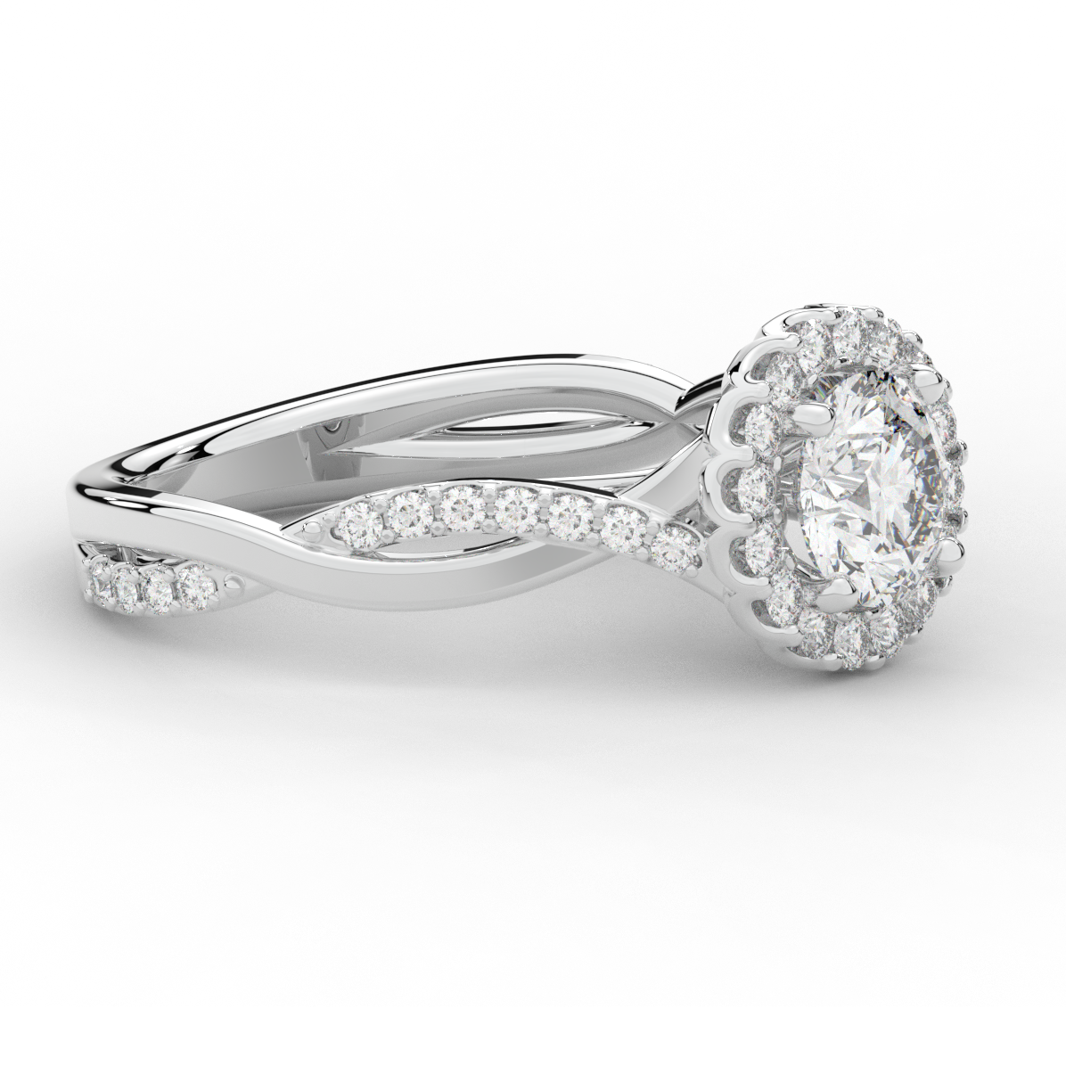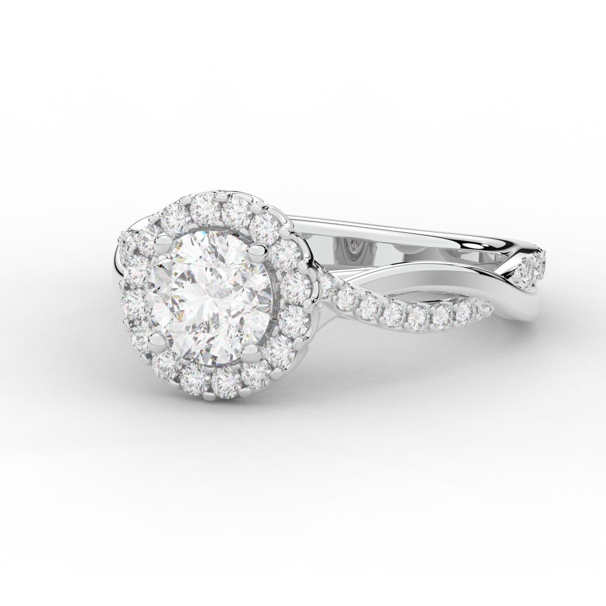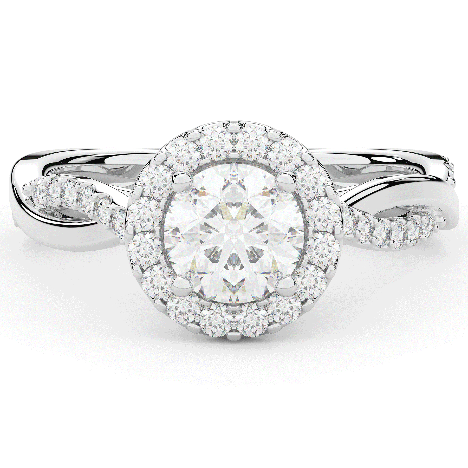 1.35CT.TW ROUND LAB DIAMOND HALO TWIST BAND ENGAGEMENT RING - Nazarelle