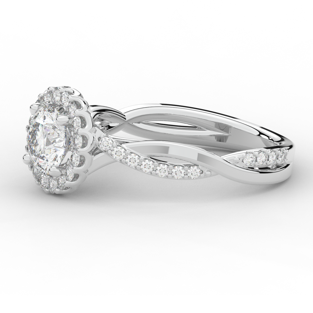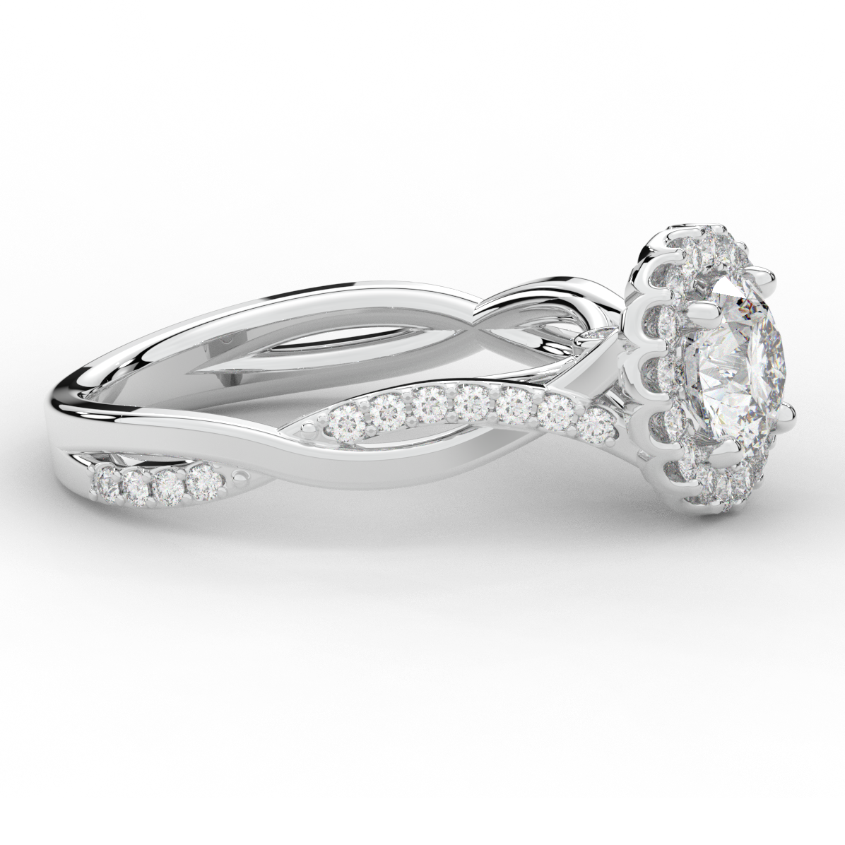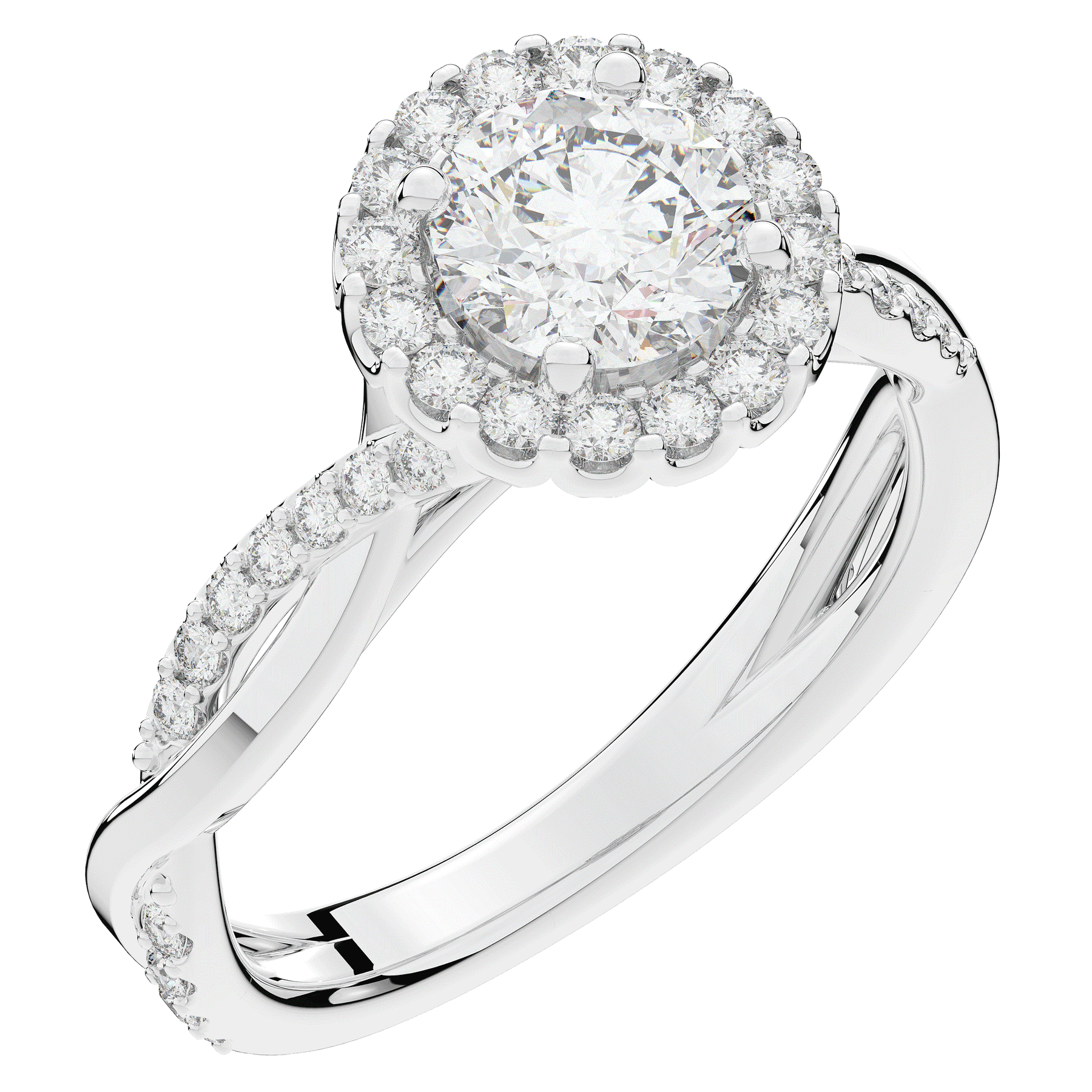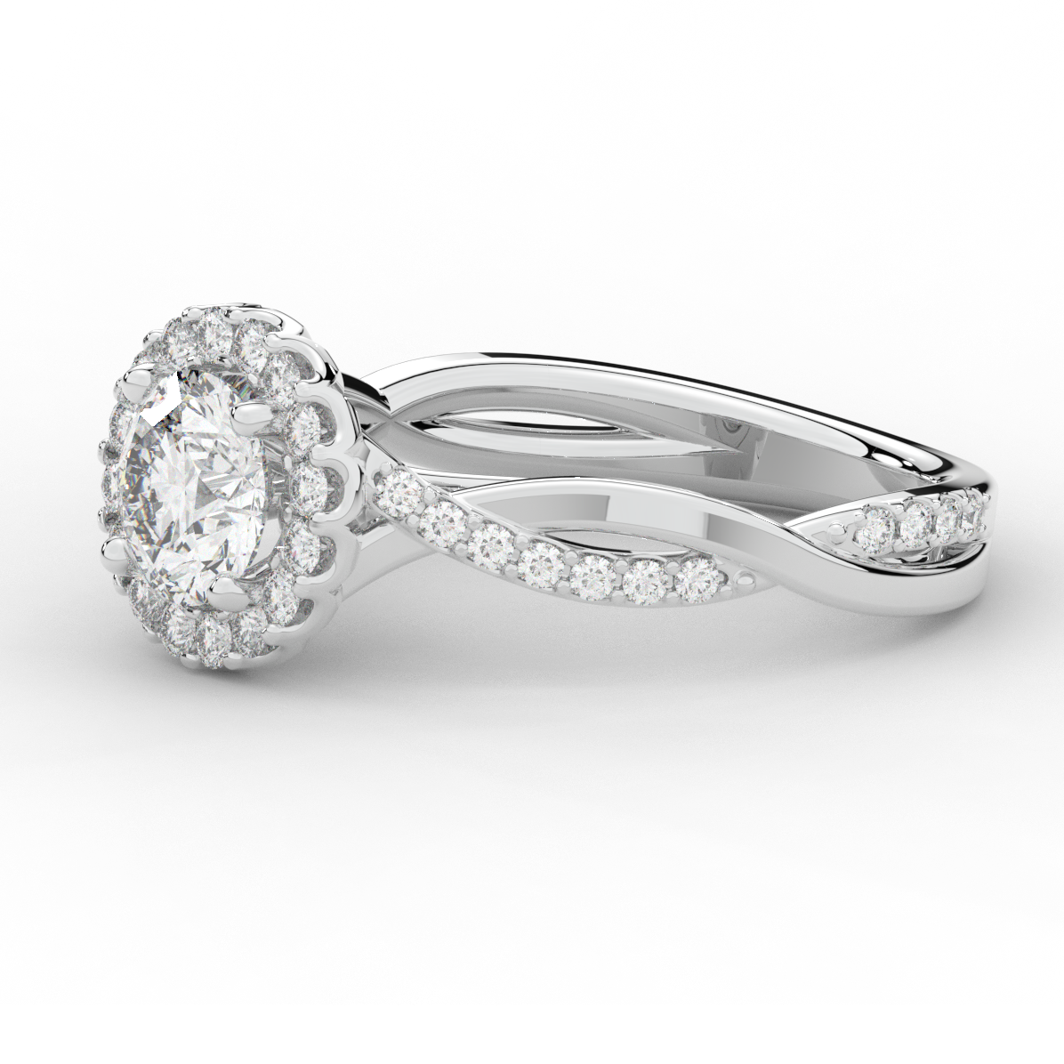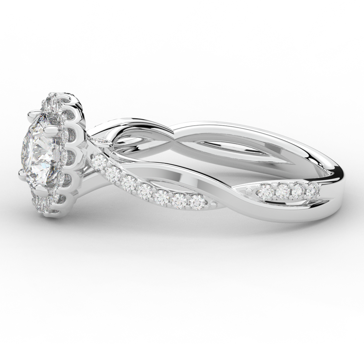 1.35CT.TW ROUND LAB DIAMOND HALO TWIST BAND ENGAGEMENT RING - Nazarelle