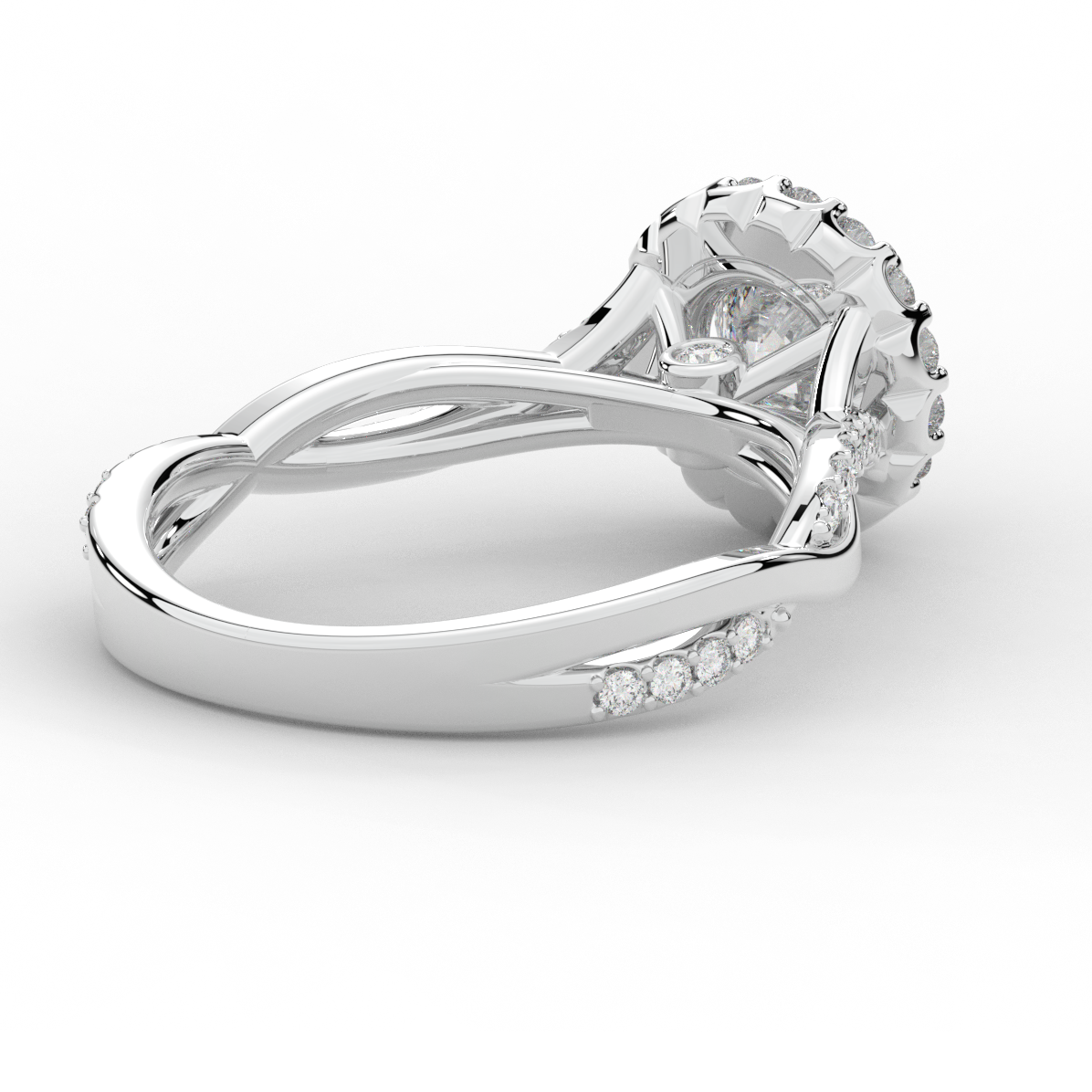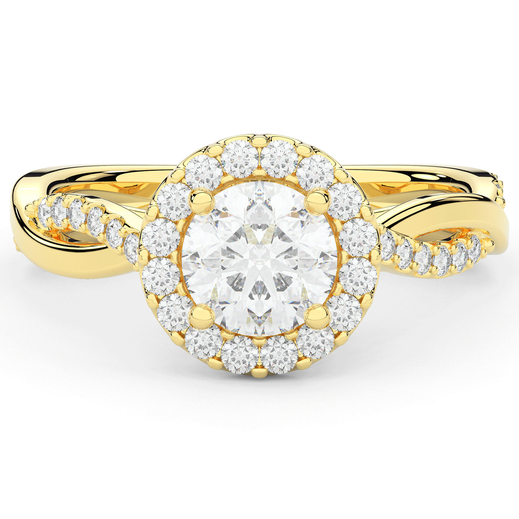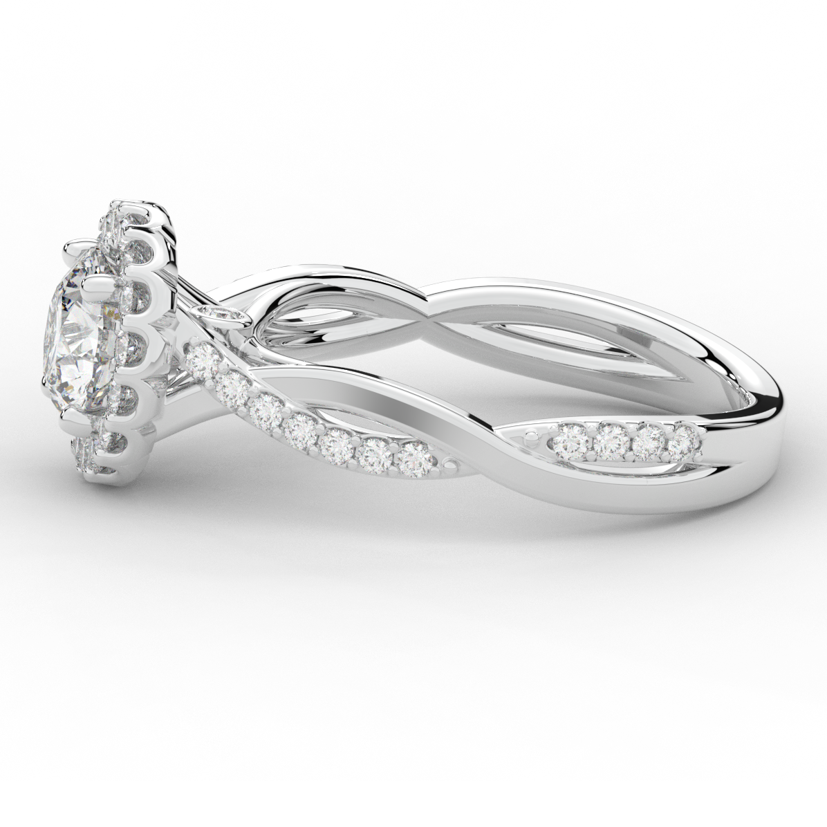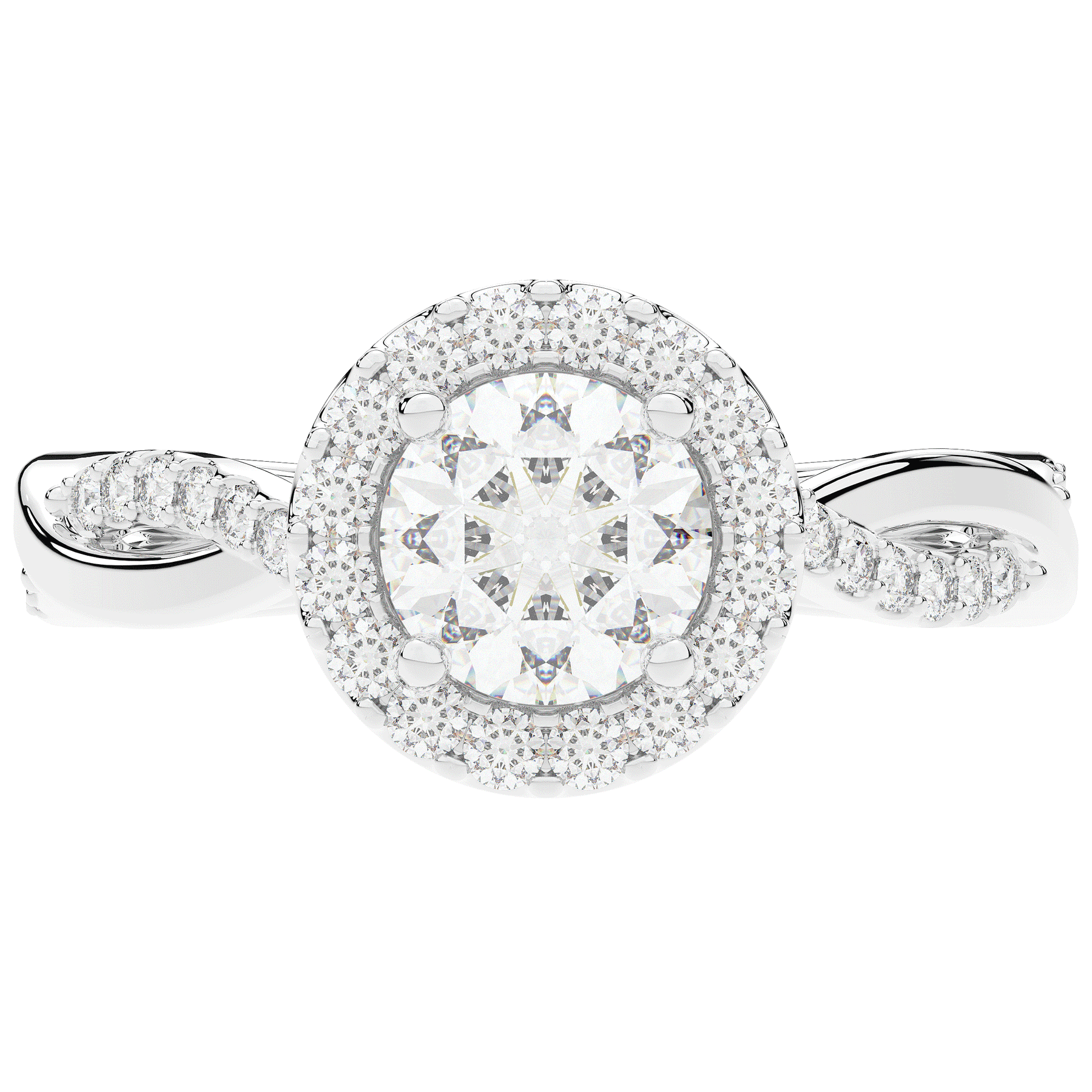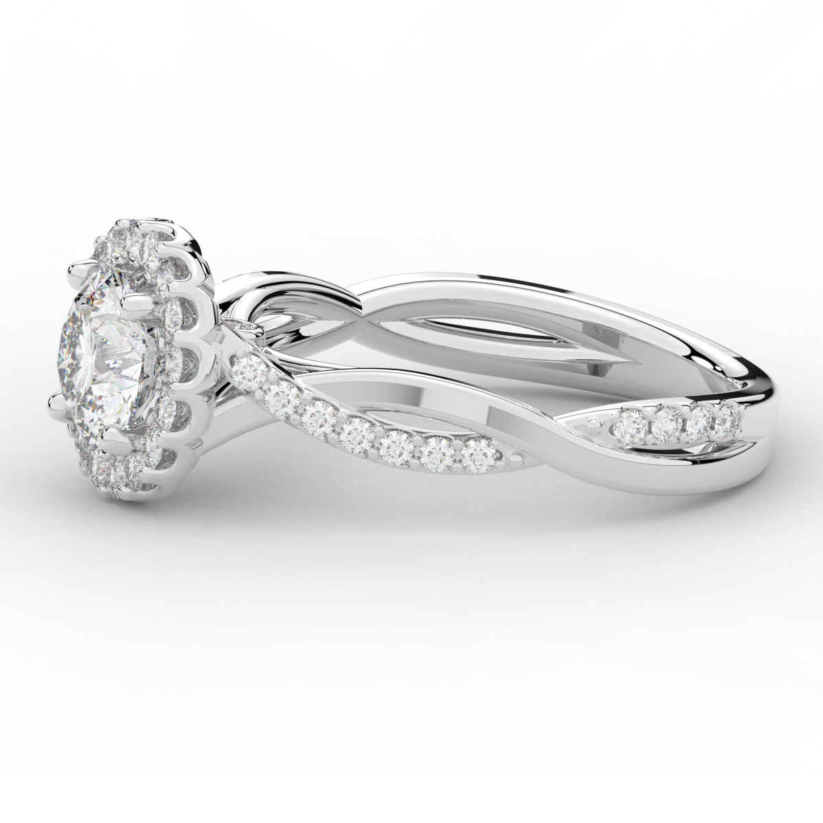 1.35CT.TW ROUND LAB DIAMOND HALO TWIST BAND ENGAGEMENT RING - Nazarelle