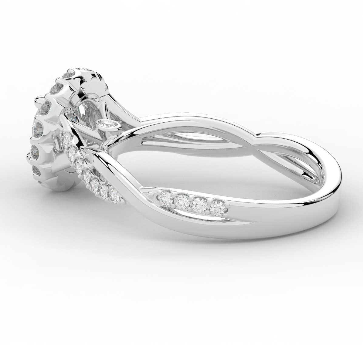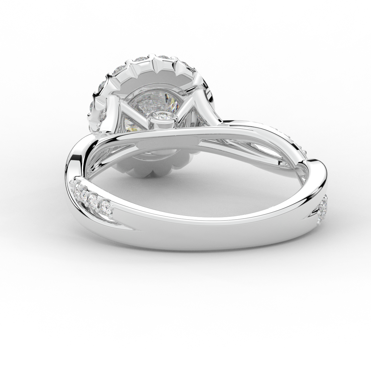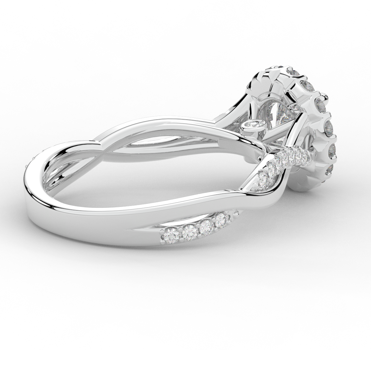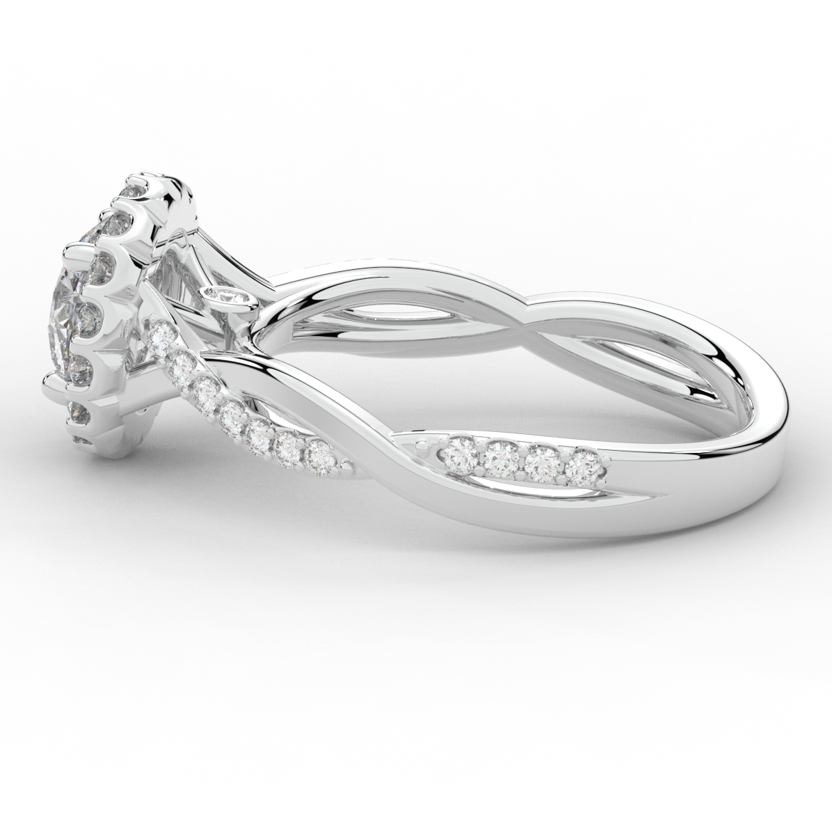 1.35CT.TW ROUND LAB DIAMOND HALO TWIST BAND ENGAGEMENT RING - Nazarelle