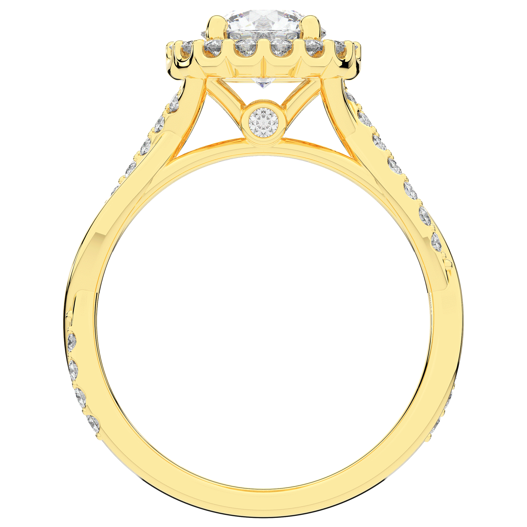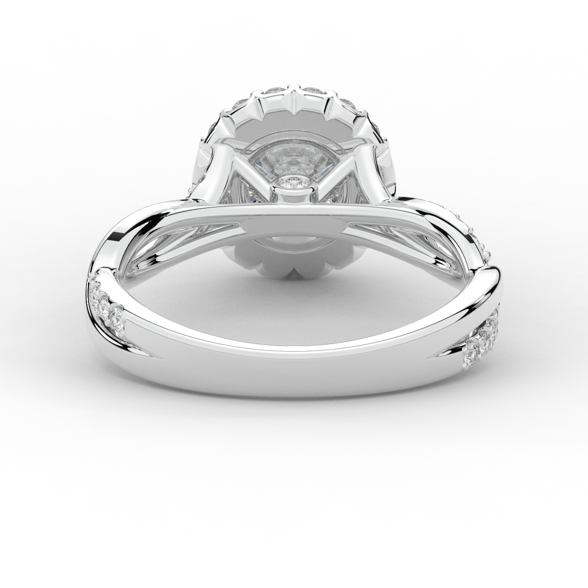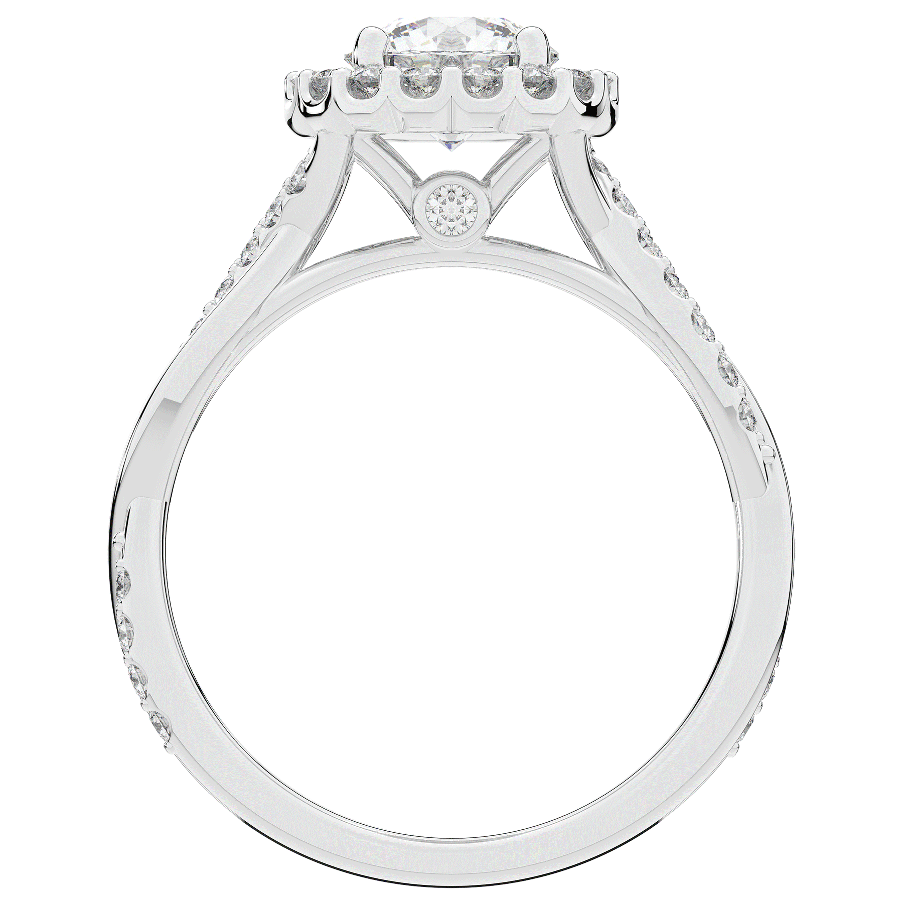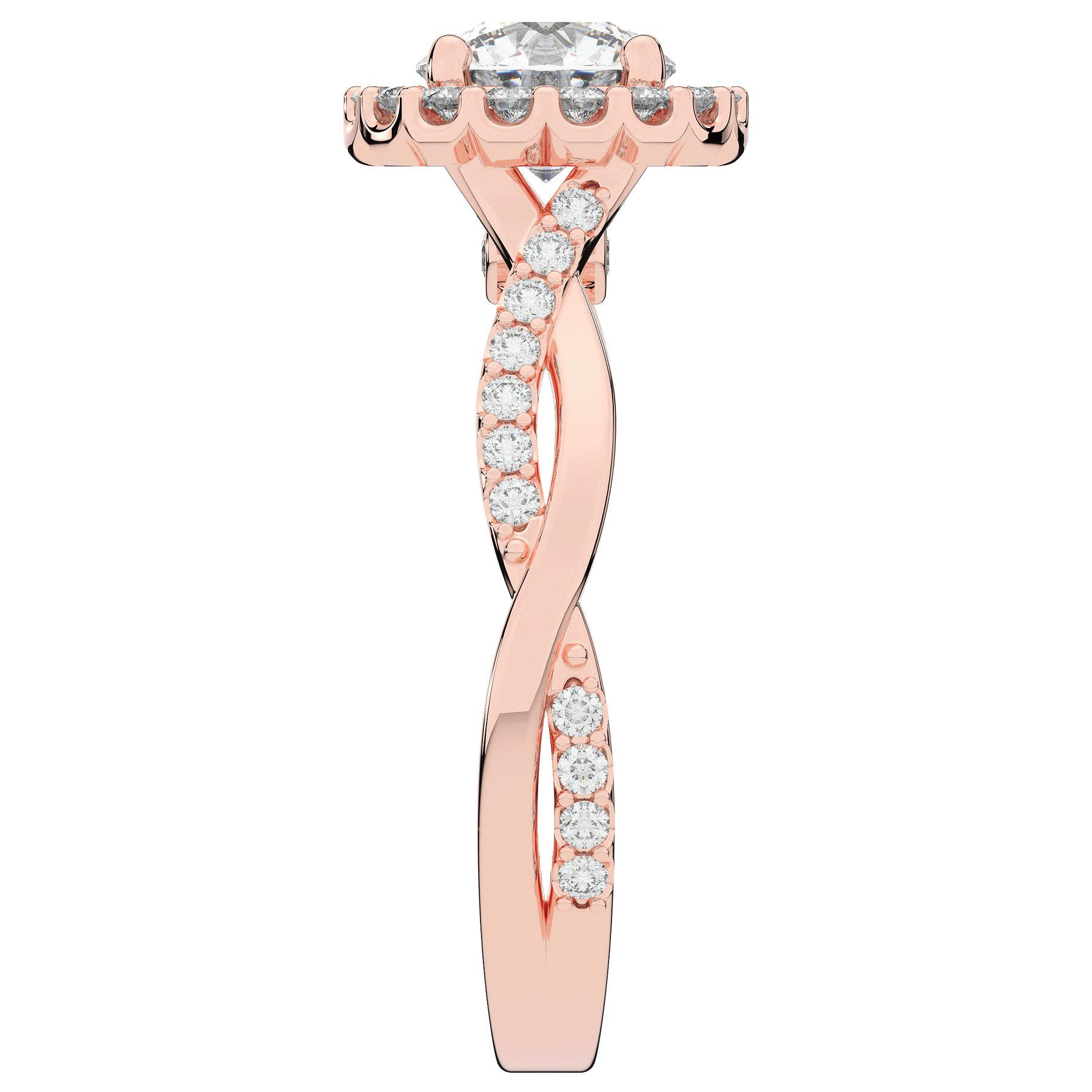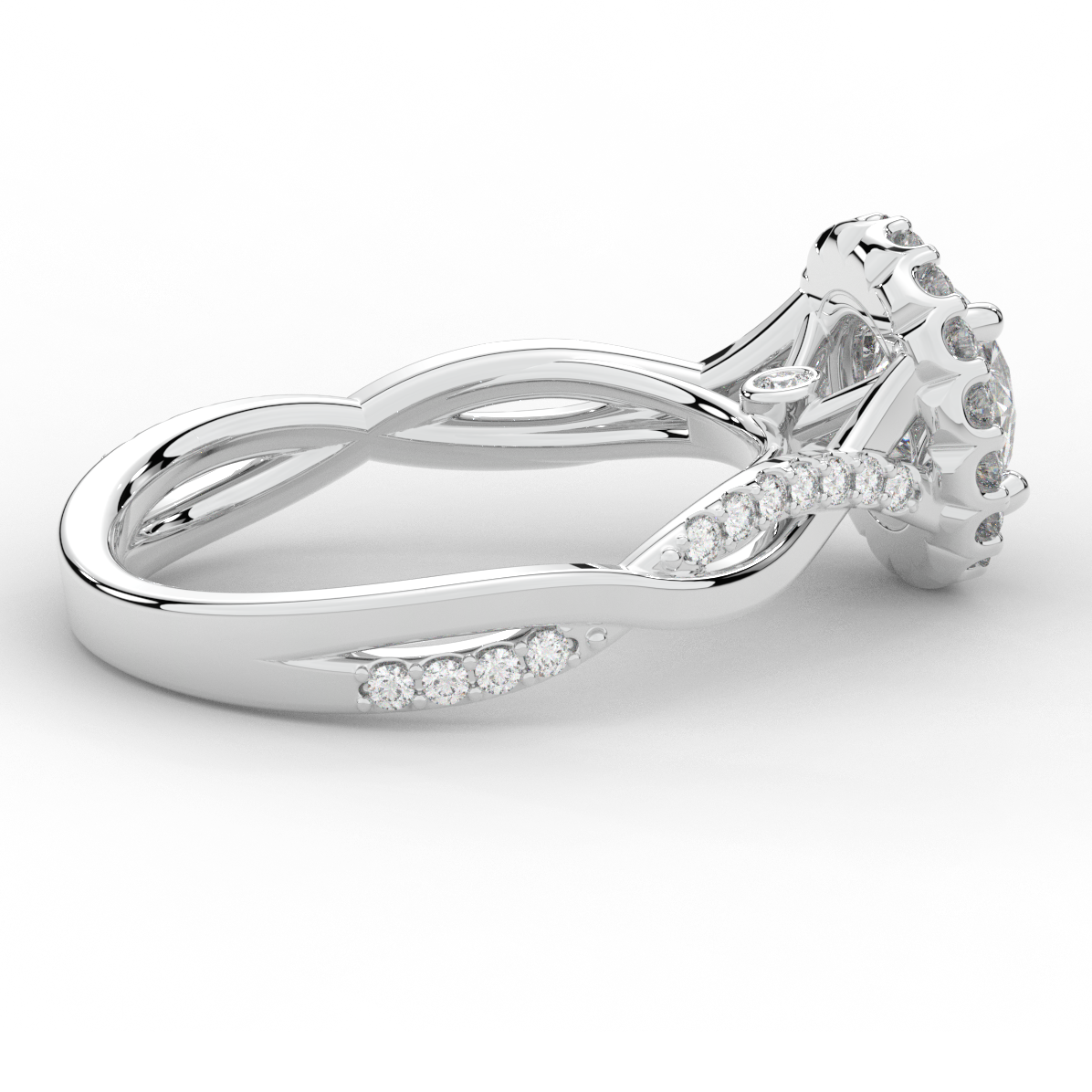 1.35CT.TW ROUND LAB DIAMOND HALO TWIST BAND ENGAGEMENT RING - Nazarelle