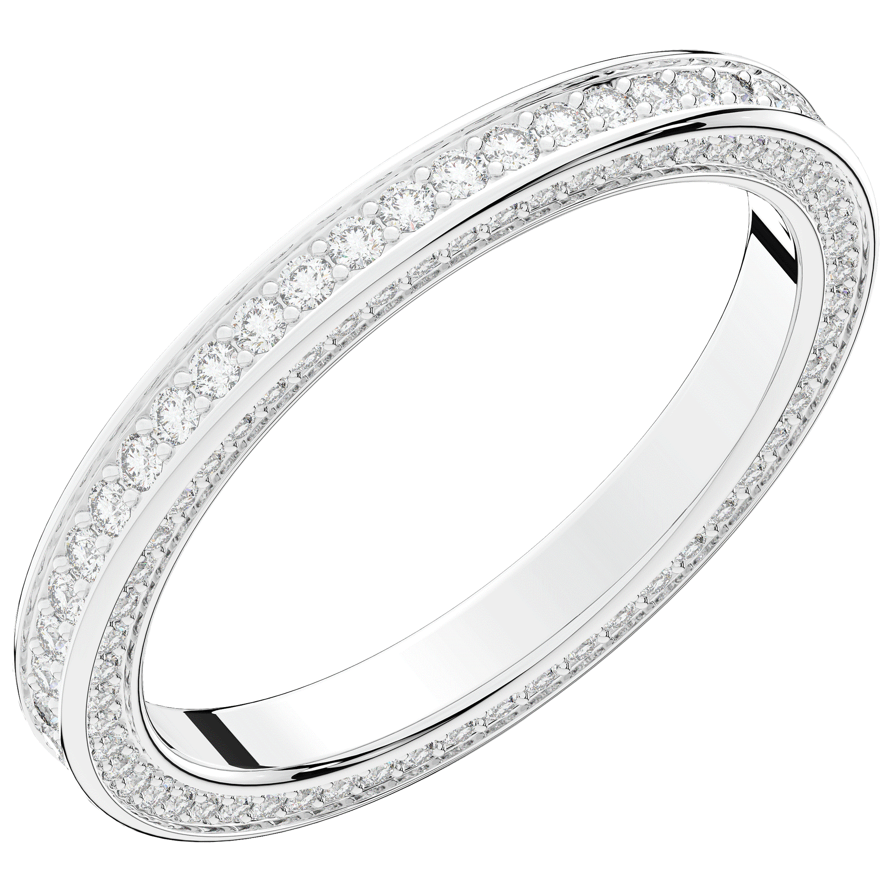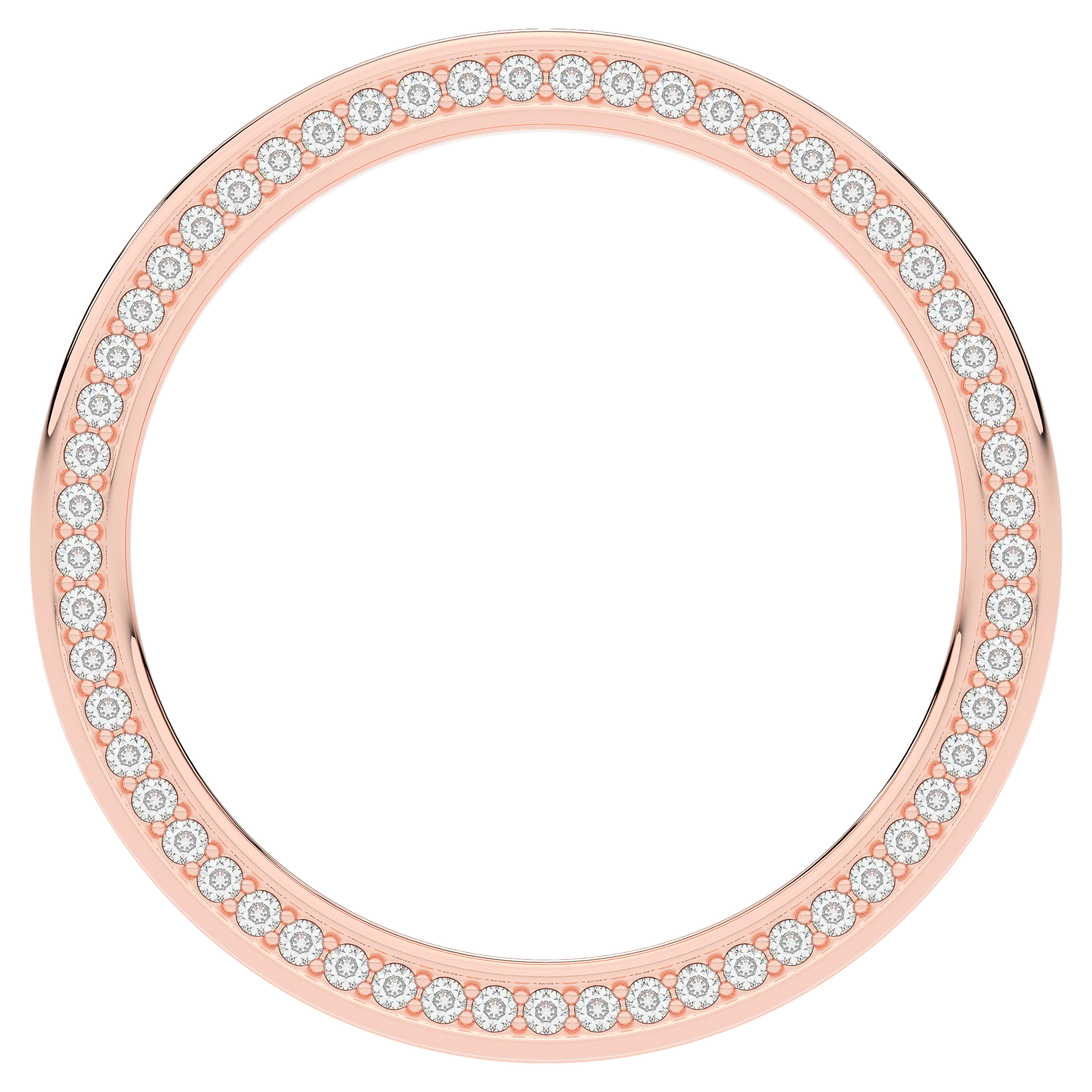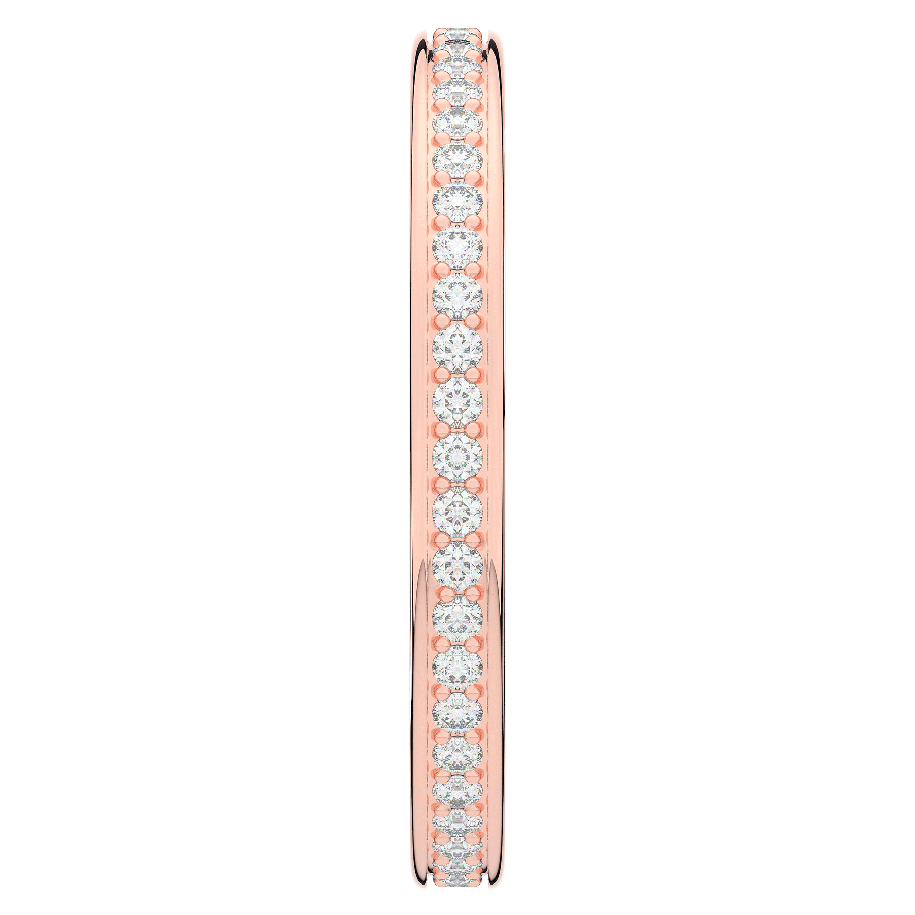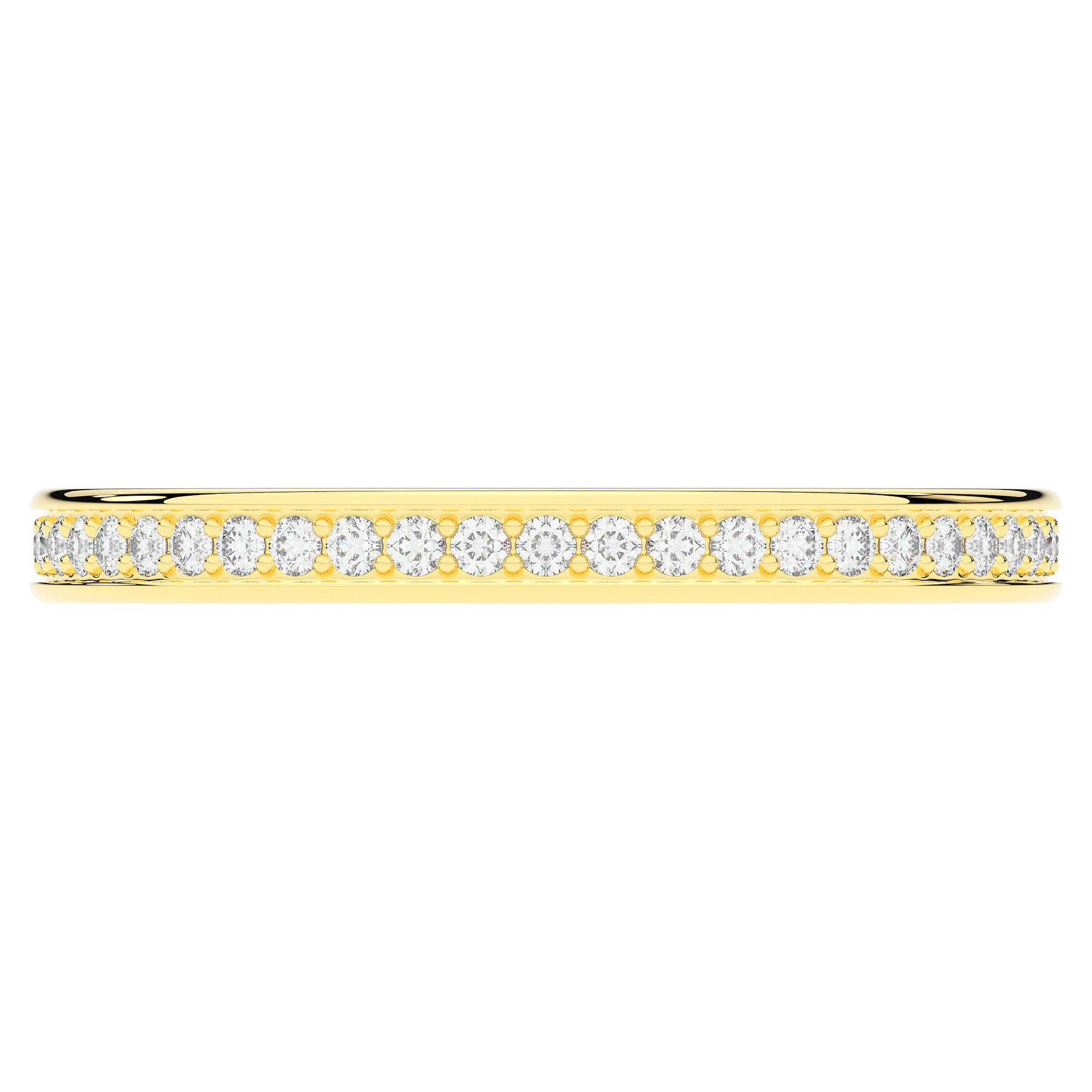 This stunning band features round lab accent diamonds on three sides in an eternity style. This ring is available in 14k white, yellow or rose gold, 18k yellow gold, as well as platinum.