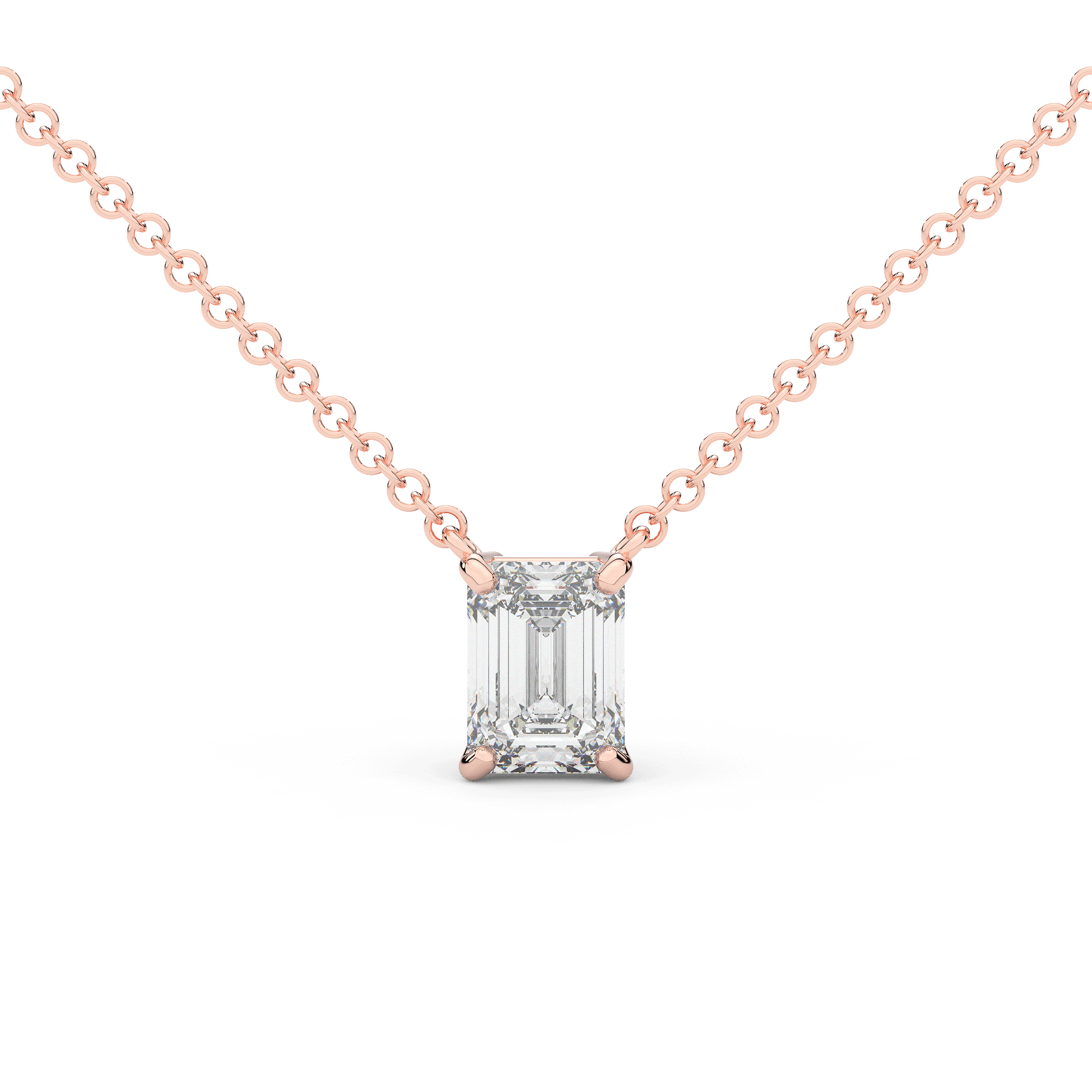 This beautiful pendant marries simplicity with elegance, featuring a bright emerald cut lab grown diamond in a simple solitaire setting. This pendant is available in 14k white, yellow, or rose gold.