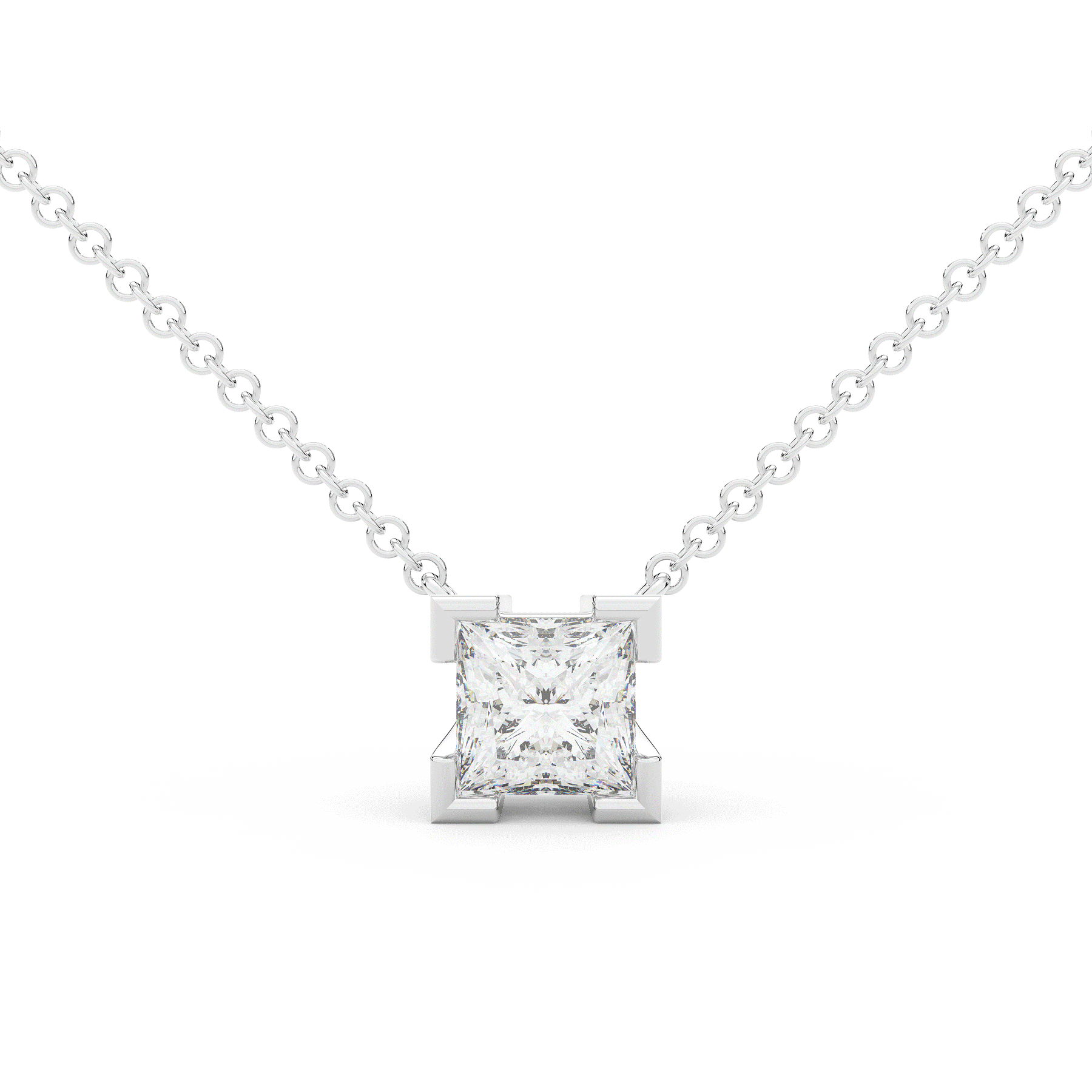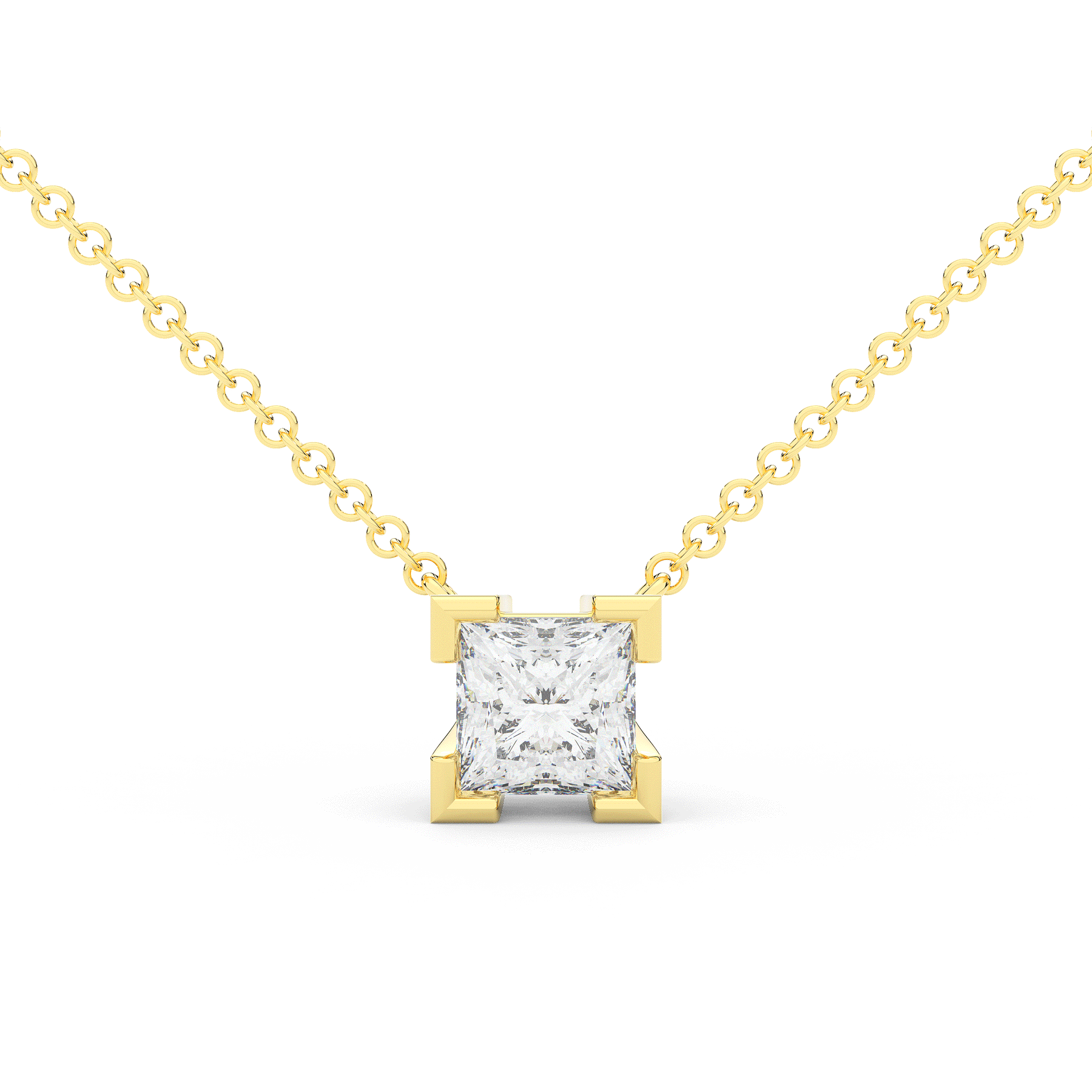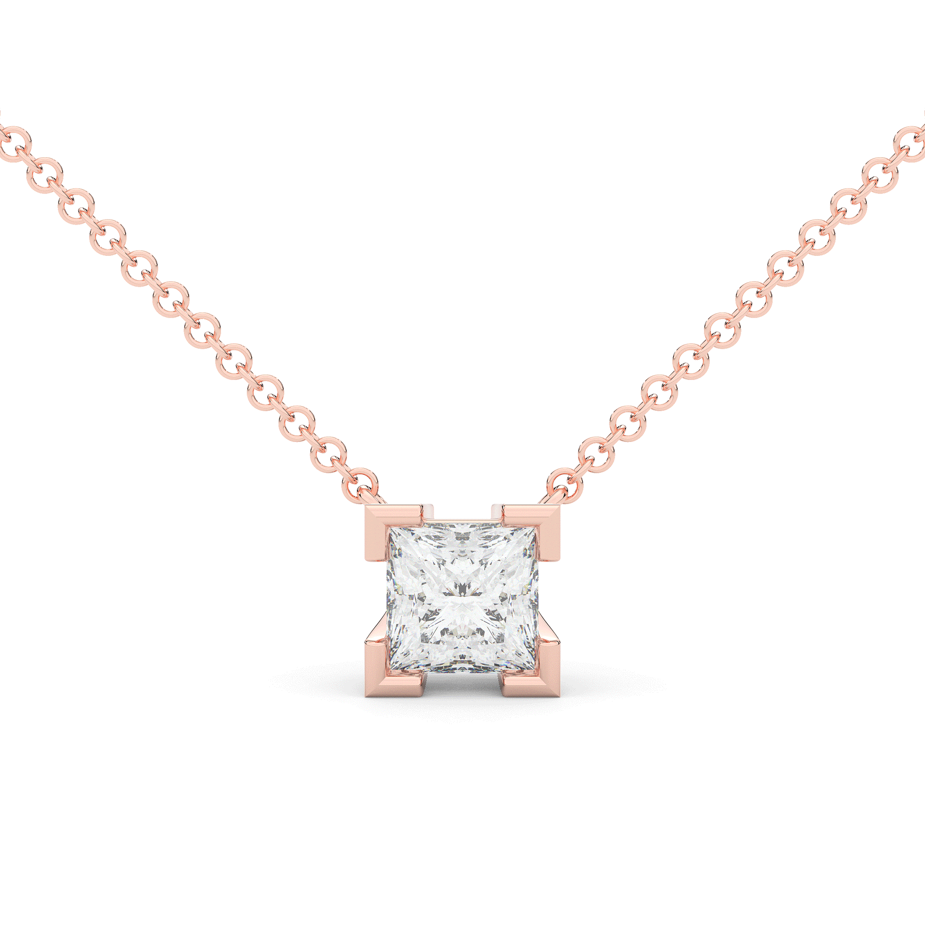 This beautiful pendant marries simplicity with elegance, featuring a bright princess lab grown diamond in a simple solitaire setting. This pendant is available in 14k white, yellow, or rose gold.