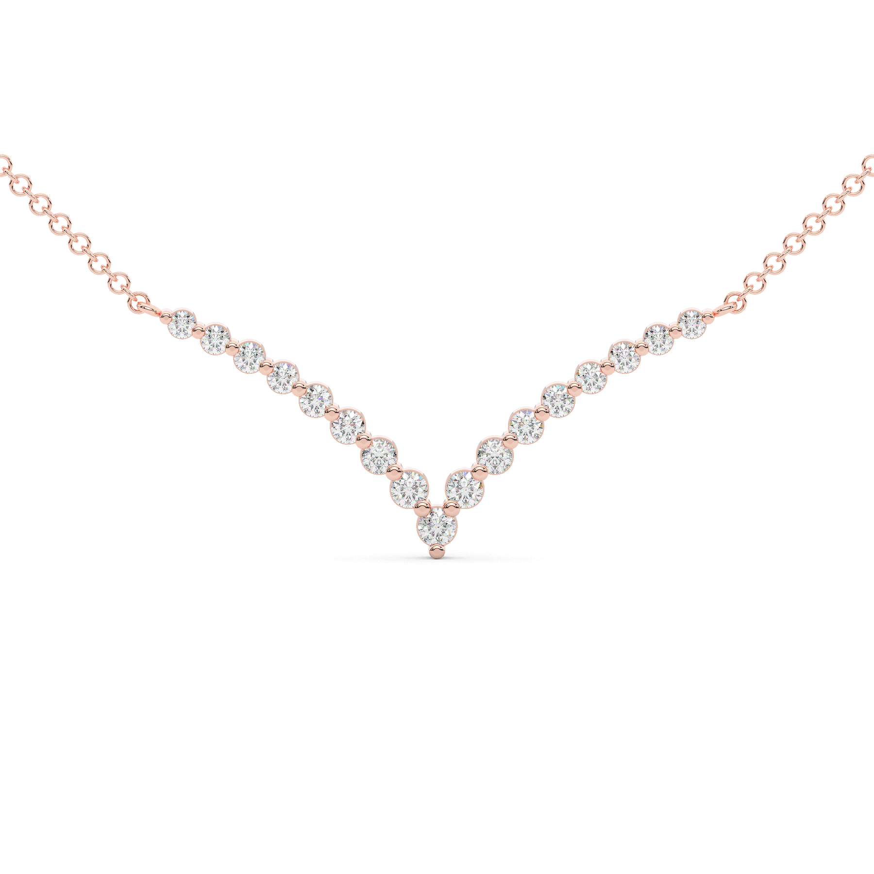 This pendant features beautiful round lab grown diamonds in an elegant chevron shape. This pendant is available in 14k white, yellow, or rose gold.