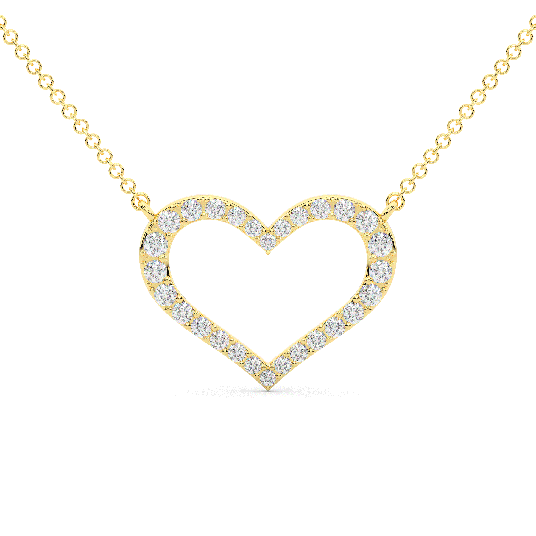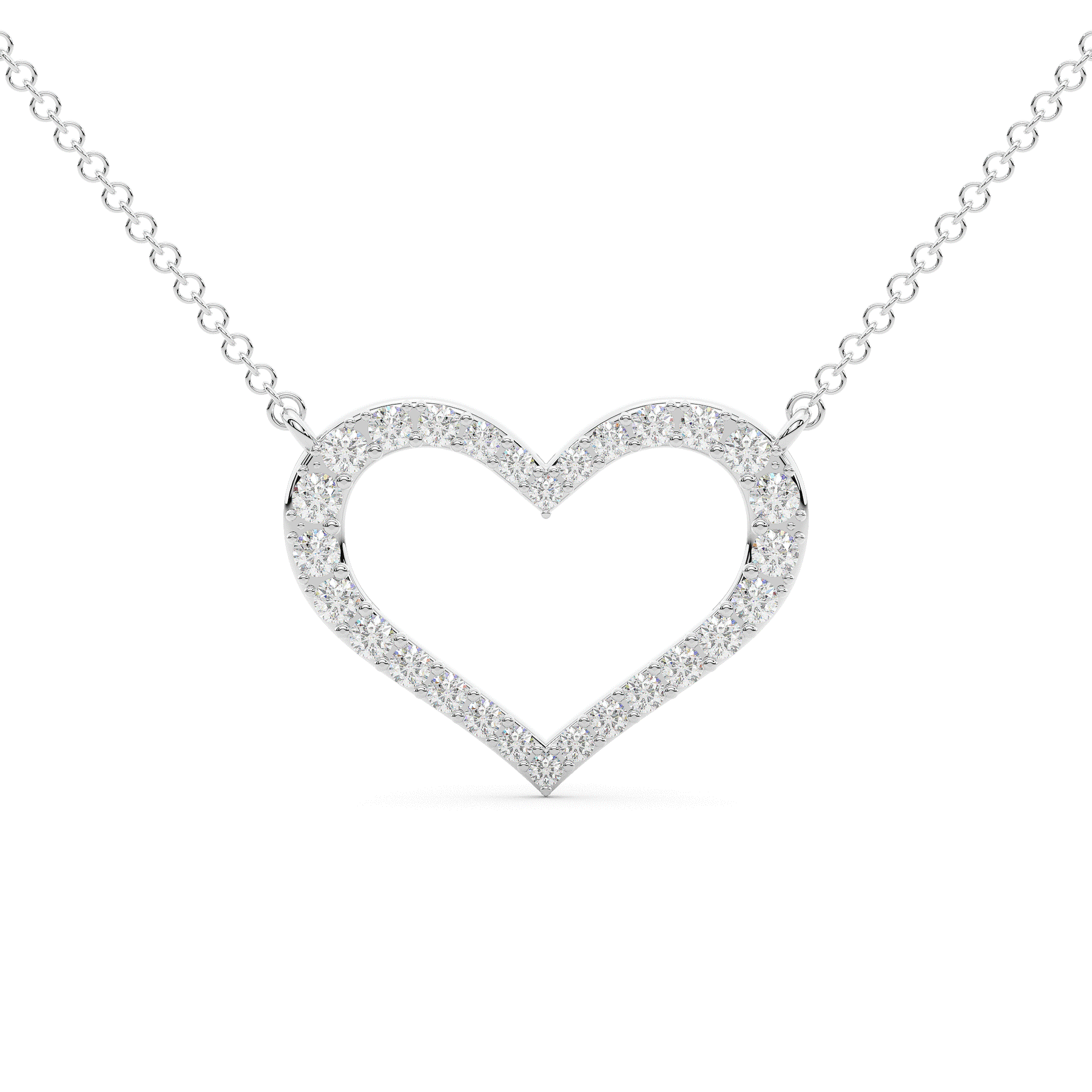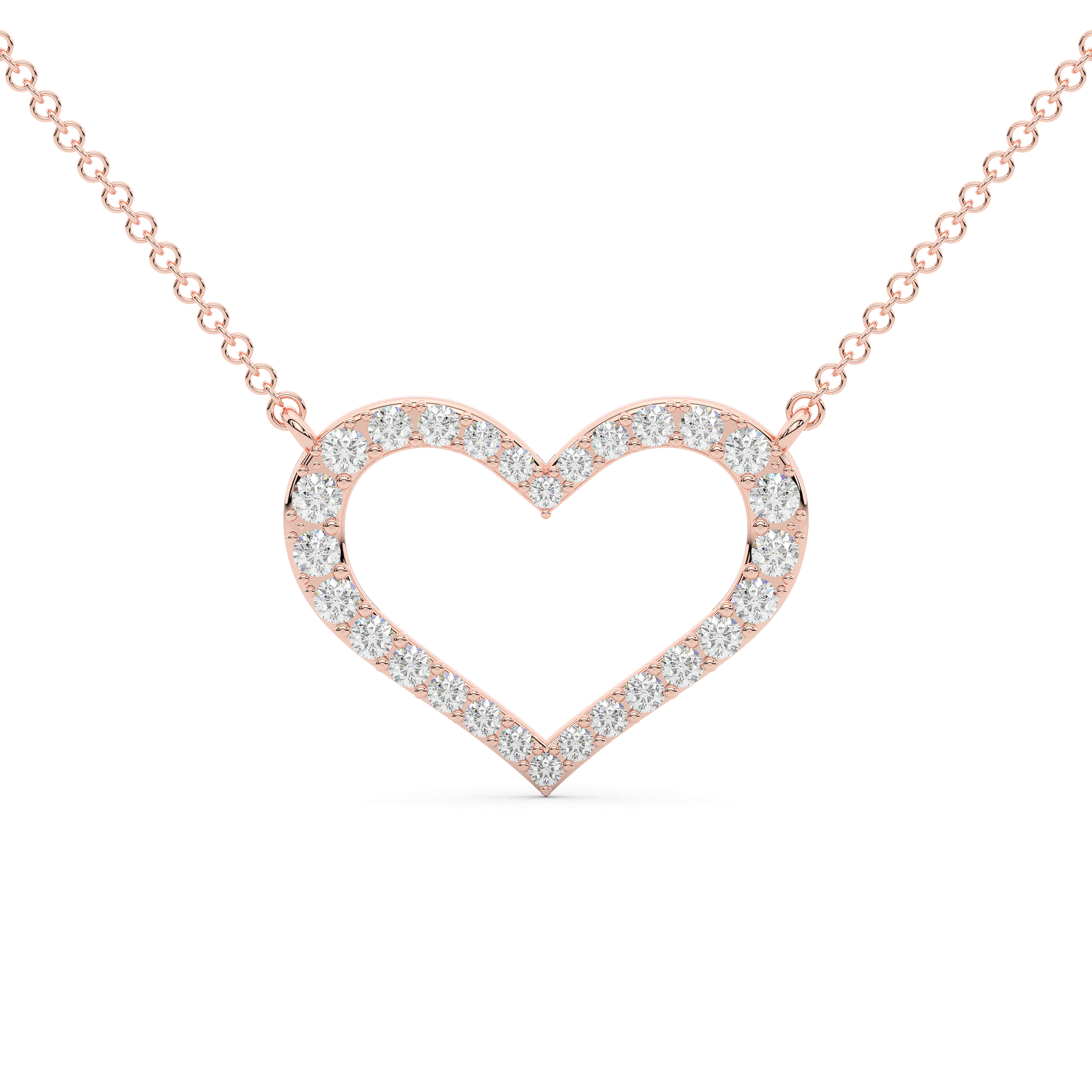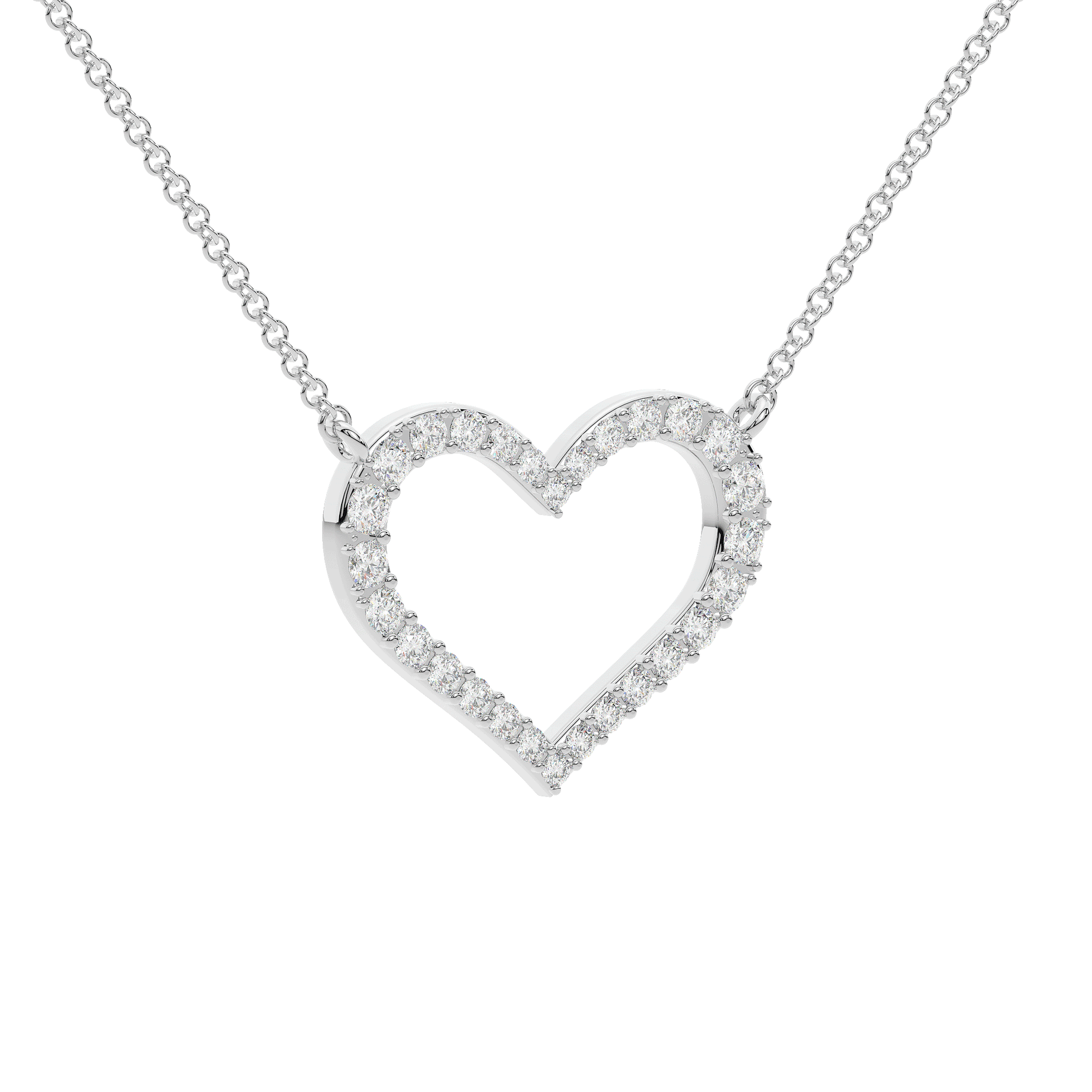 Love is in the air with this beautiful heart pendant featuring bright round lab grown diamonds that taper in size towards the center. This pedant is fixed to a simple and elegant rolo chain. This pendant is available in 14k white, yellow, or rose gold.