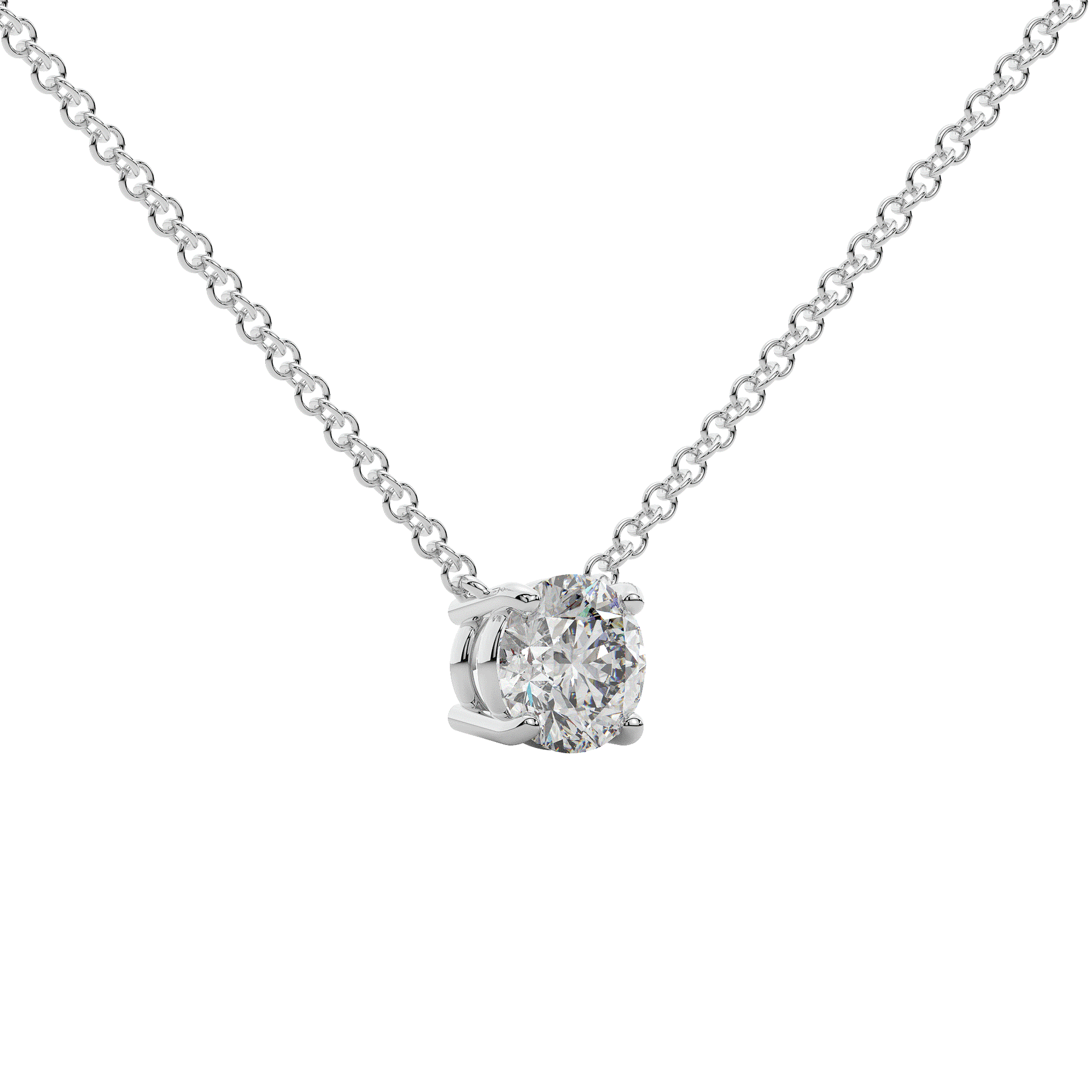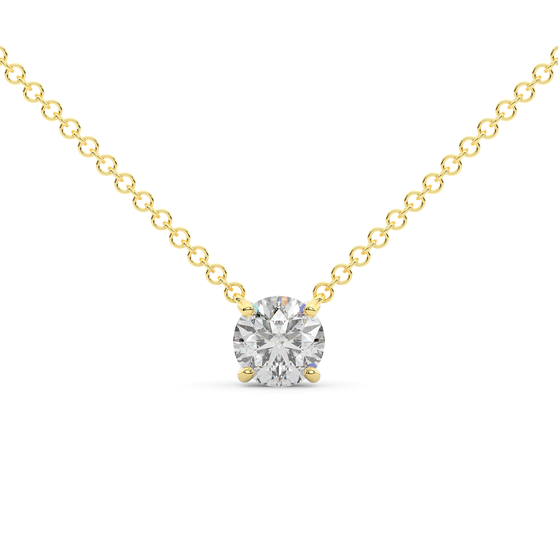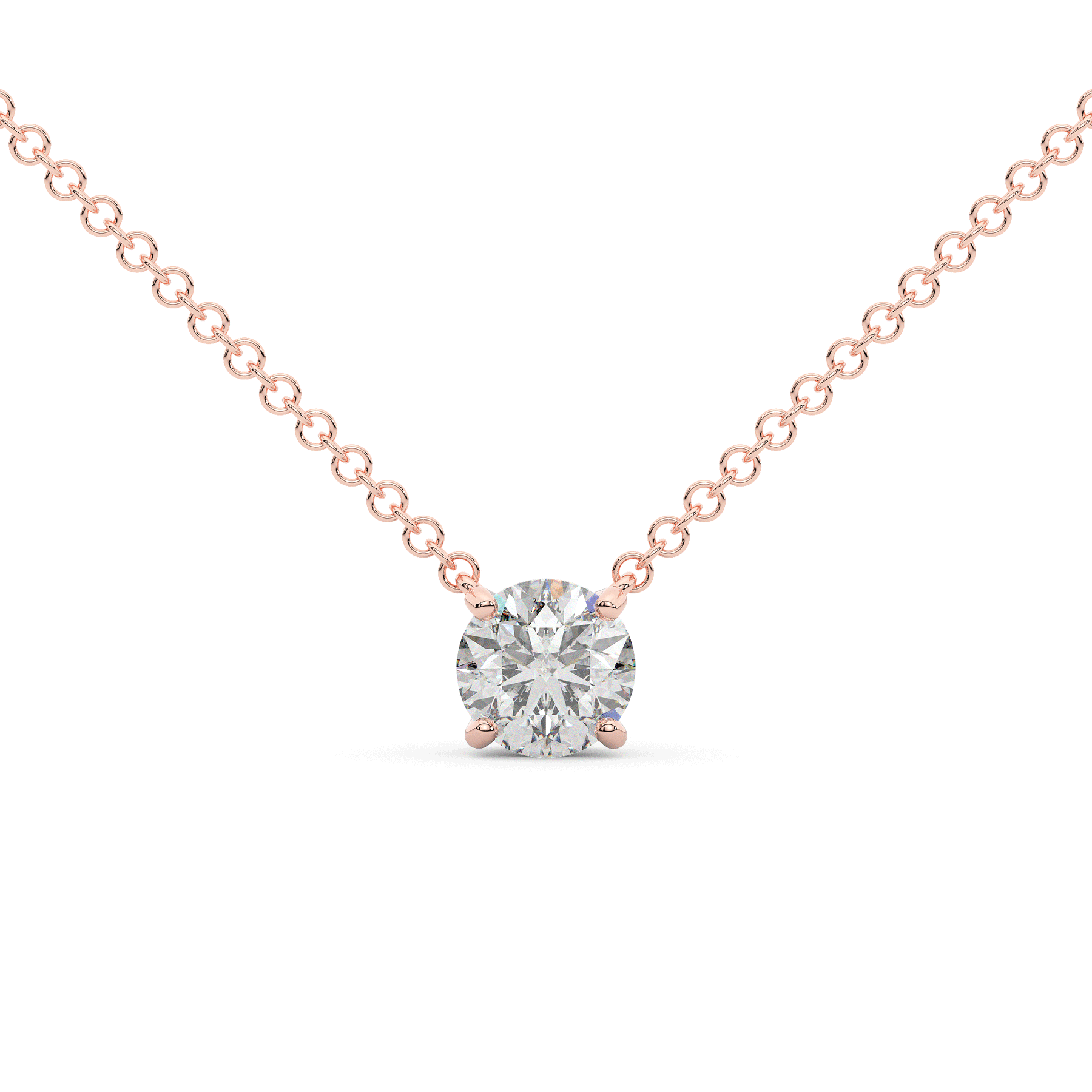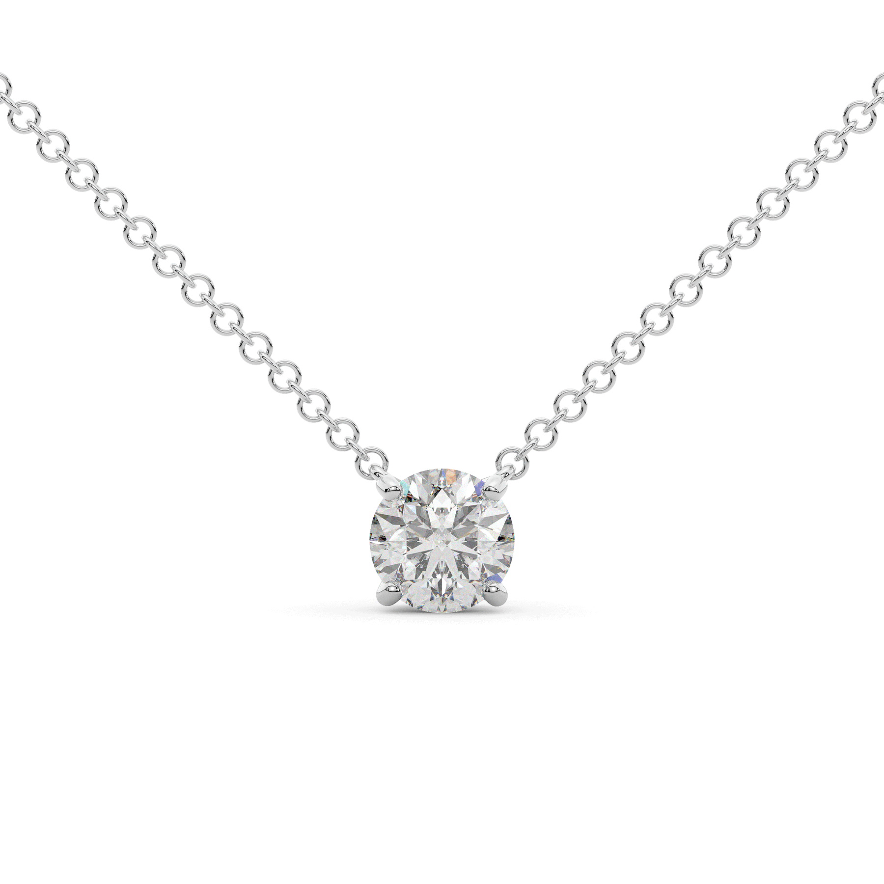 This beautiful pendant marries simplicity with elegance, featuring a bright round lab grown diamond in a simple solitaire setting. This pendant is available in 14k white, yellow, or rose gold.