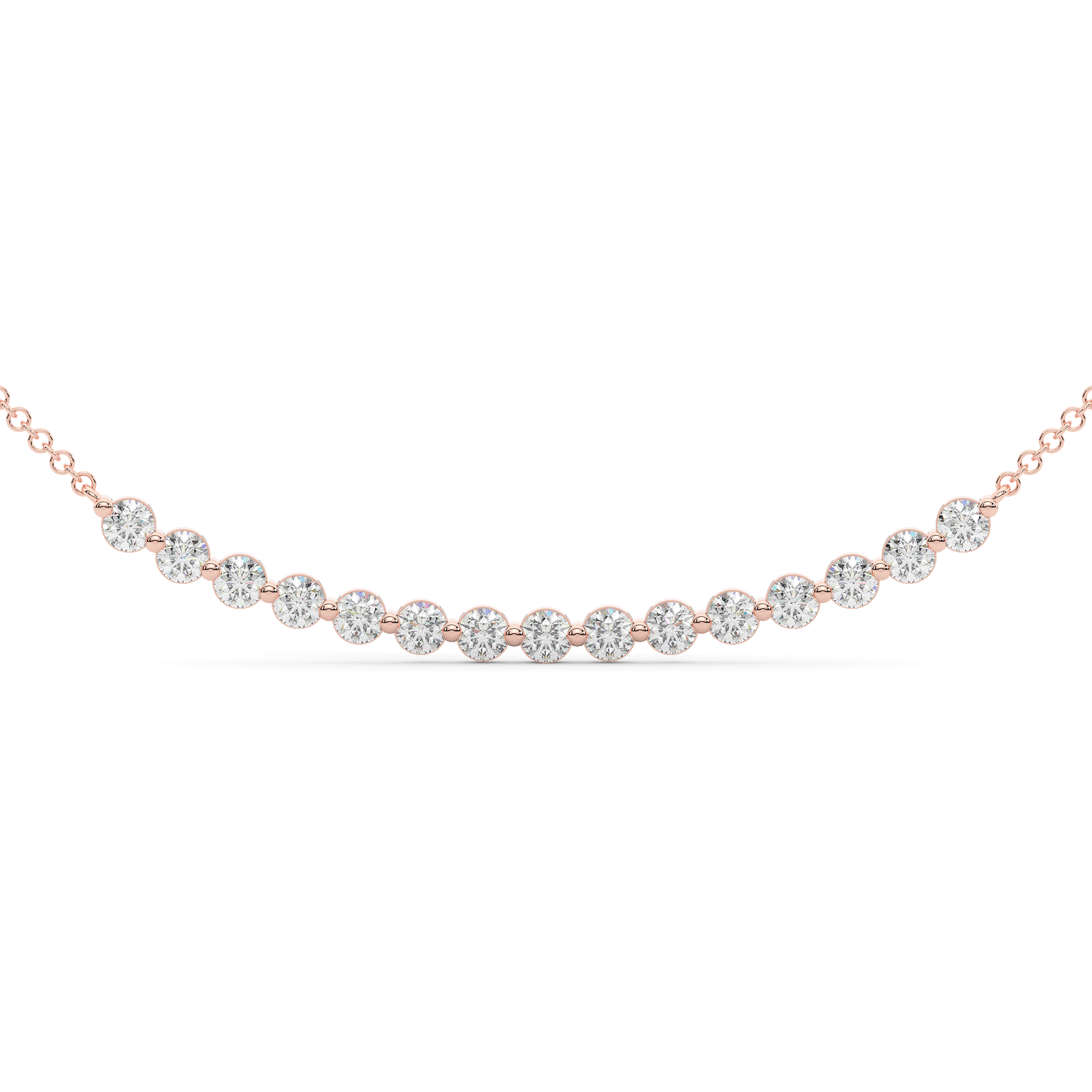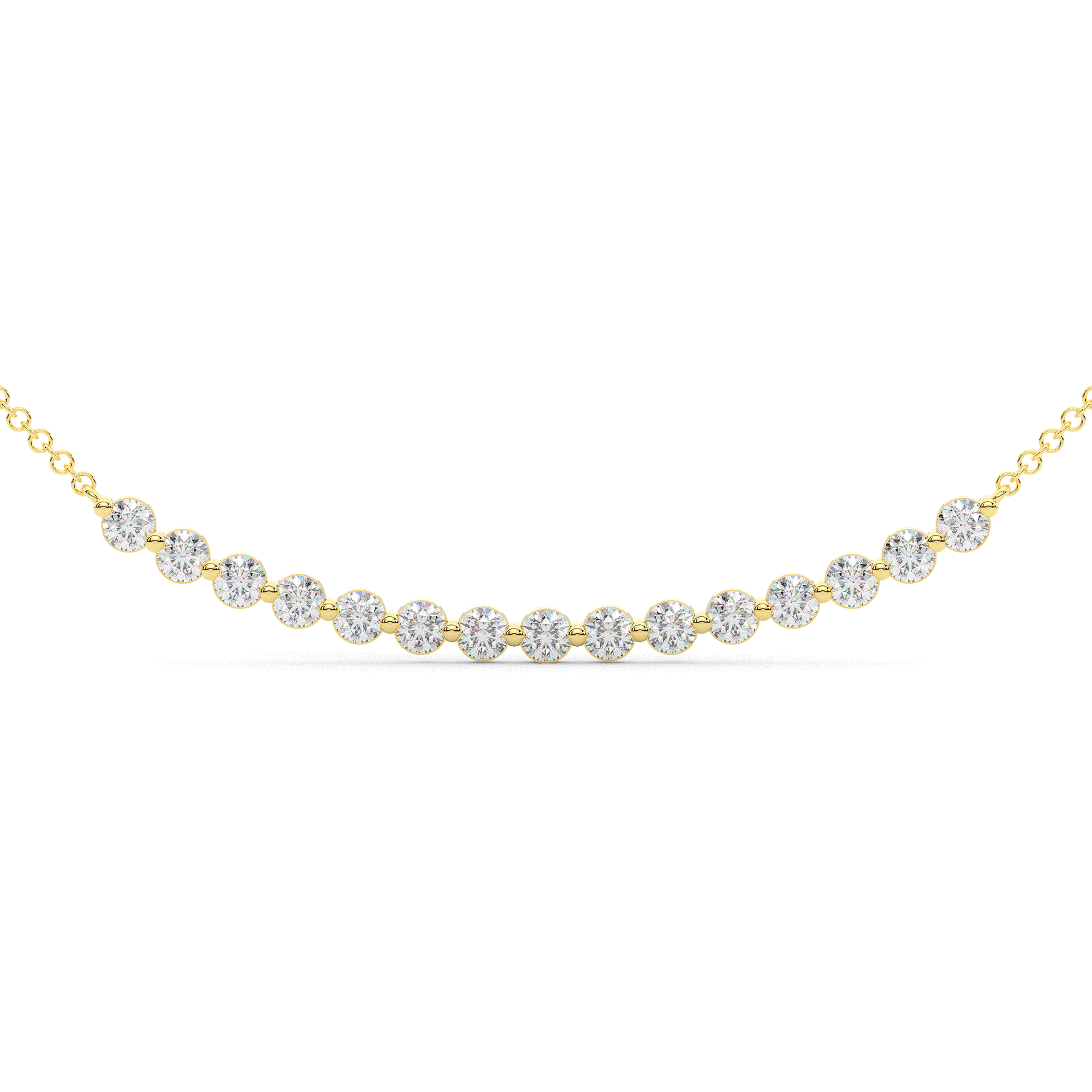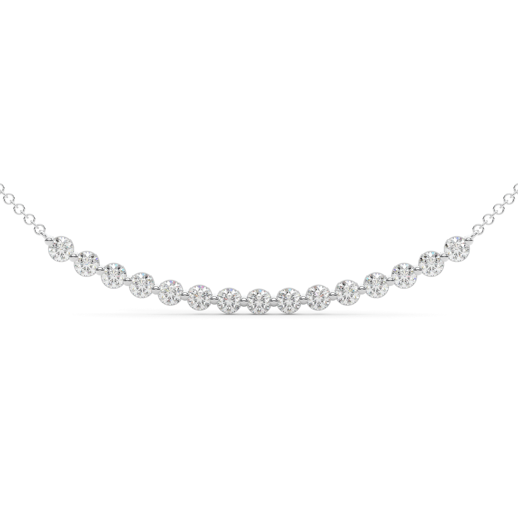 This necklace features 15 beautiful round lab diamonds in a slight curve shape for a sleek and elegant design. This pendant is available in 14k white, yellow, or rose gold.