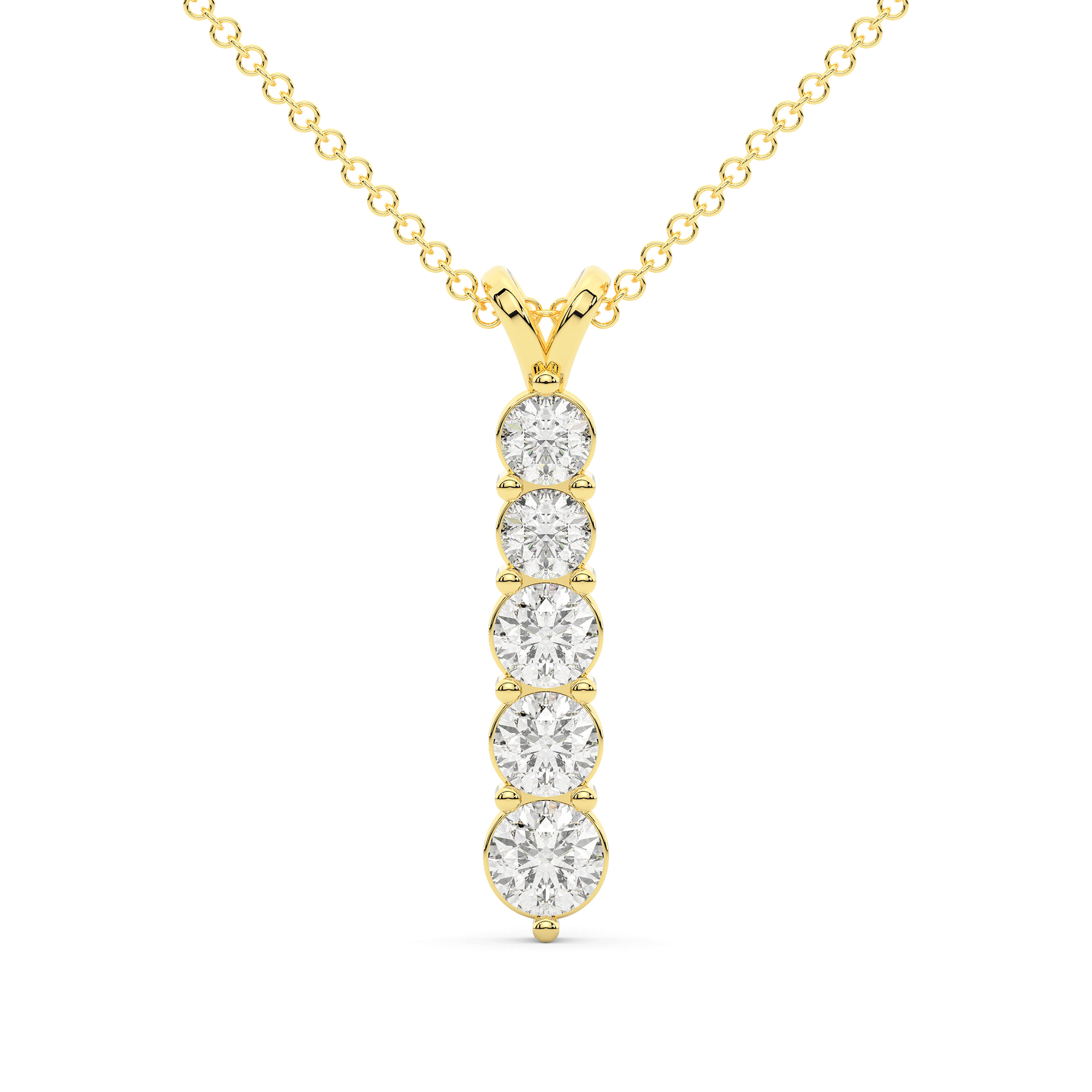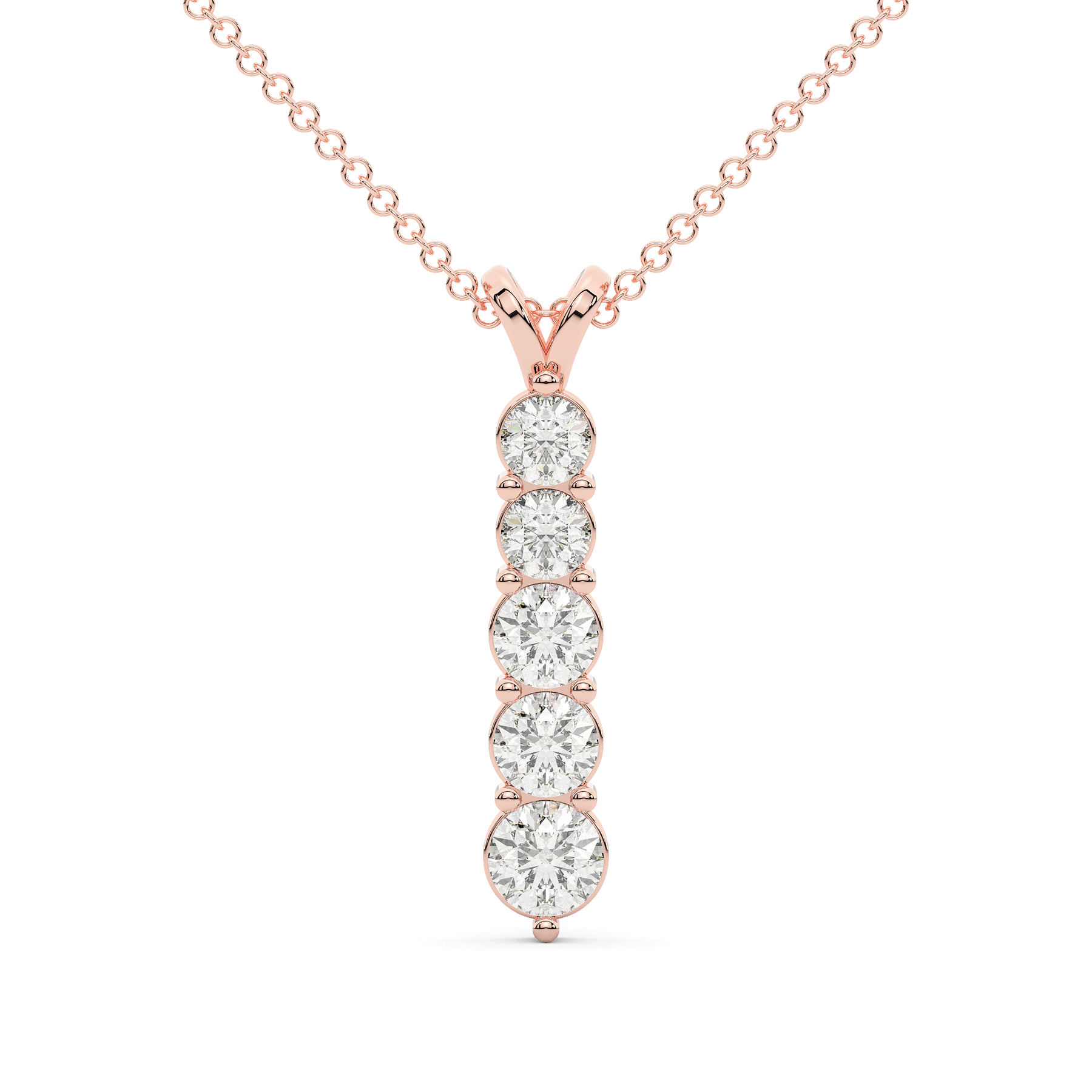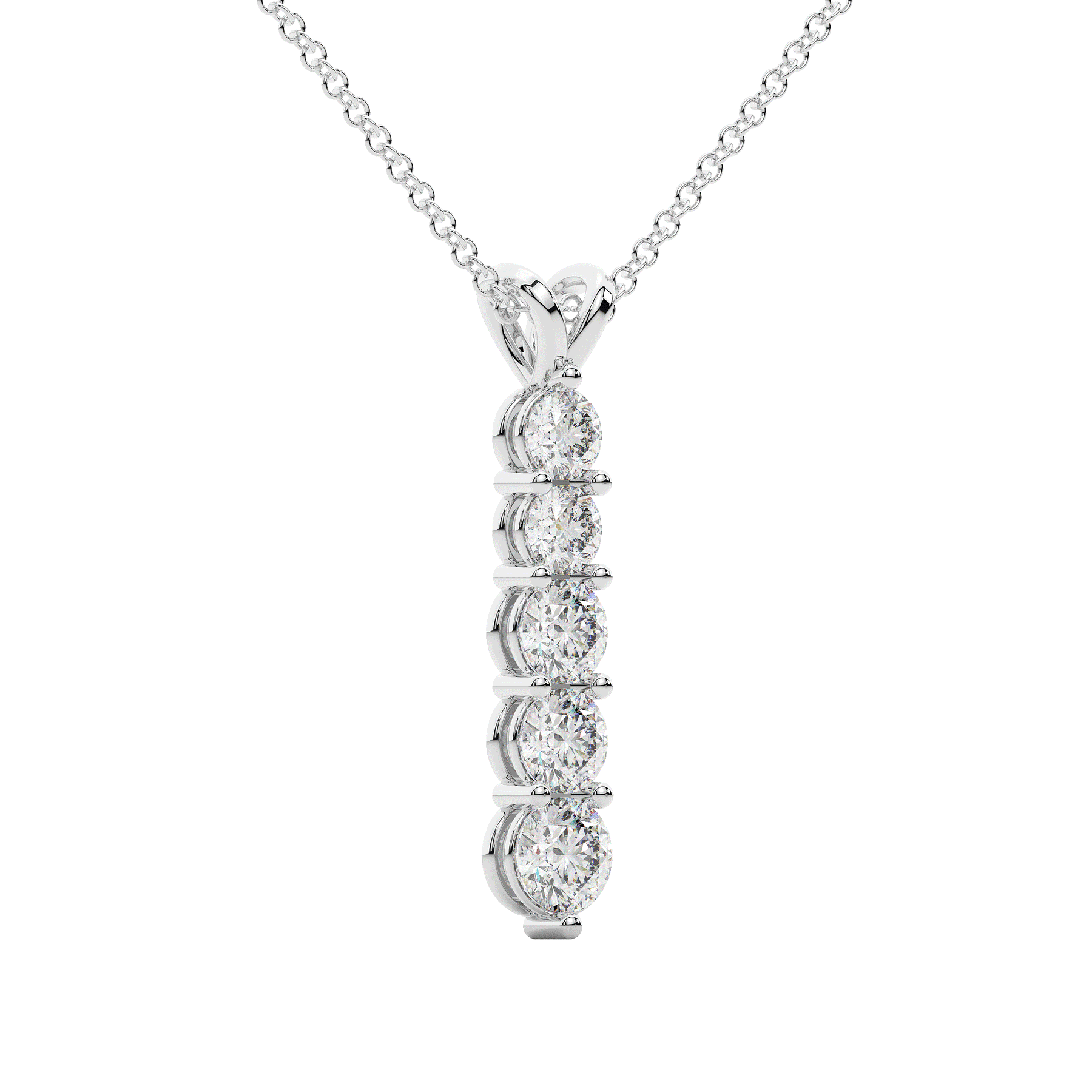 This elegant pendant features a classic past, present, and future design with bright round lab diamonds increasing in size from top to bottom, with a beautiful stylized bale. This pendant is available in 14k white, yellow, or rose gold.