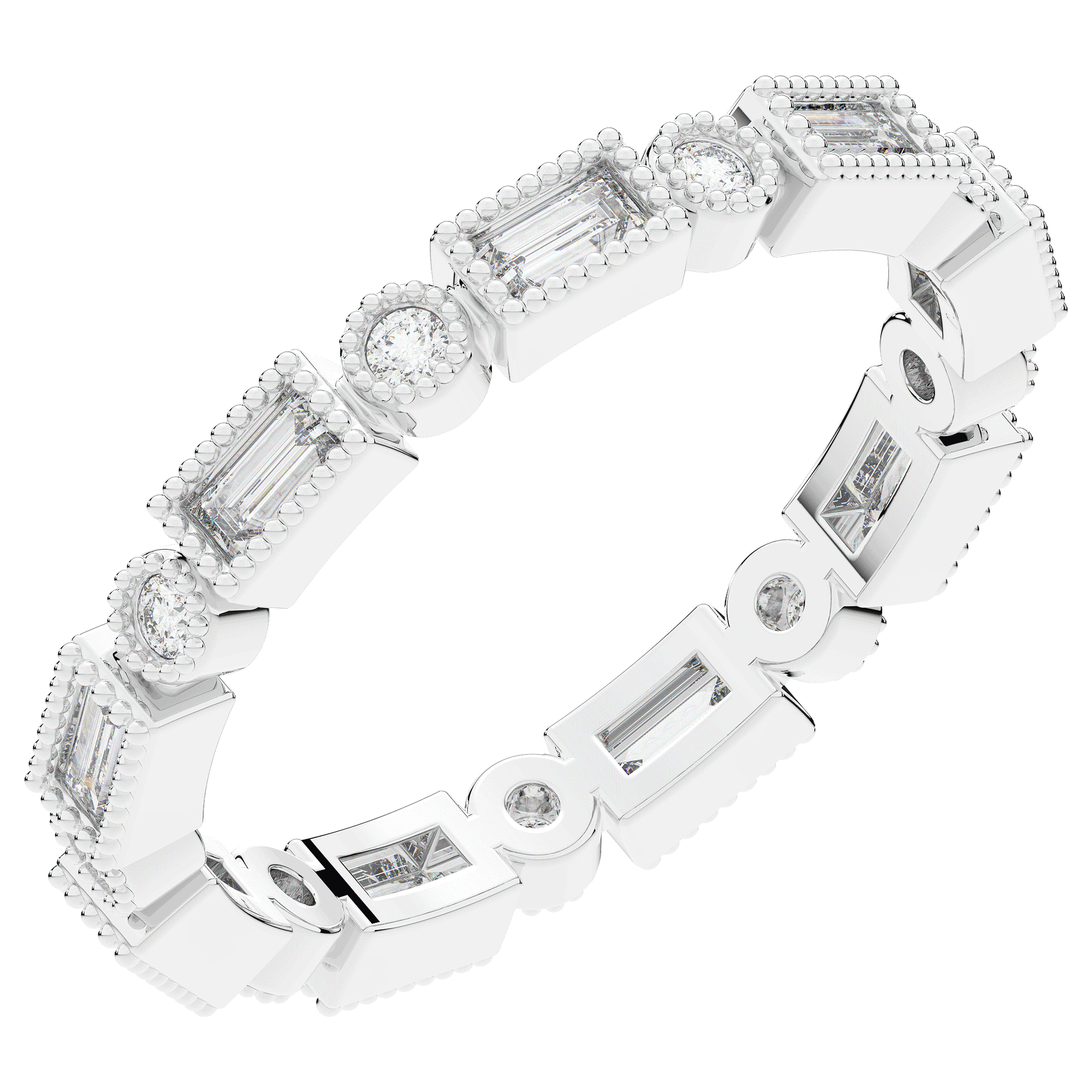 0.50CT.TW BAGUETTE AND ROUND LAB DIAMOND BEZEL SET ETERNITY WEDDING BAND