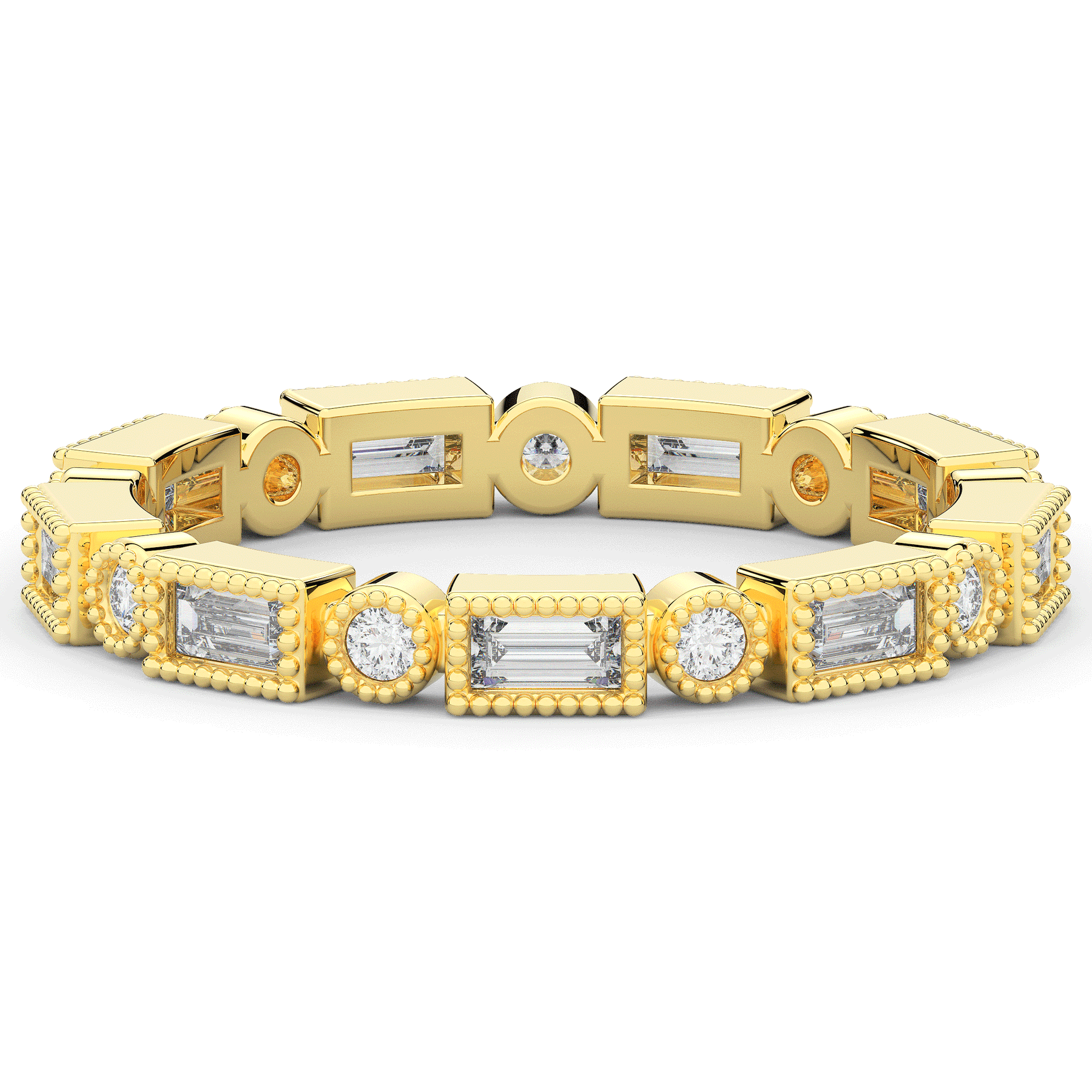 0.50CT.TW BAGUETTE AND ROUND LAB DIAMOND BEZEL SET ETERNITY WEDDING BAND - Nazarelle