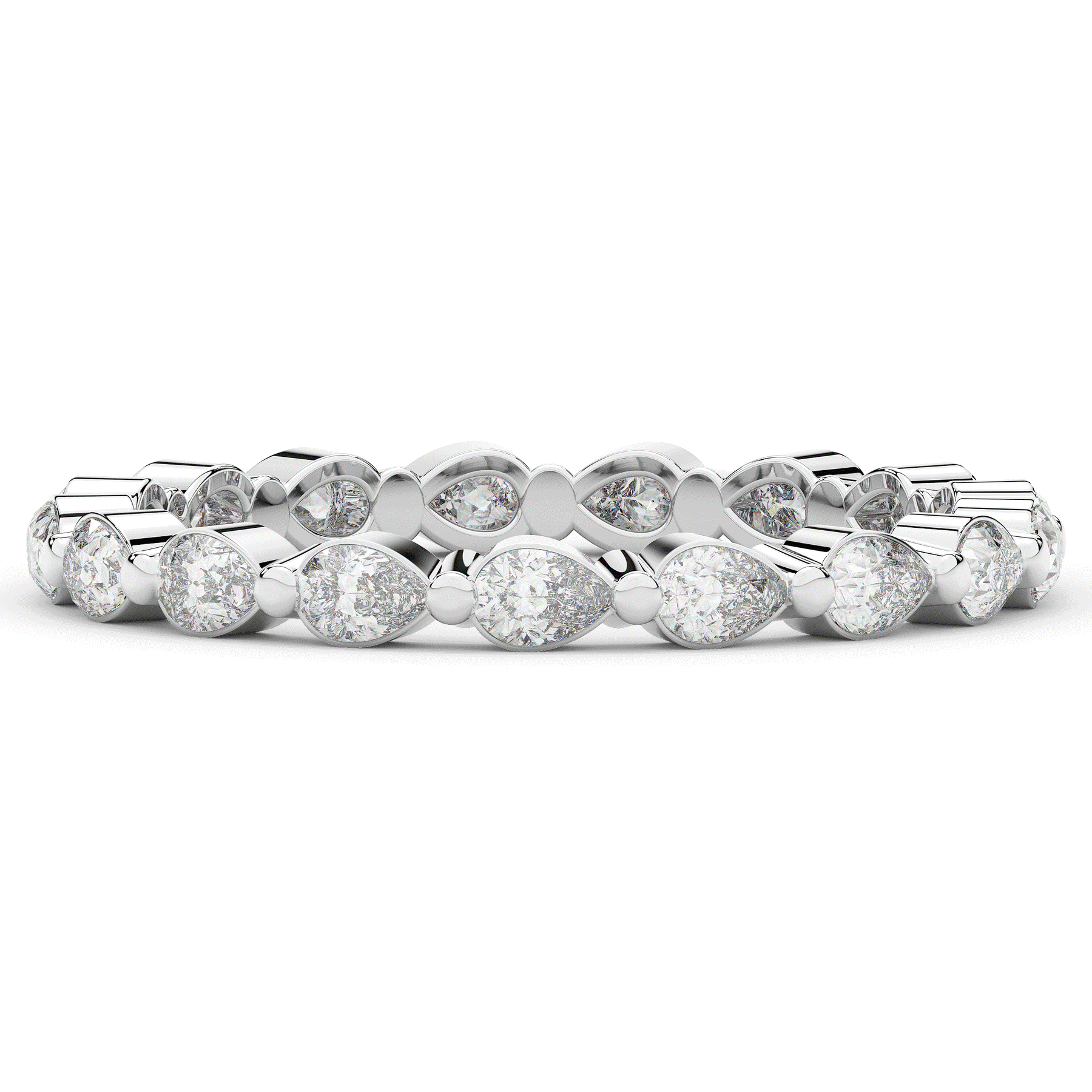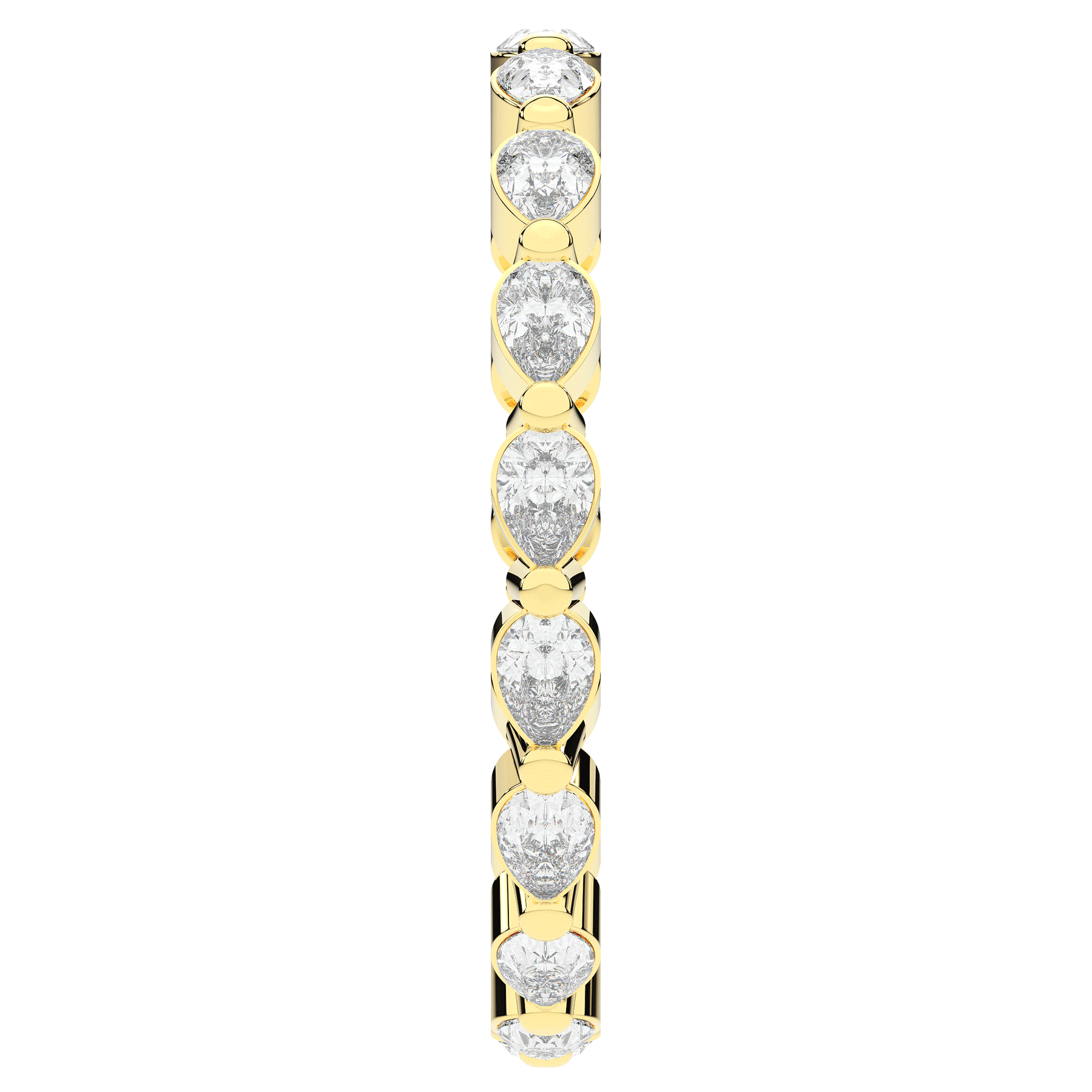 This unique ring features beautiful lab grown pear diamonds on its eternity band. This ring is available in 14k white, yellow or rose gold, 18k yellow gold, as well as platinum.