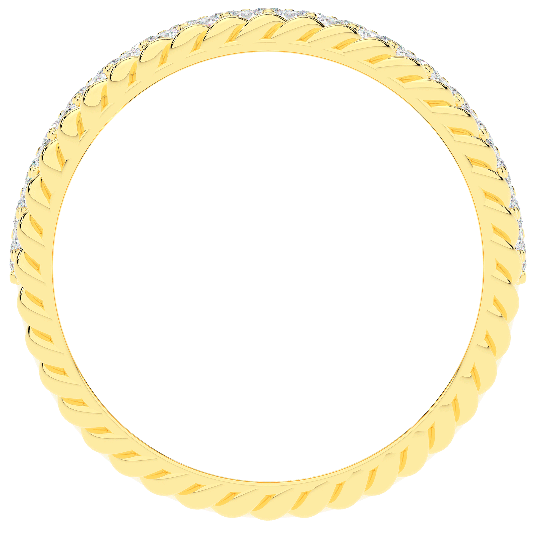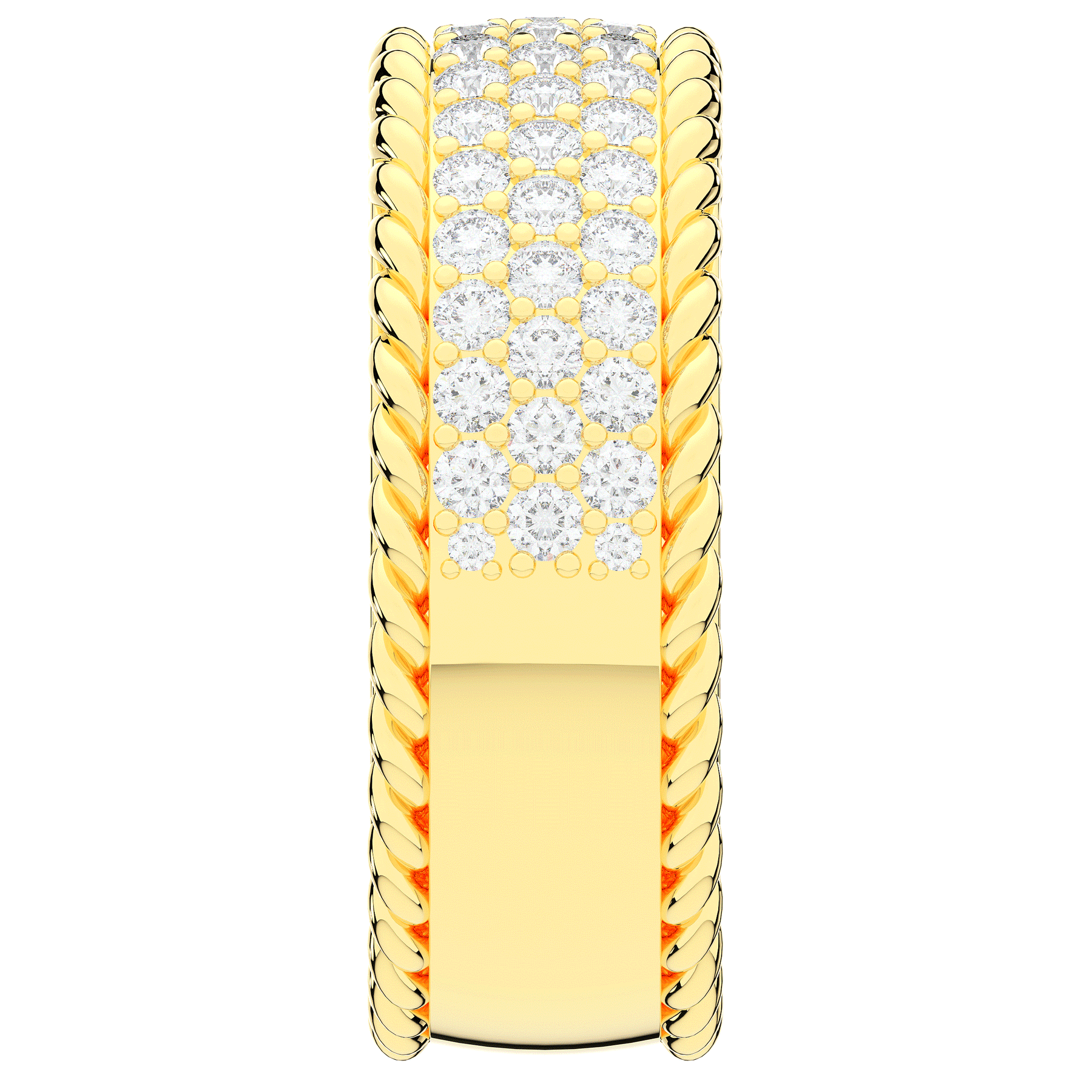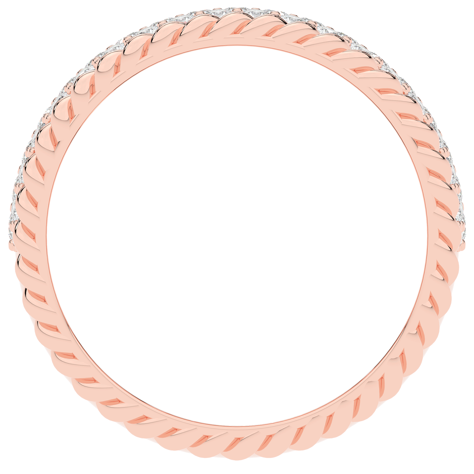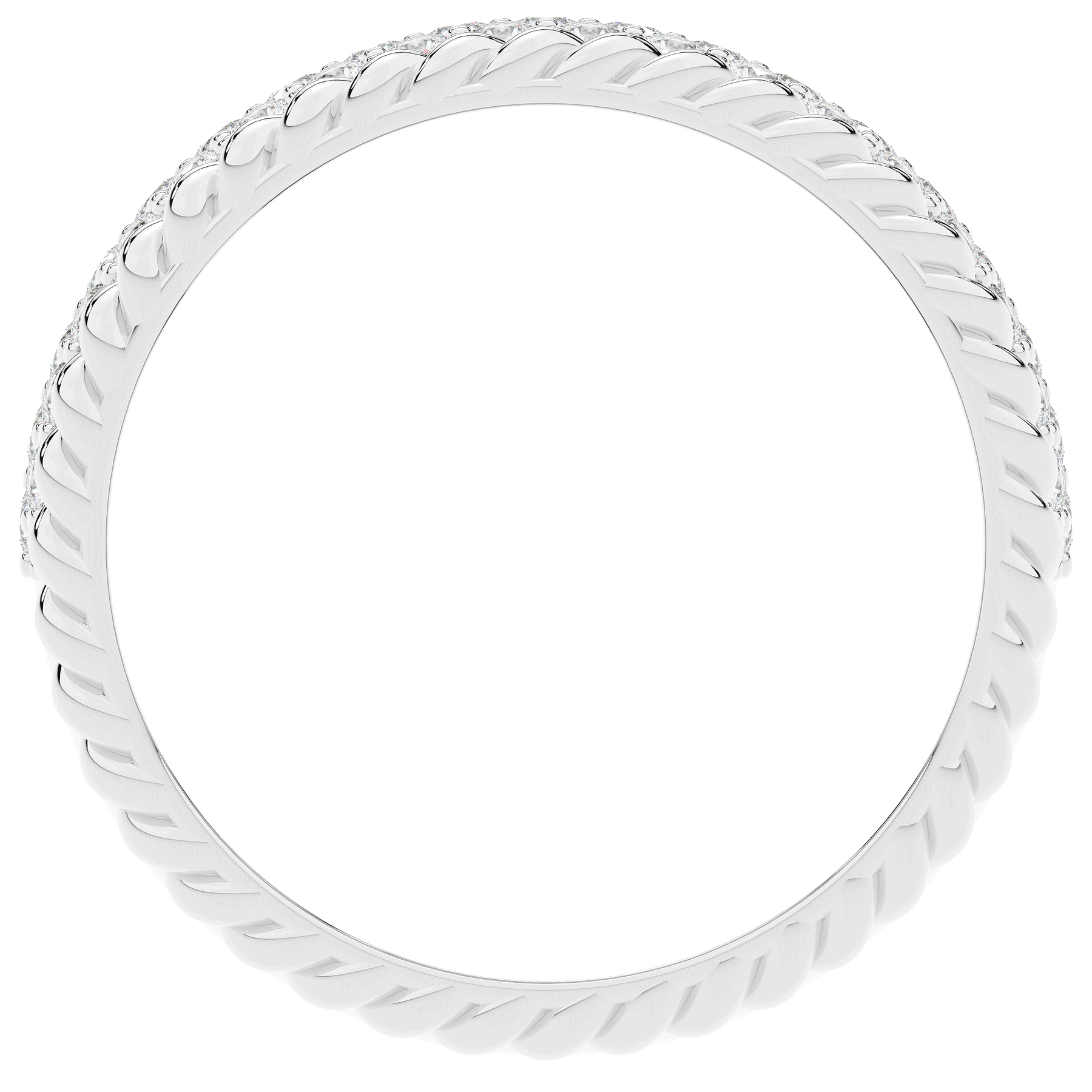 This beautiful band features 3 rows of bright round lab grown diamonds as well as a twist accent on the outside of the band, making for a one of a kind ring. This ring is available in 14k white, yellow or rose gold, 18k yellow gold, as well as platinum.