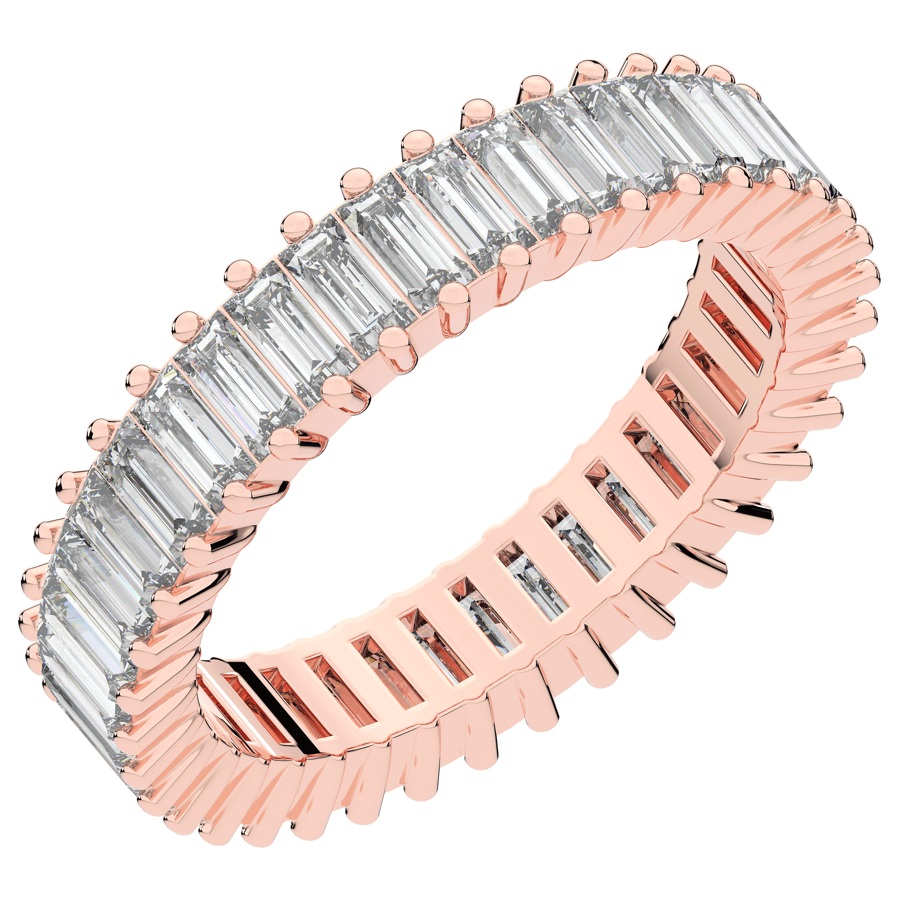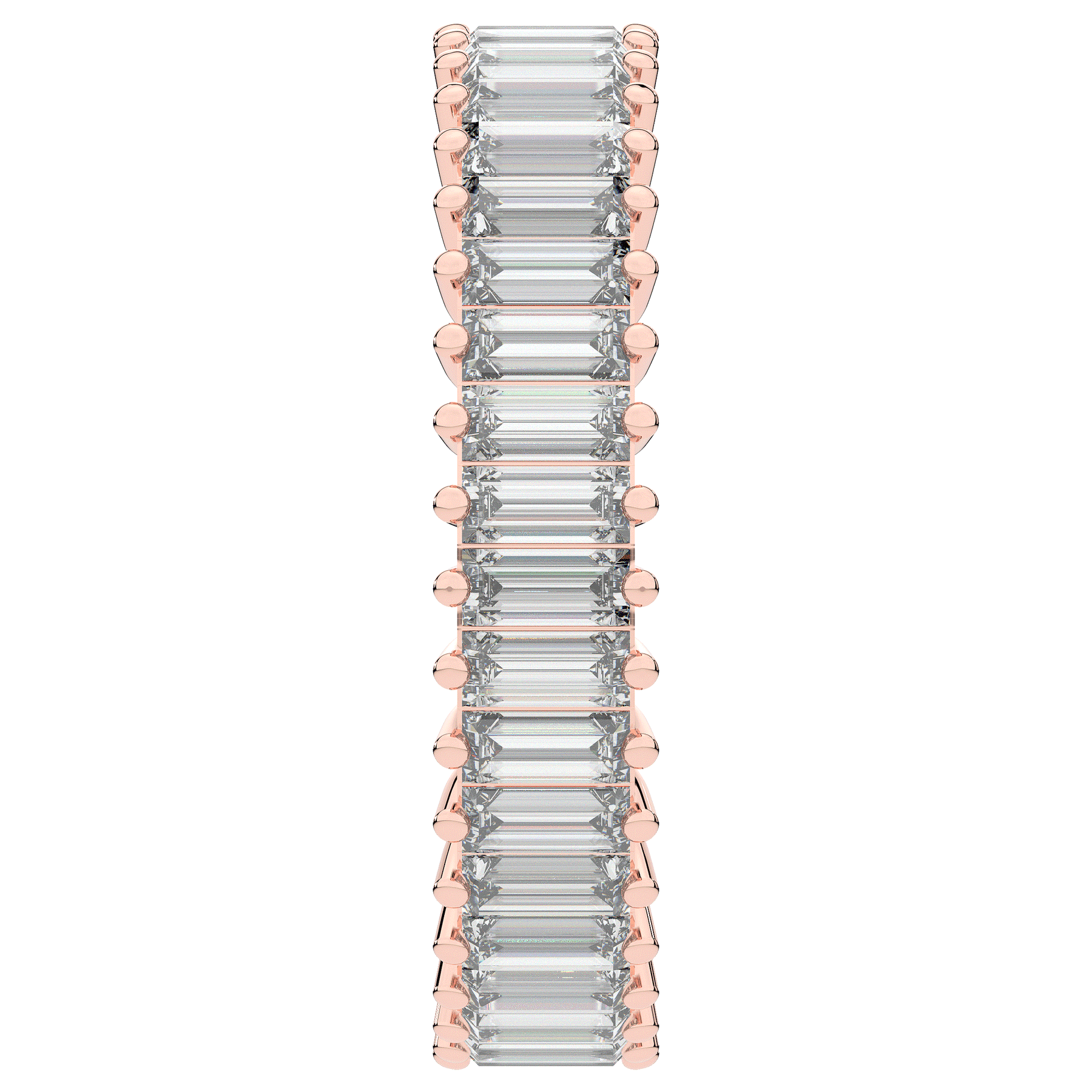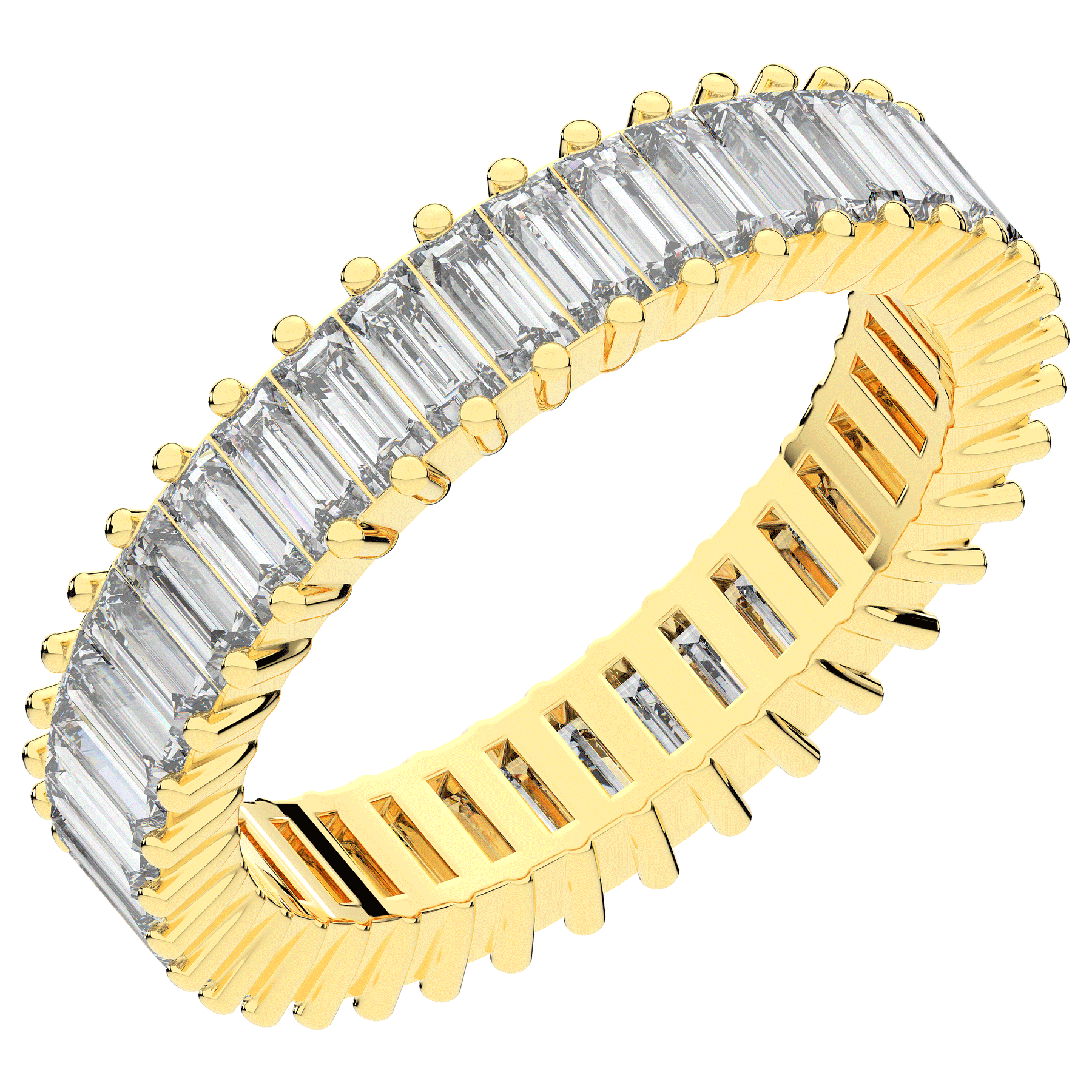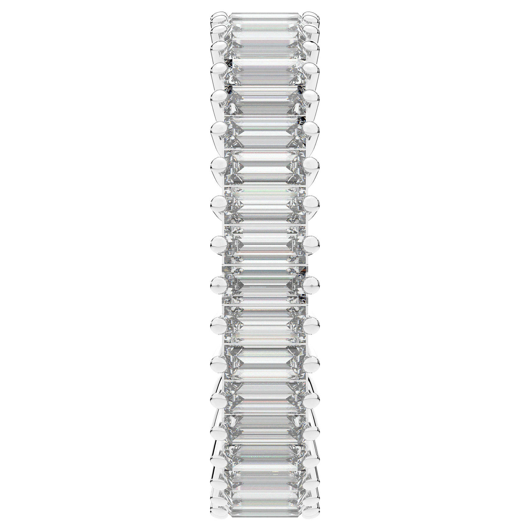 This stunning ring features baguette lab diamonds set in an eternity style. This ring is available in 14k white, yellow or rose gold, 18k yellow gold, as well as platinum.