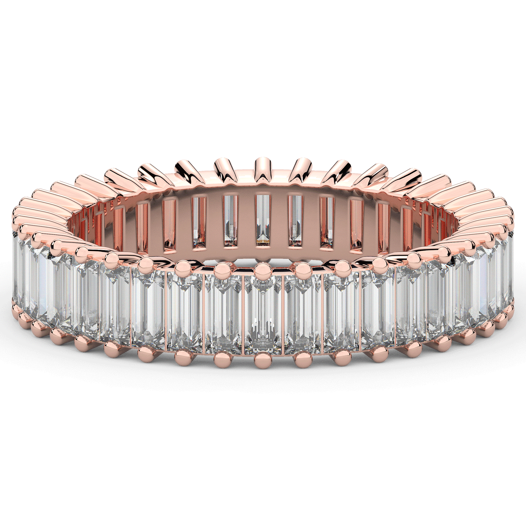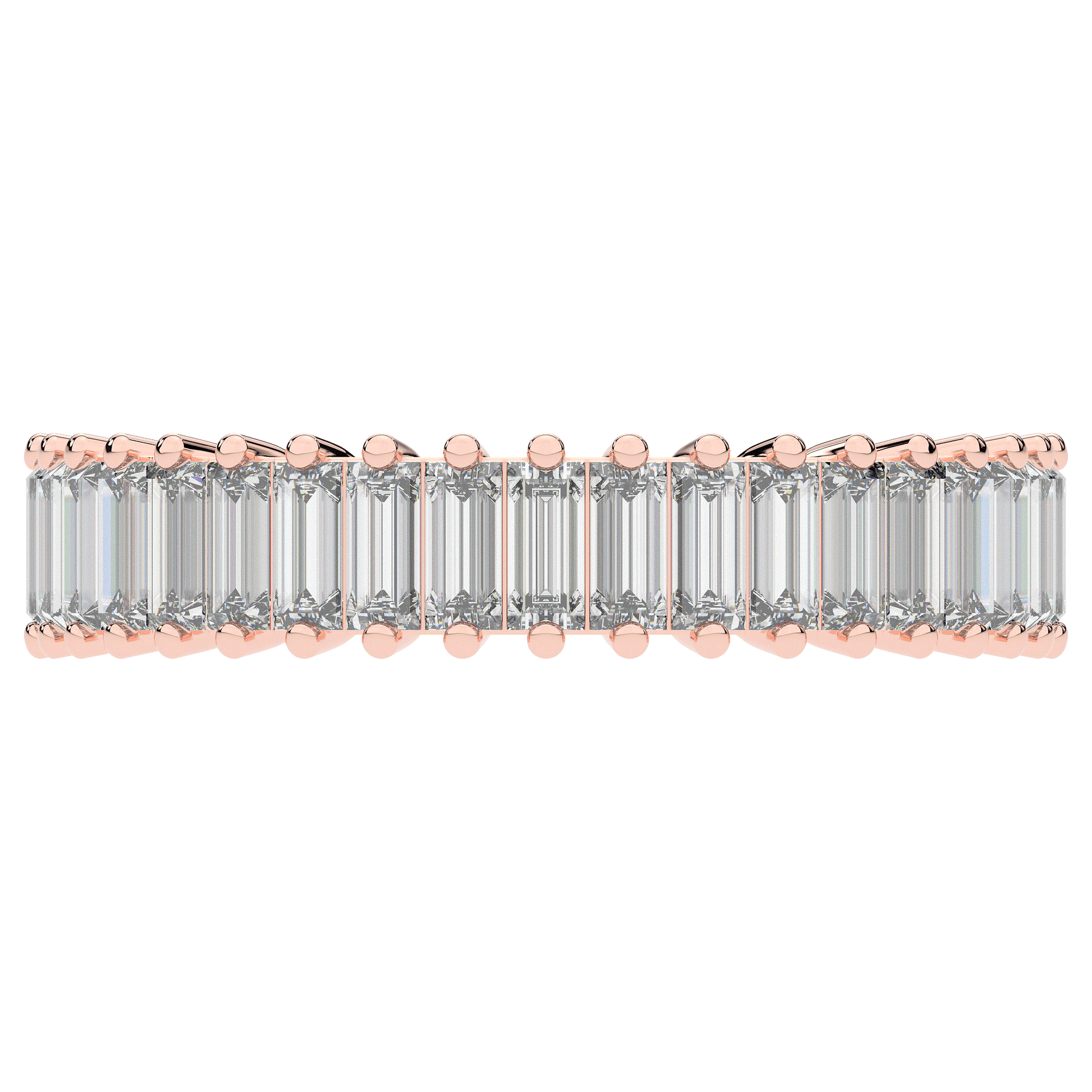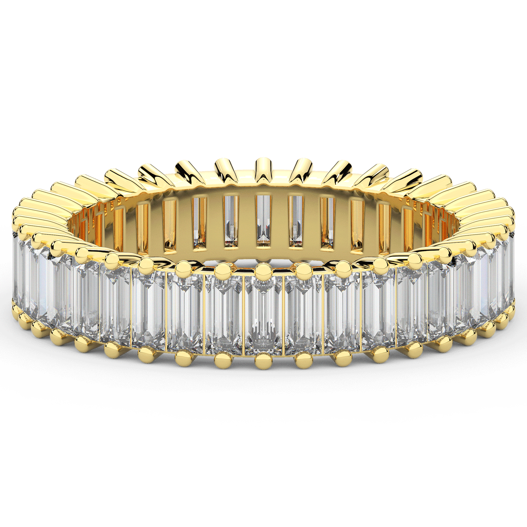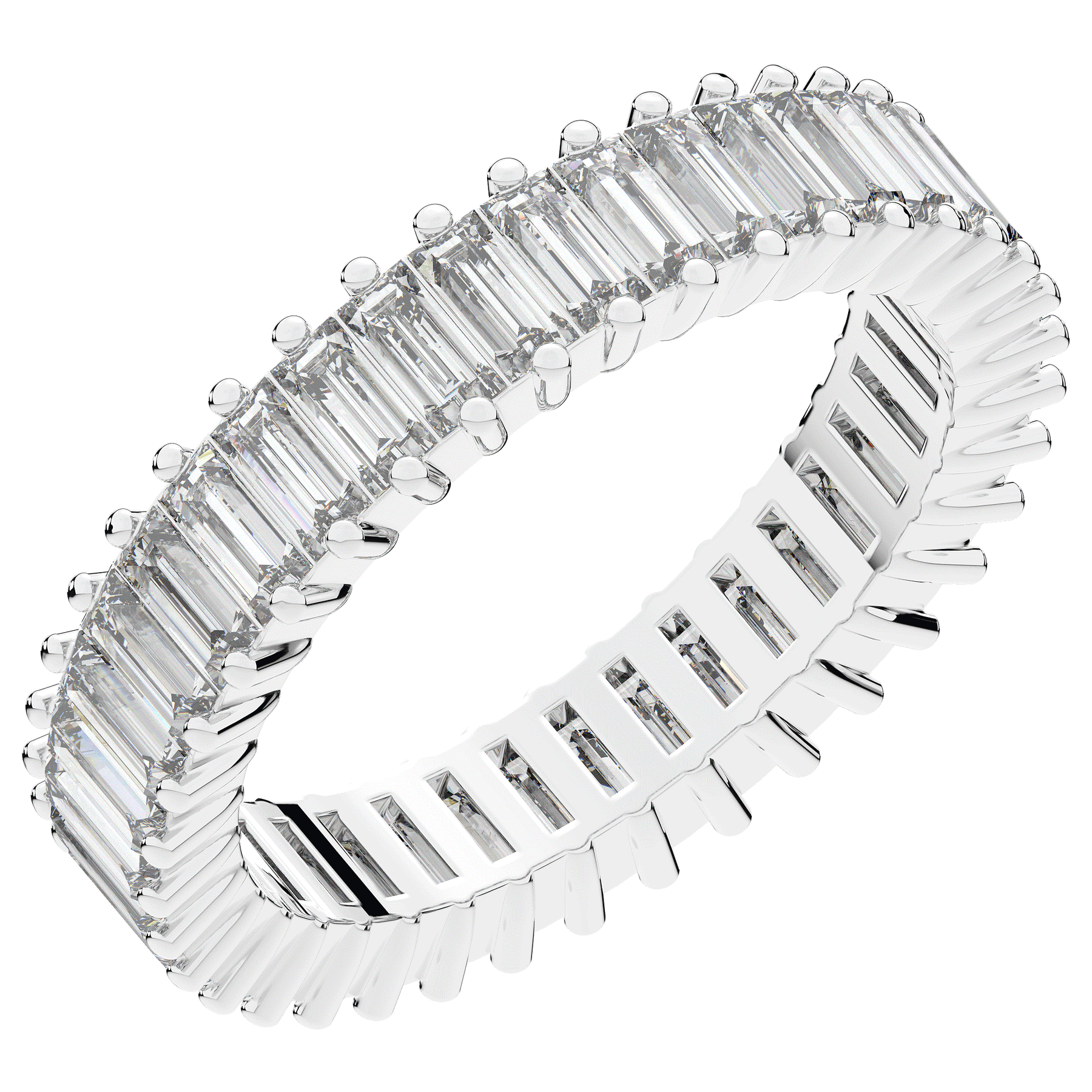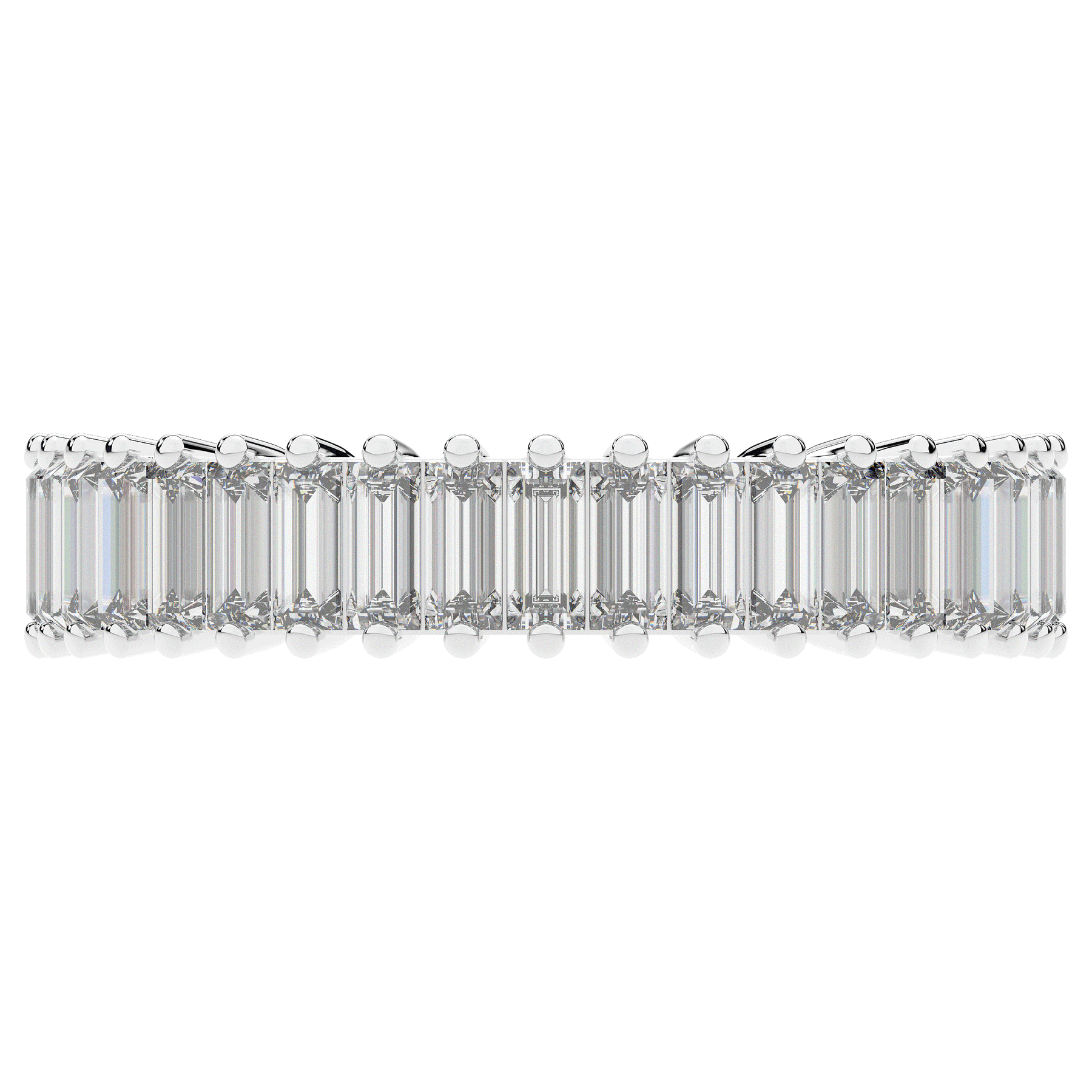This stunning ring features baguette lab diamonds set in an eternity style. This ring is available in 14k white, yellow or rose gold, 18k yellow gold, as well as platinum.