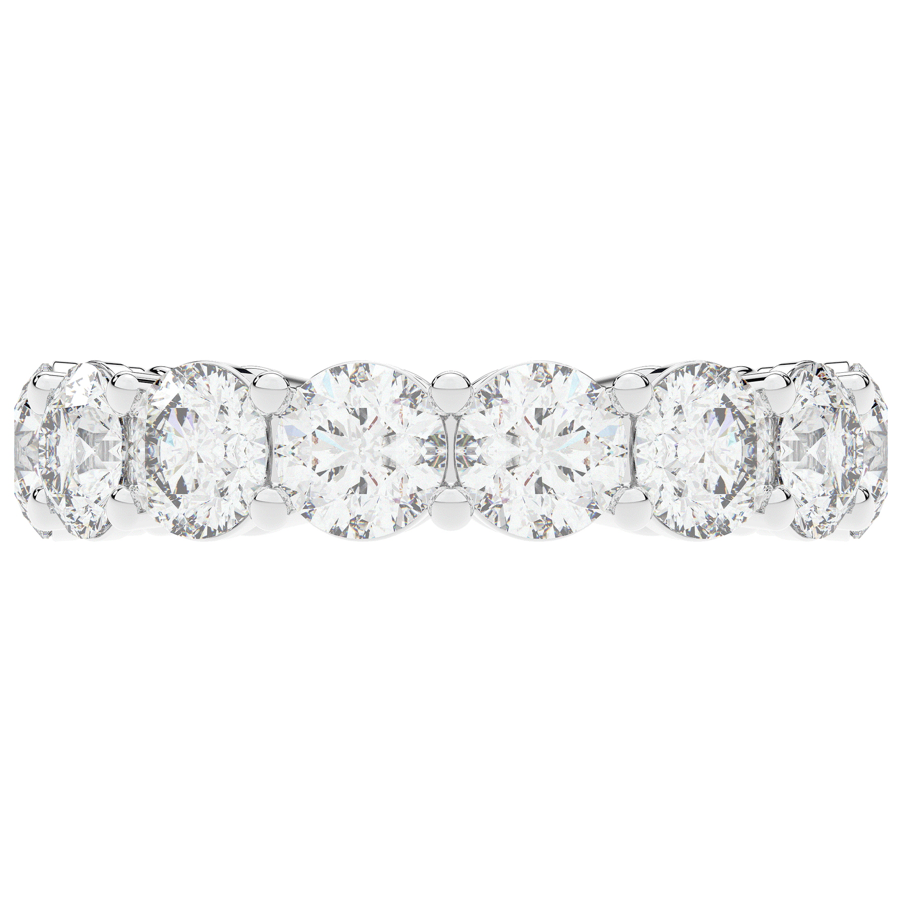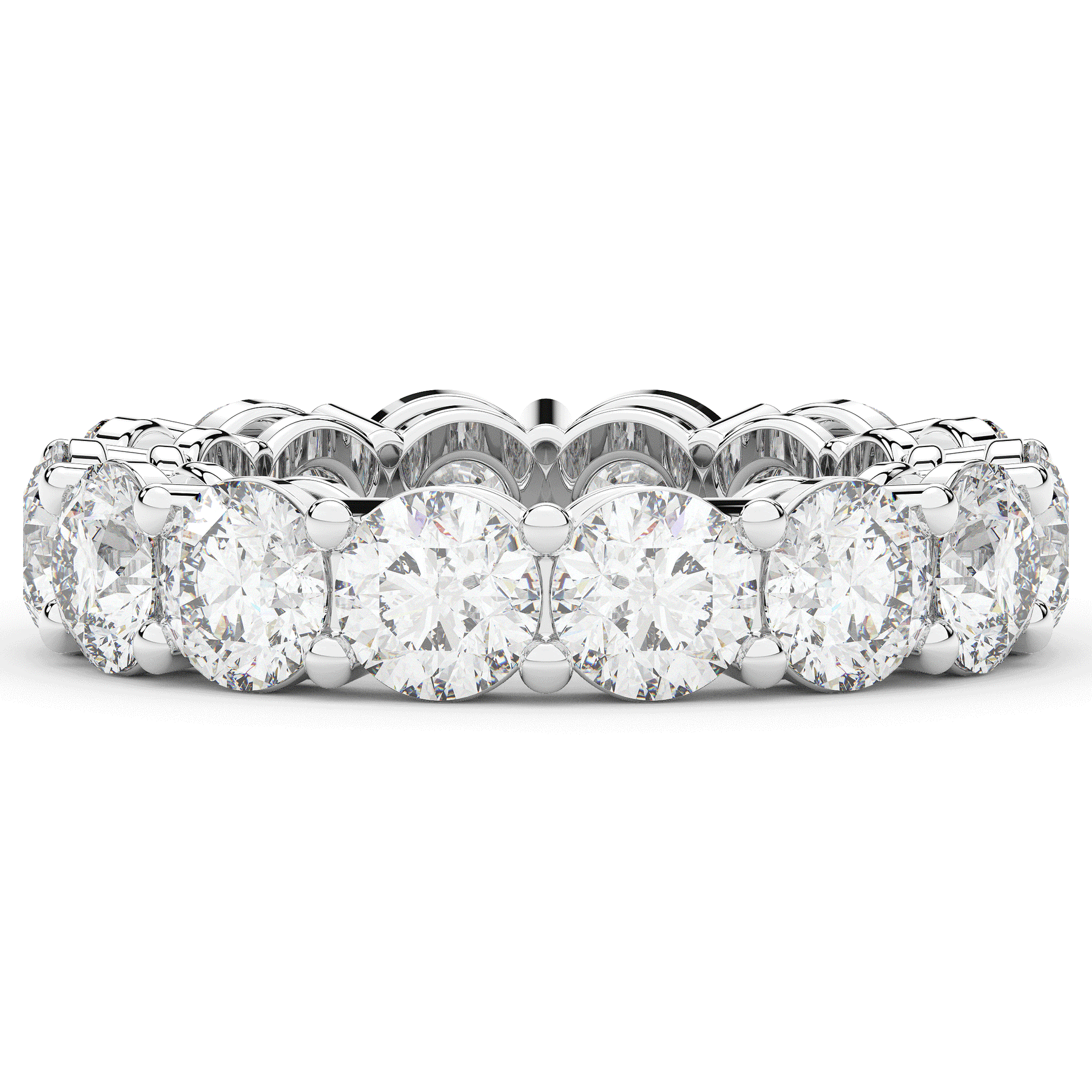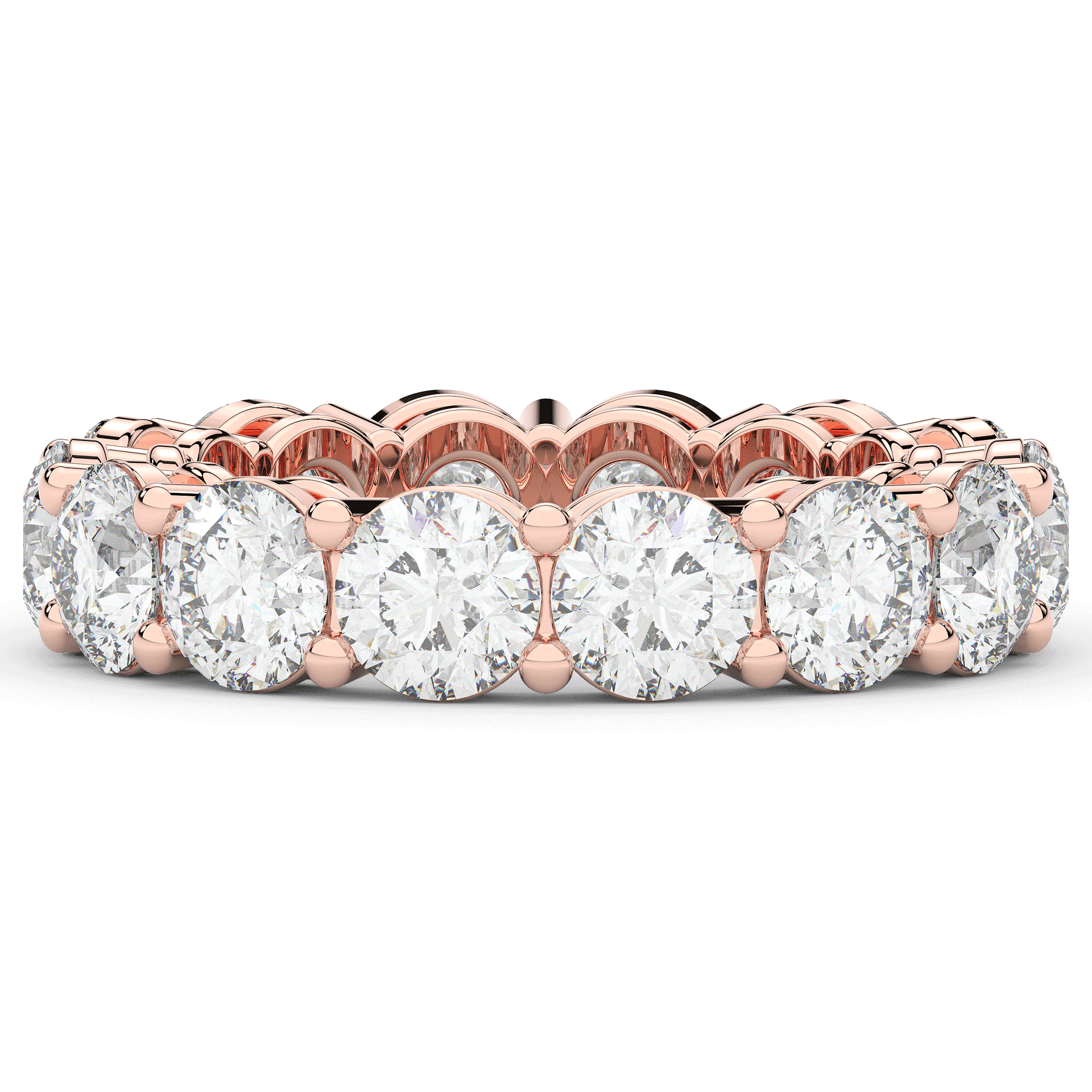 This wedding band features bright round lab grown diamonds, prong set in an eternity style. This ring is available in 14k white, yellow or rose gold, 18k yellow gold, as well as platinum.