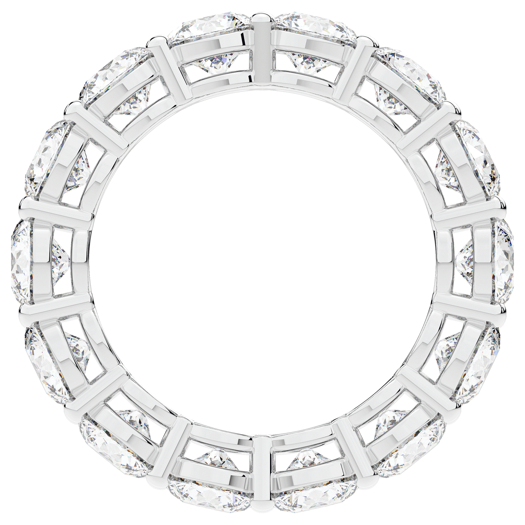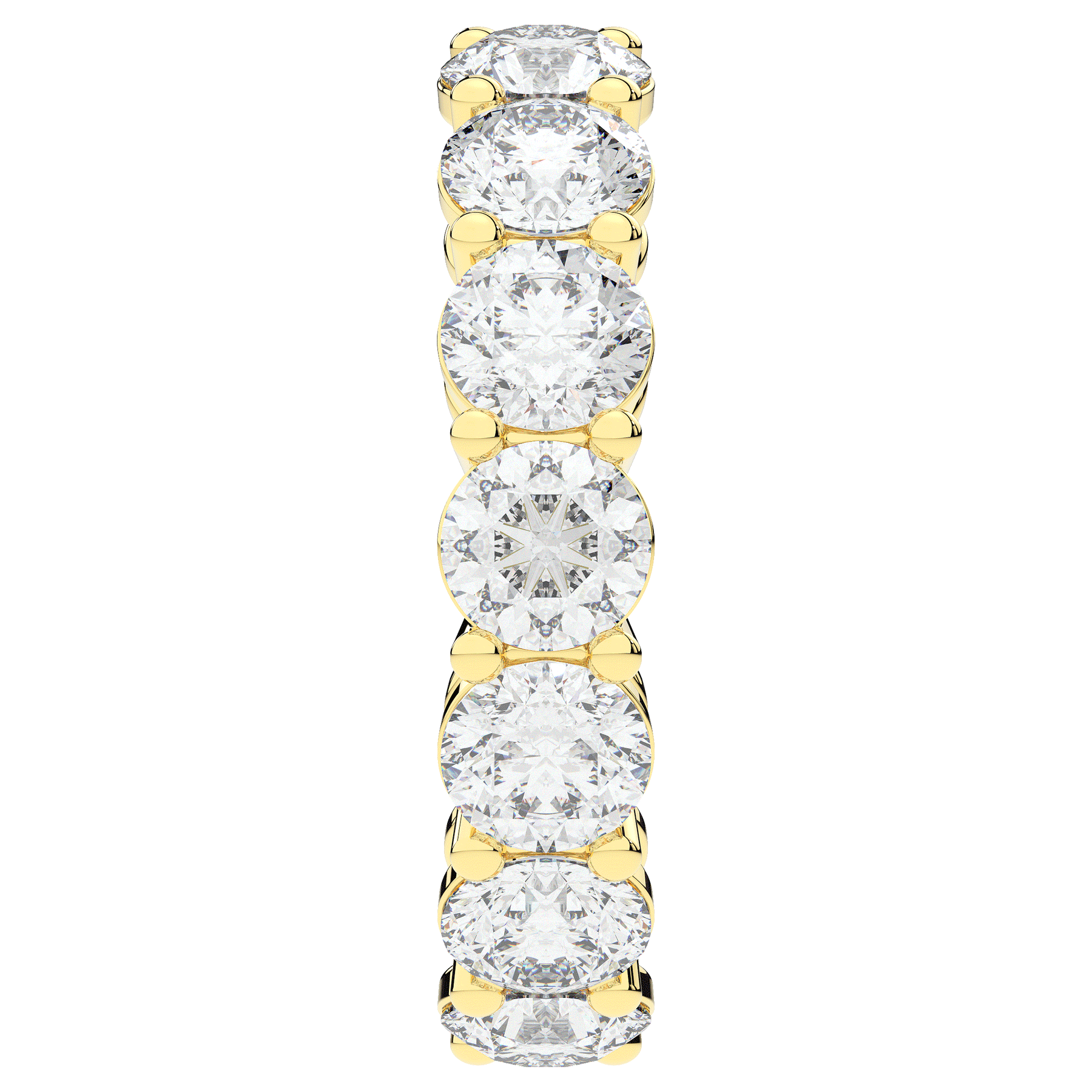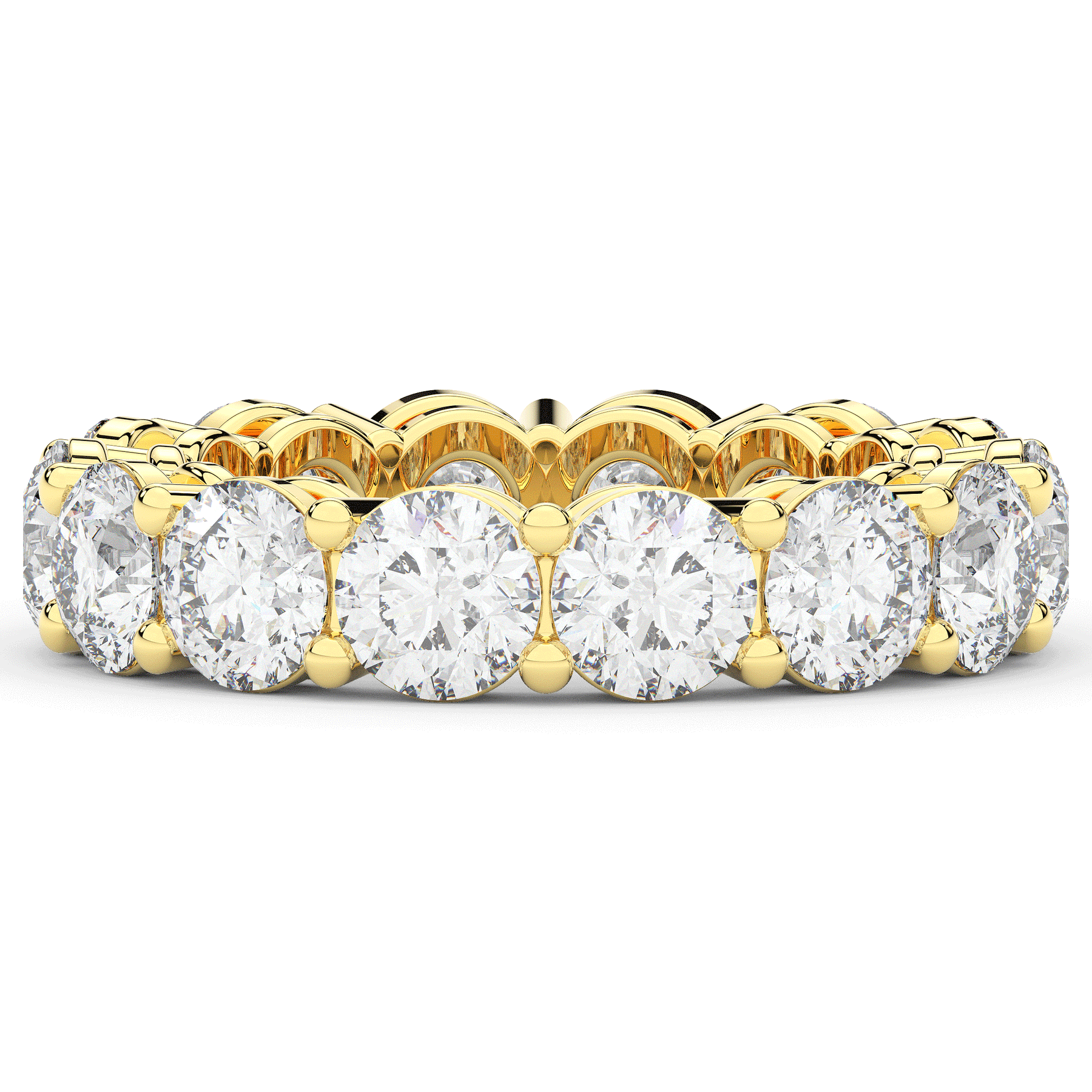 This wedding band features bright round lab grown diamonds, prong set in an eternity style. This ring is available in 14k white, yellow or rose gold, 18k yellow gold, as well as platinum.