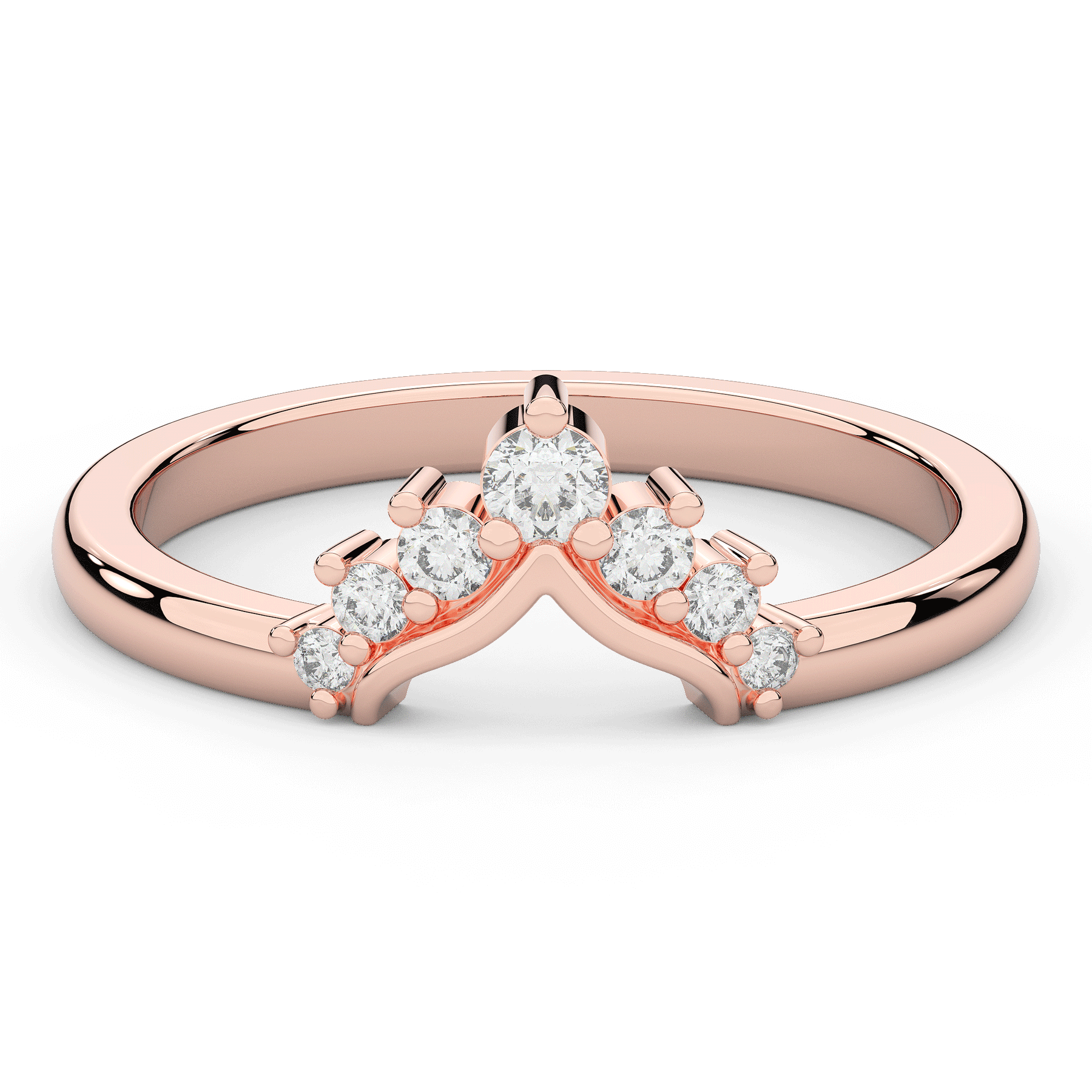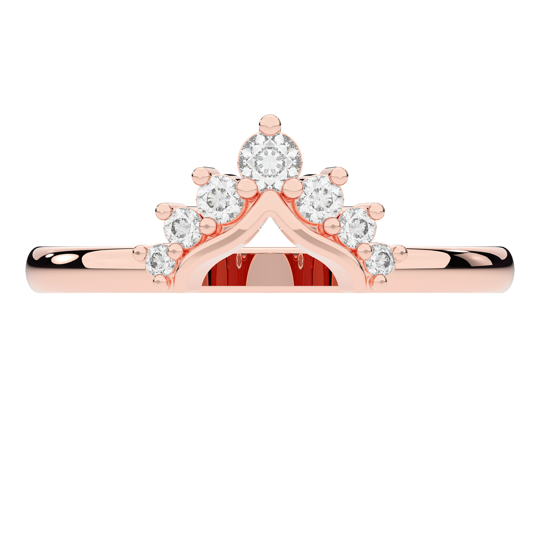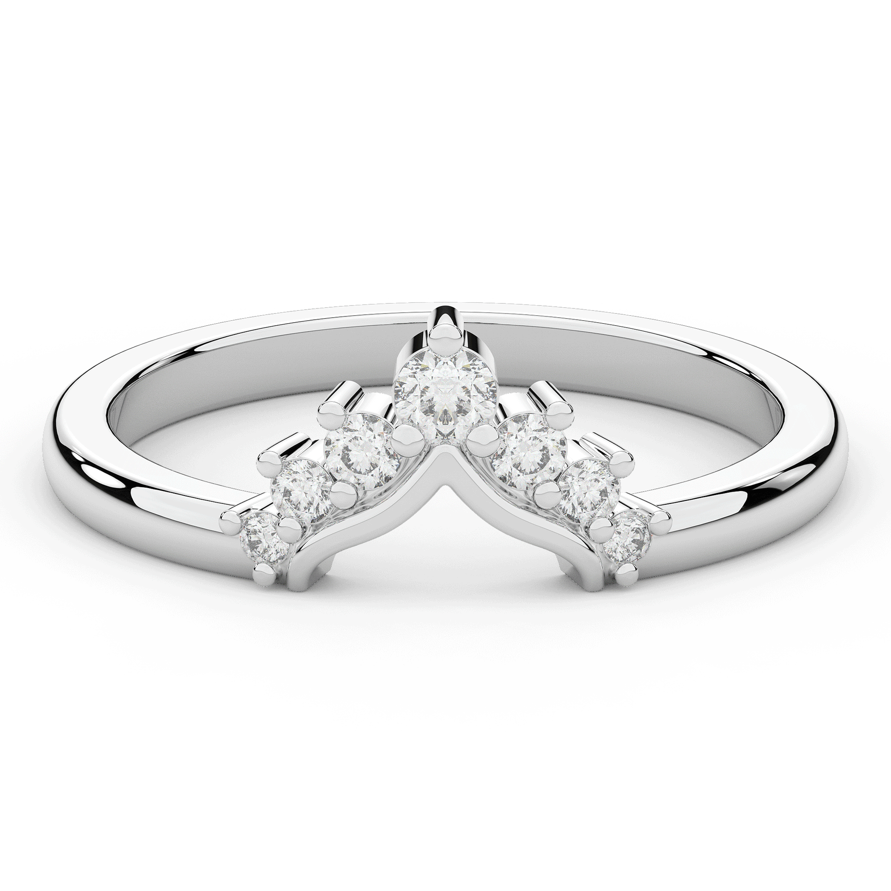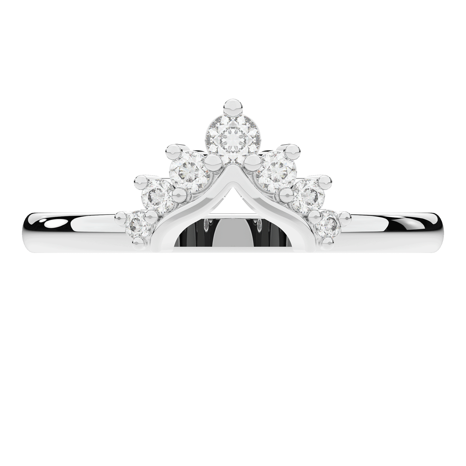This stunning wedding band is perfect for low set engagement rings with its curved tiara set with 7 bright round lab grown diamonds. This ring is available in 14k white, yellow or rose gold, 18k yellow gold, as well as platinum.