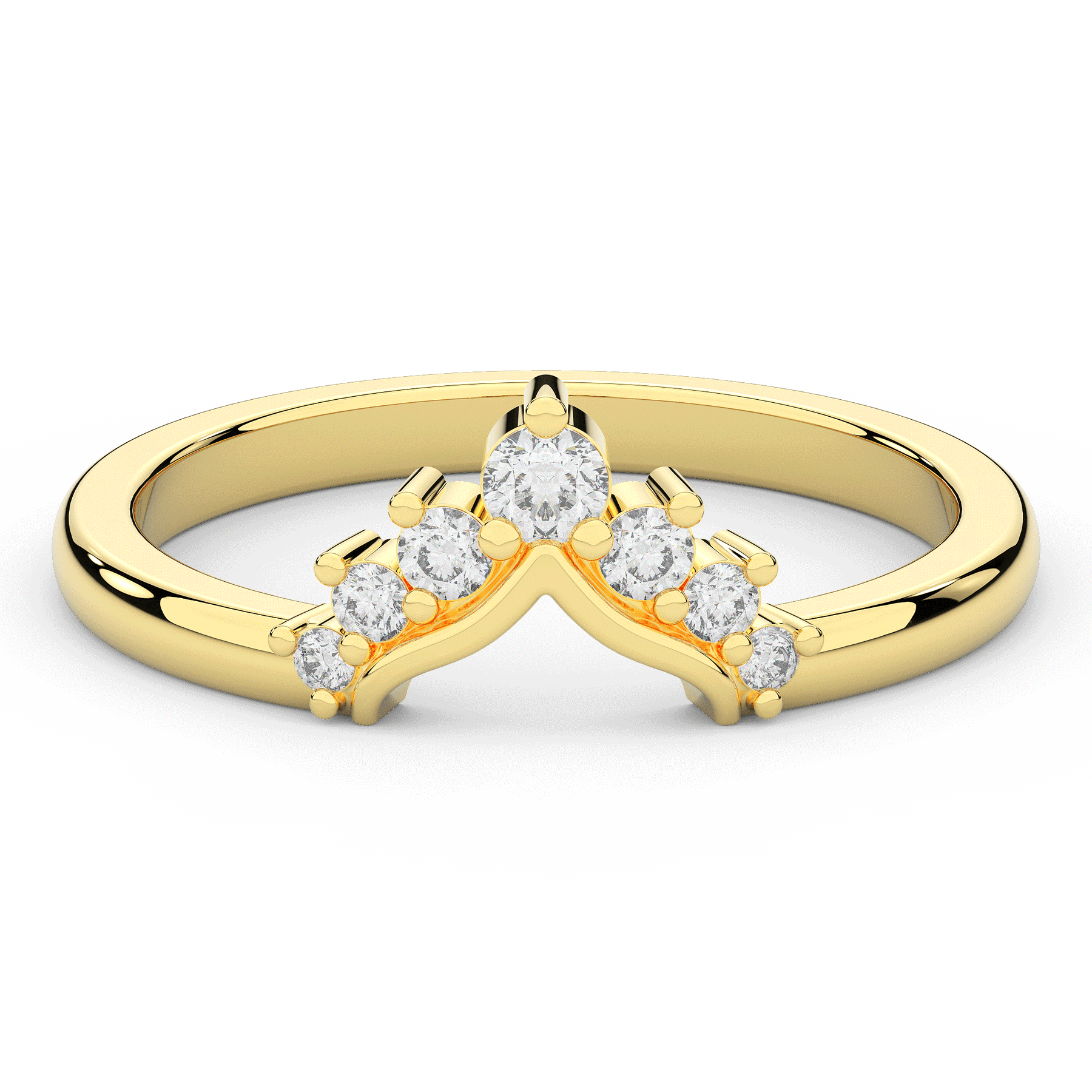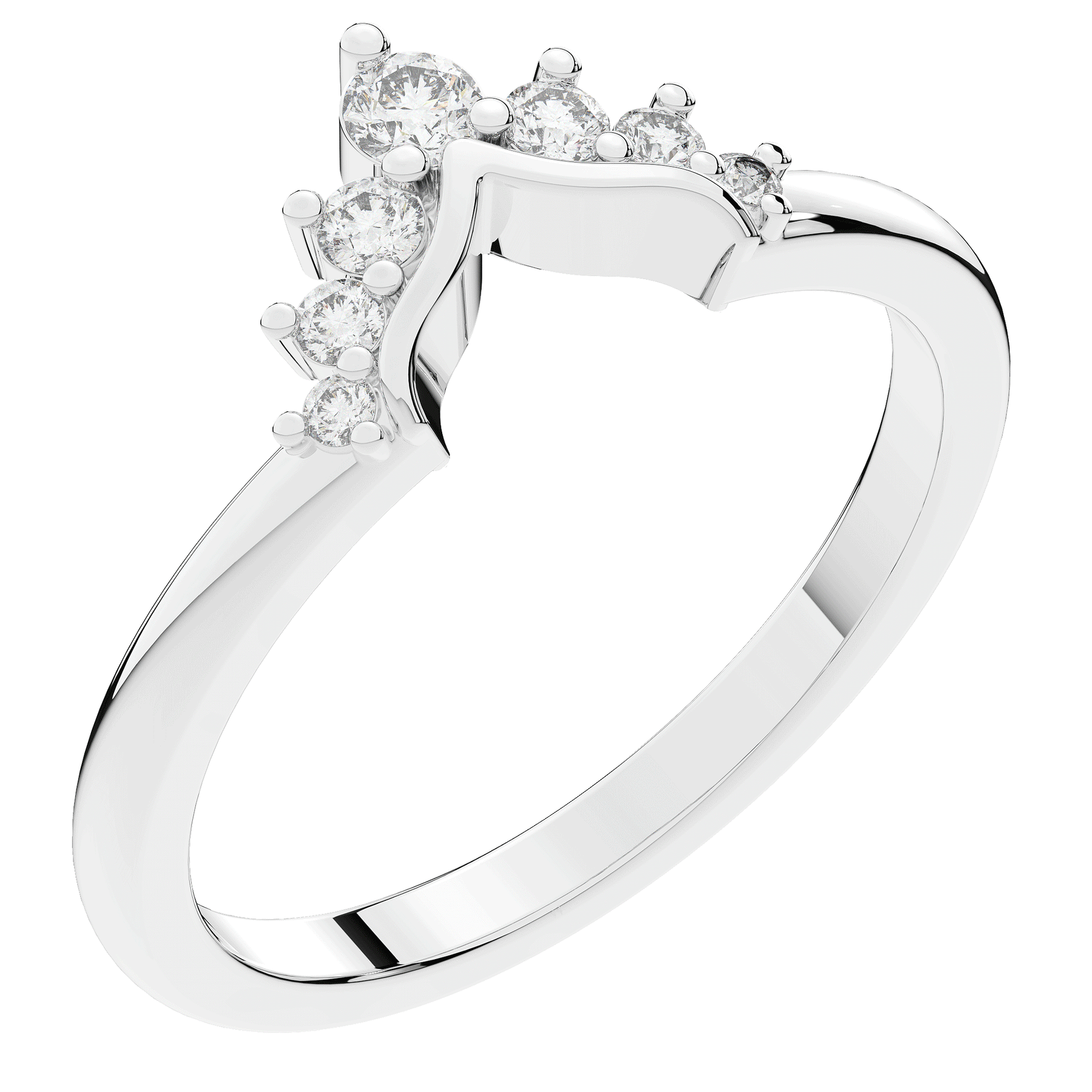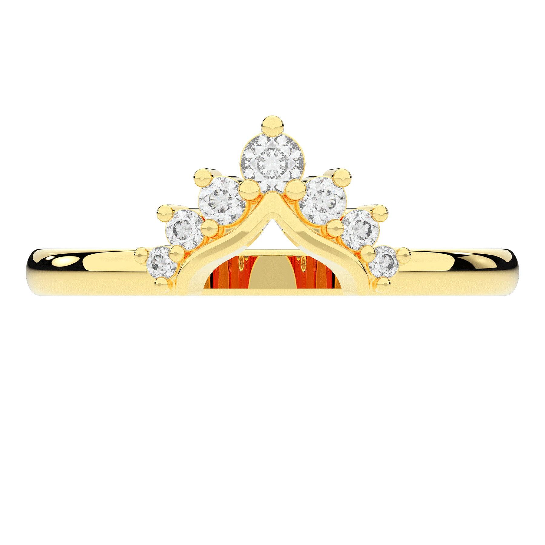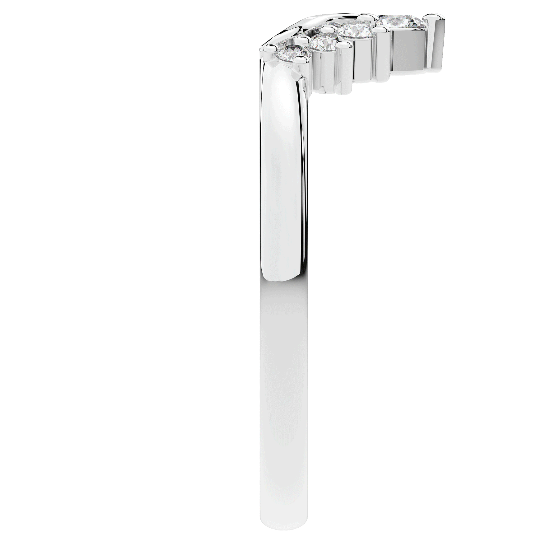 This stunning wedding band is perfect for low set engagement rings with its curved tiara set with 7 bright round lab grown diamonds. This ring is available in 14k white, yellow or rose gold, 18k yellow gold, as well as platinum.