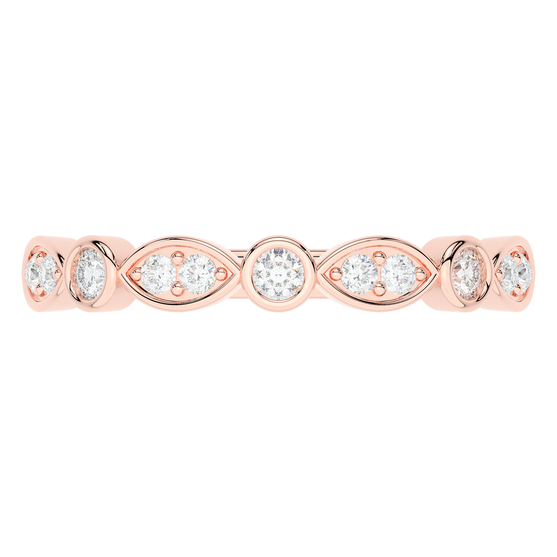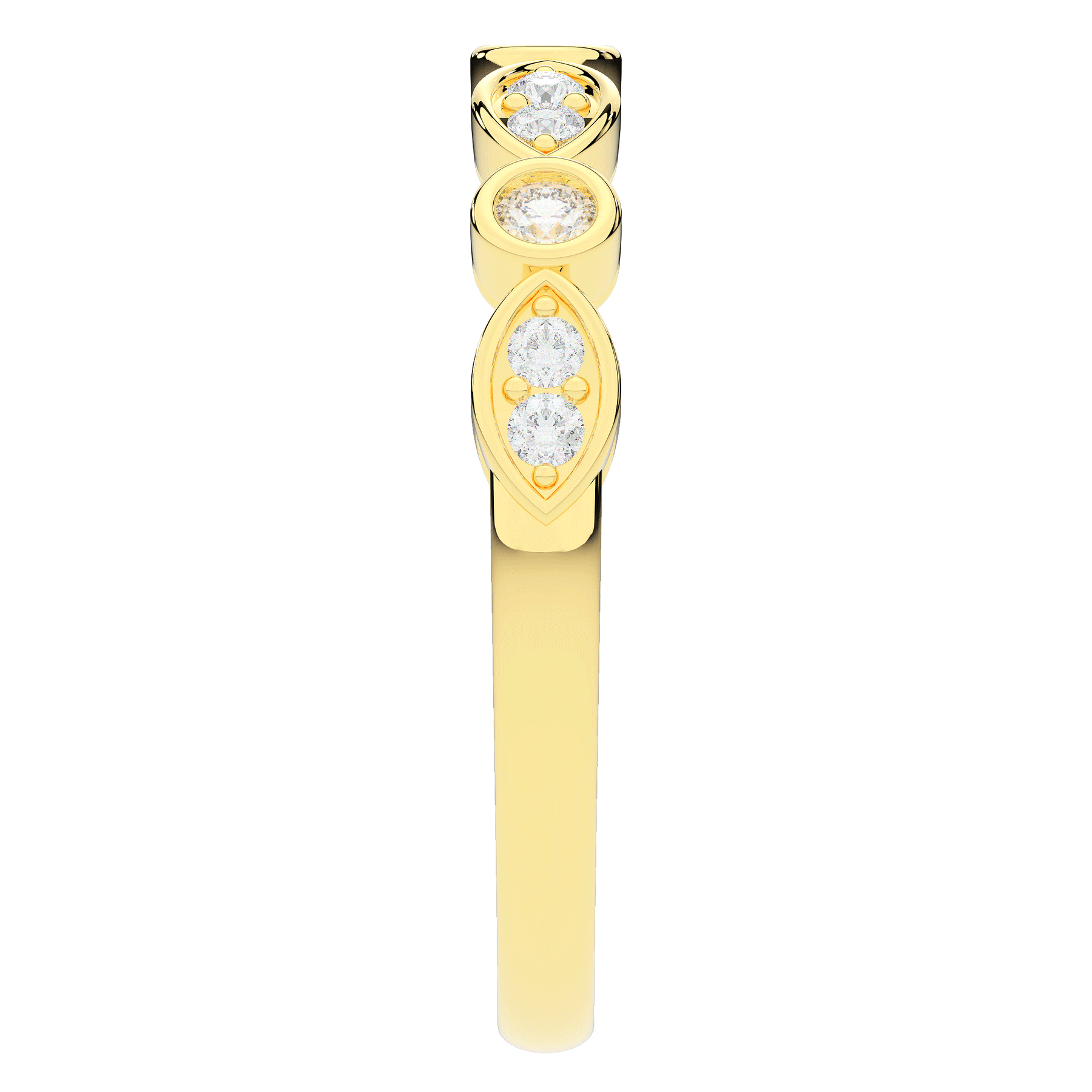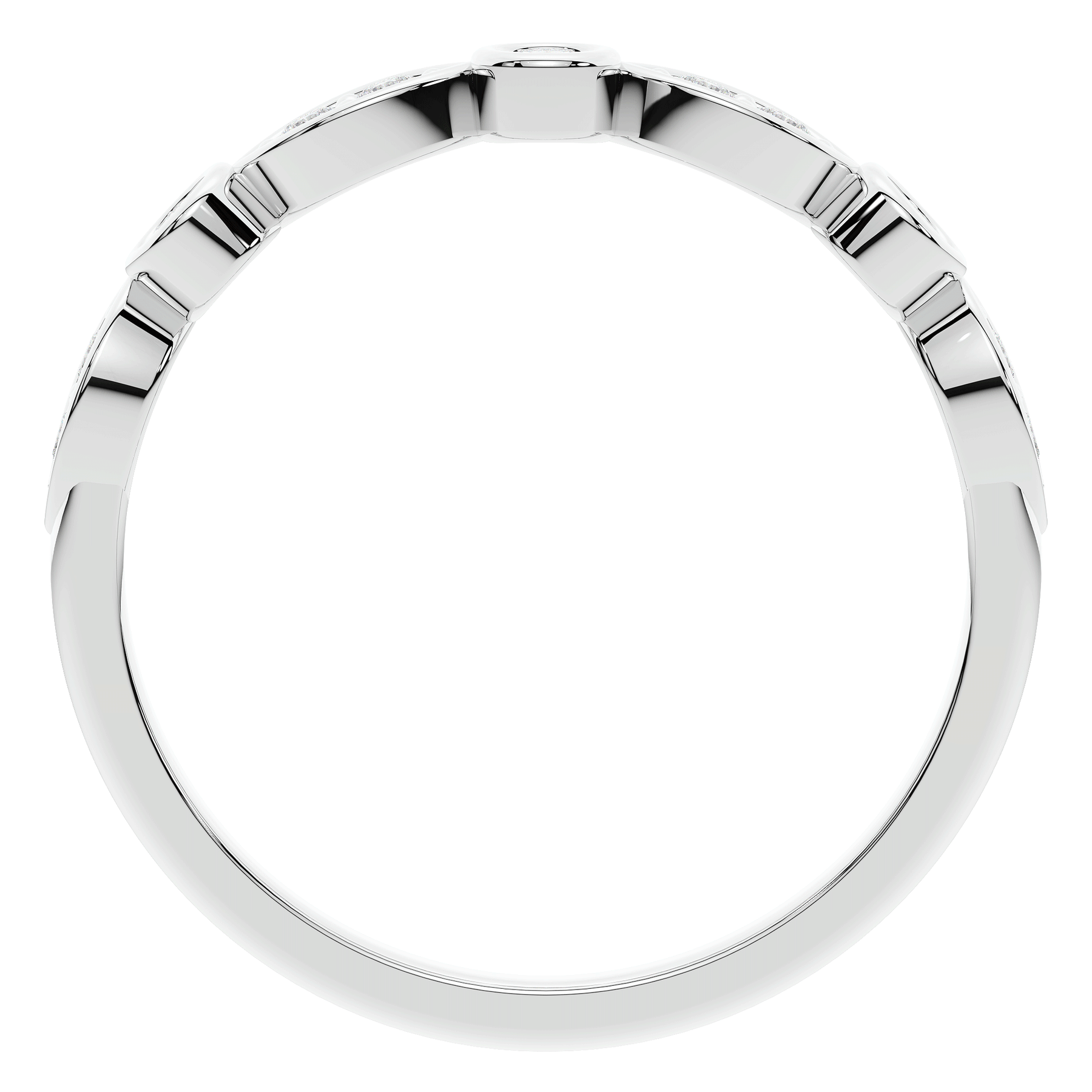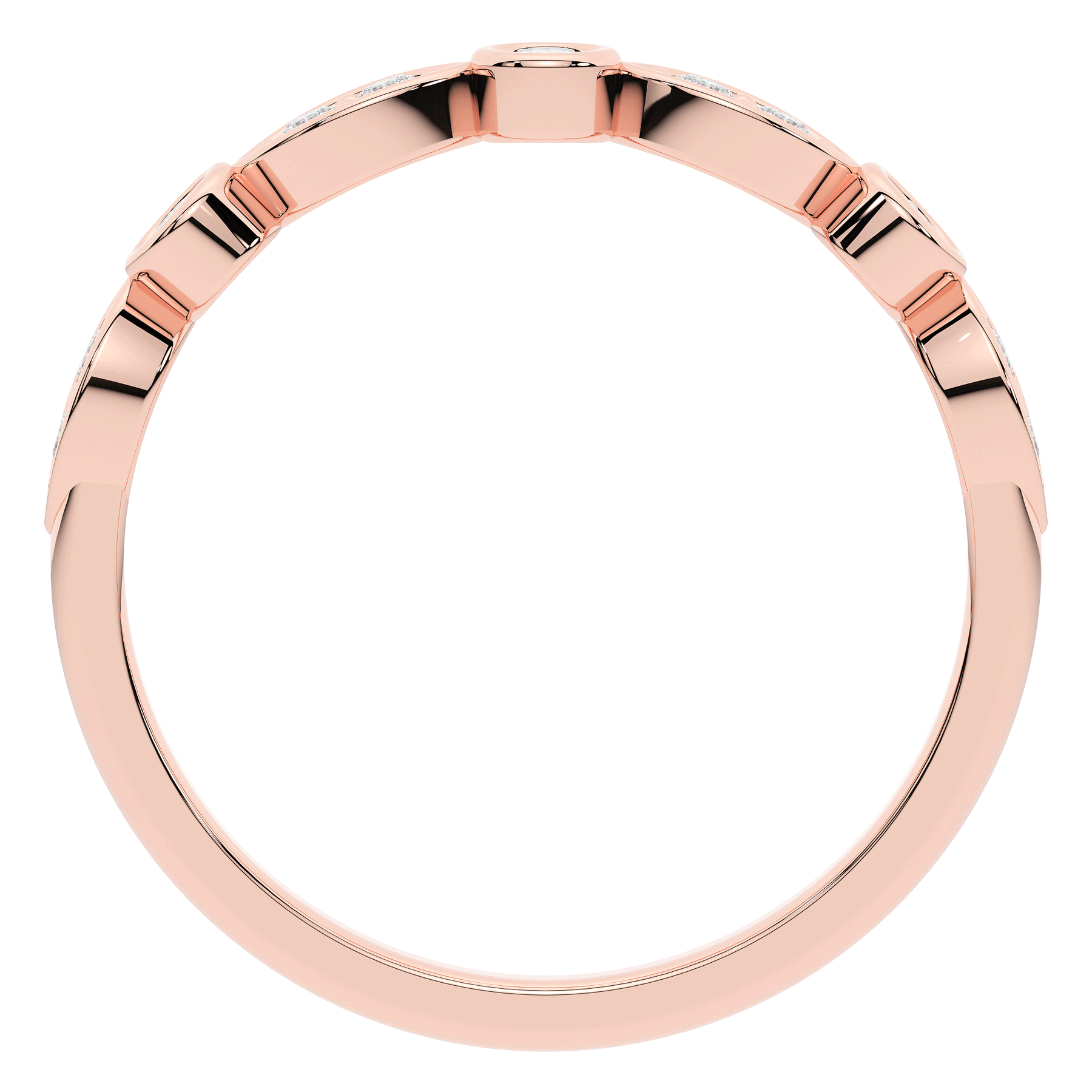 This ring features a unique style with large and small round lab grown diamonds in bezel and prong settings making for a ring with character. This ring is available in 14k white, yellow or rose gold, 18k yellow gold, as well as platinum.