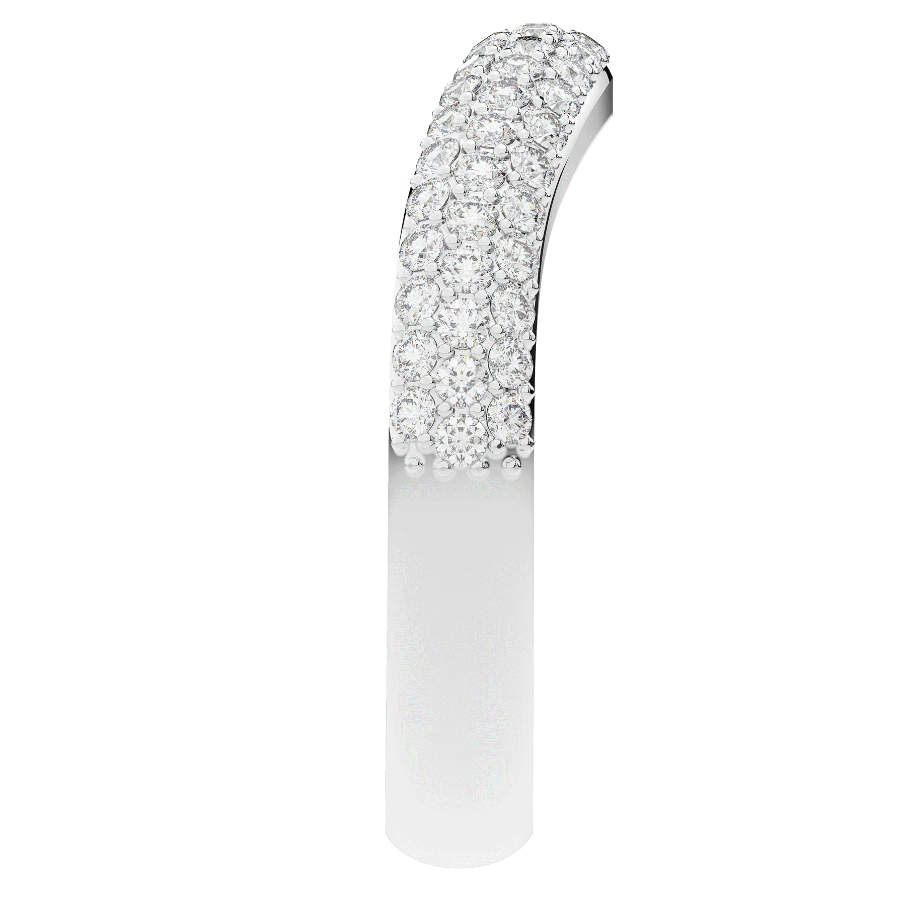 This beautiful ring features 3 rows of bright round lab grown diamonds accenting the curved contour the band. This ring is available in 14k white, yellow or rose gold, 18k yellow gold, as well as platinum.