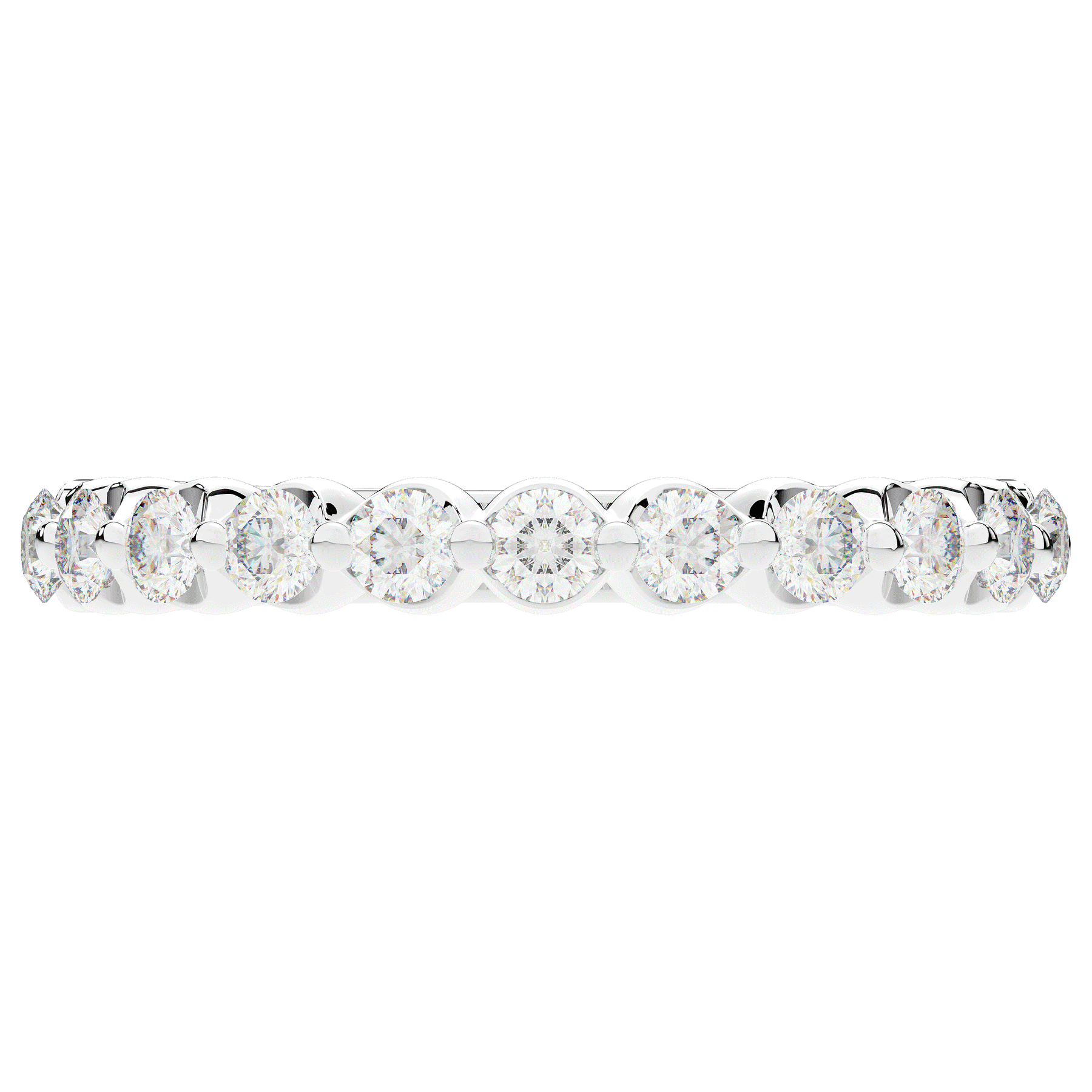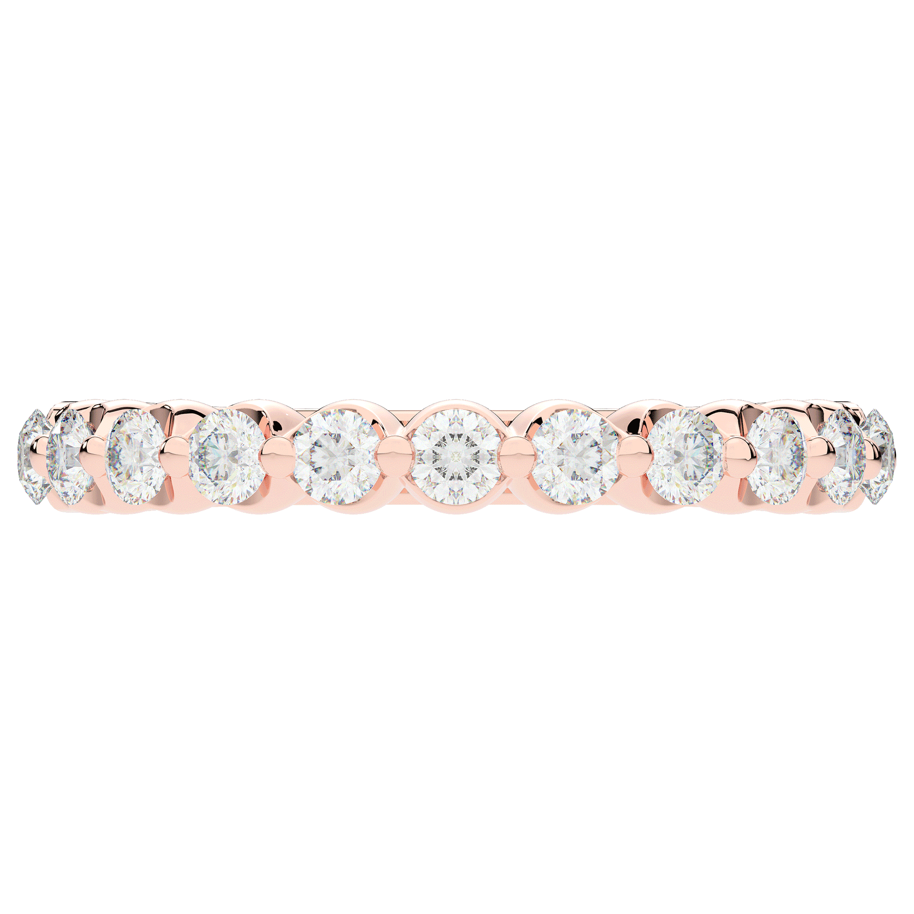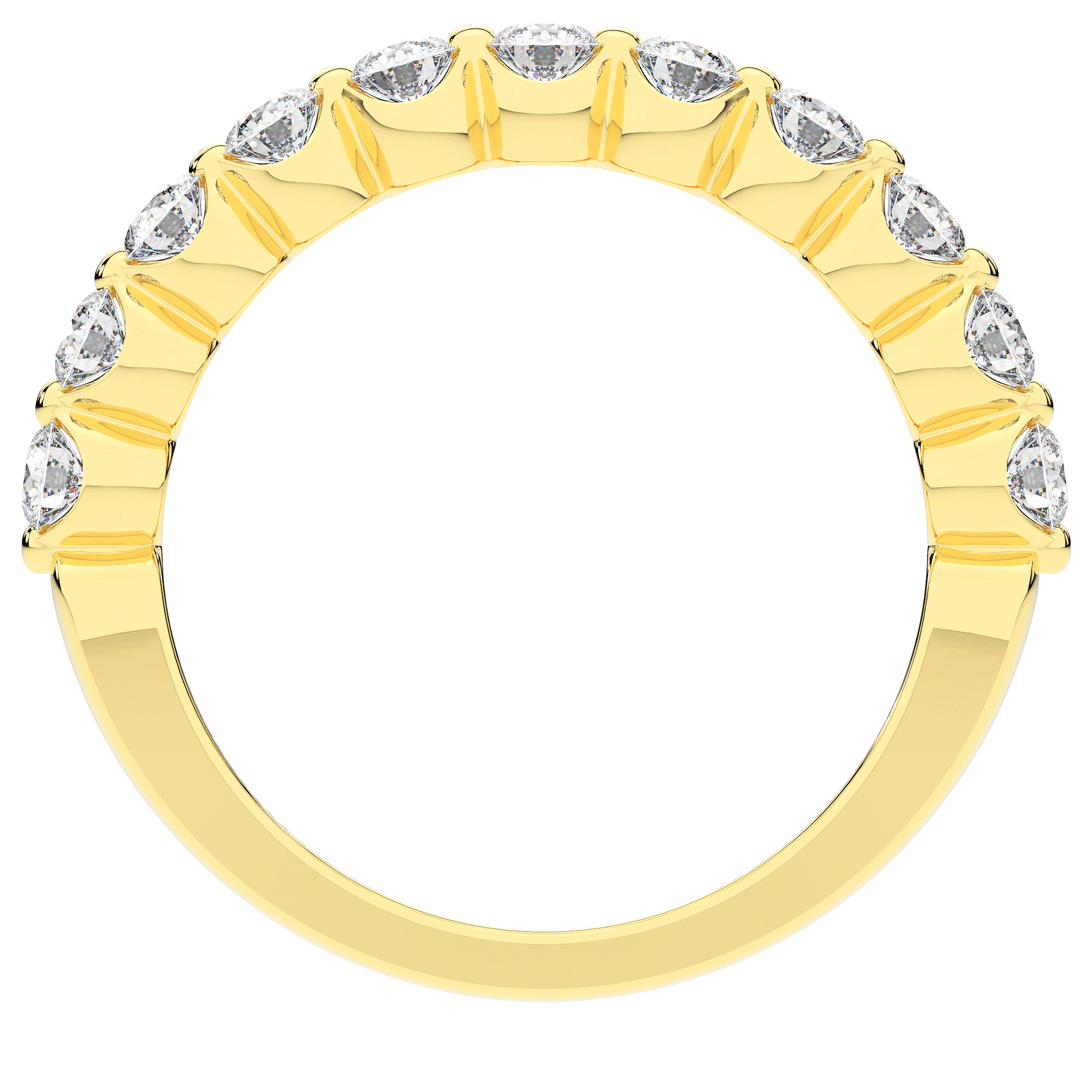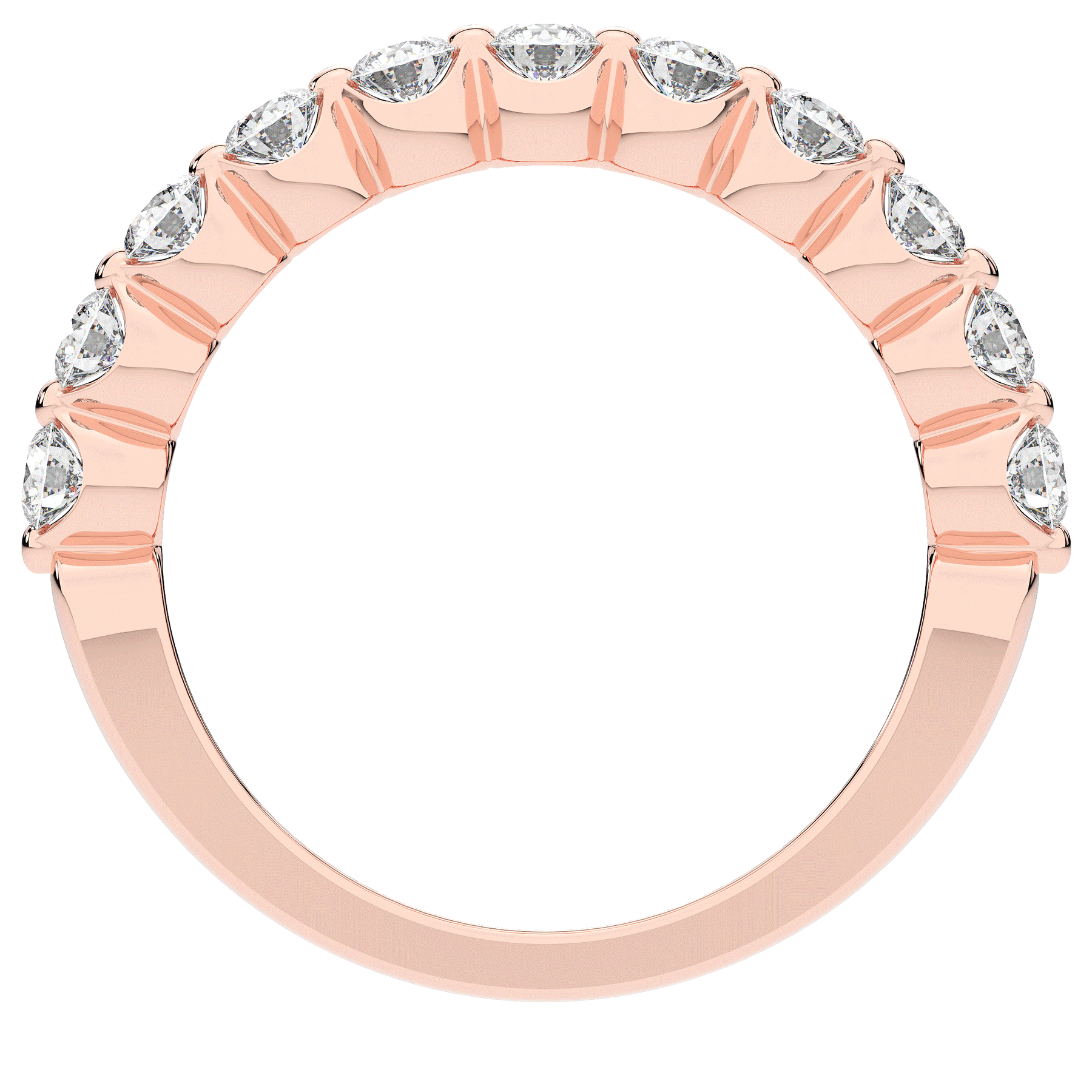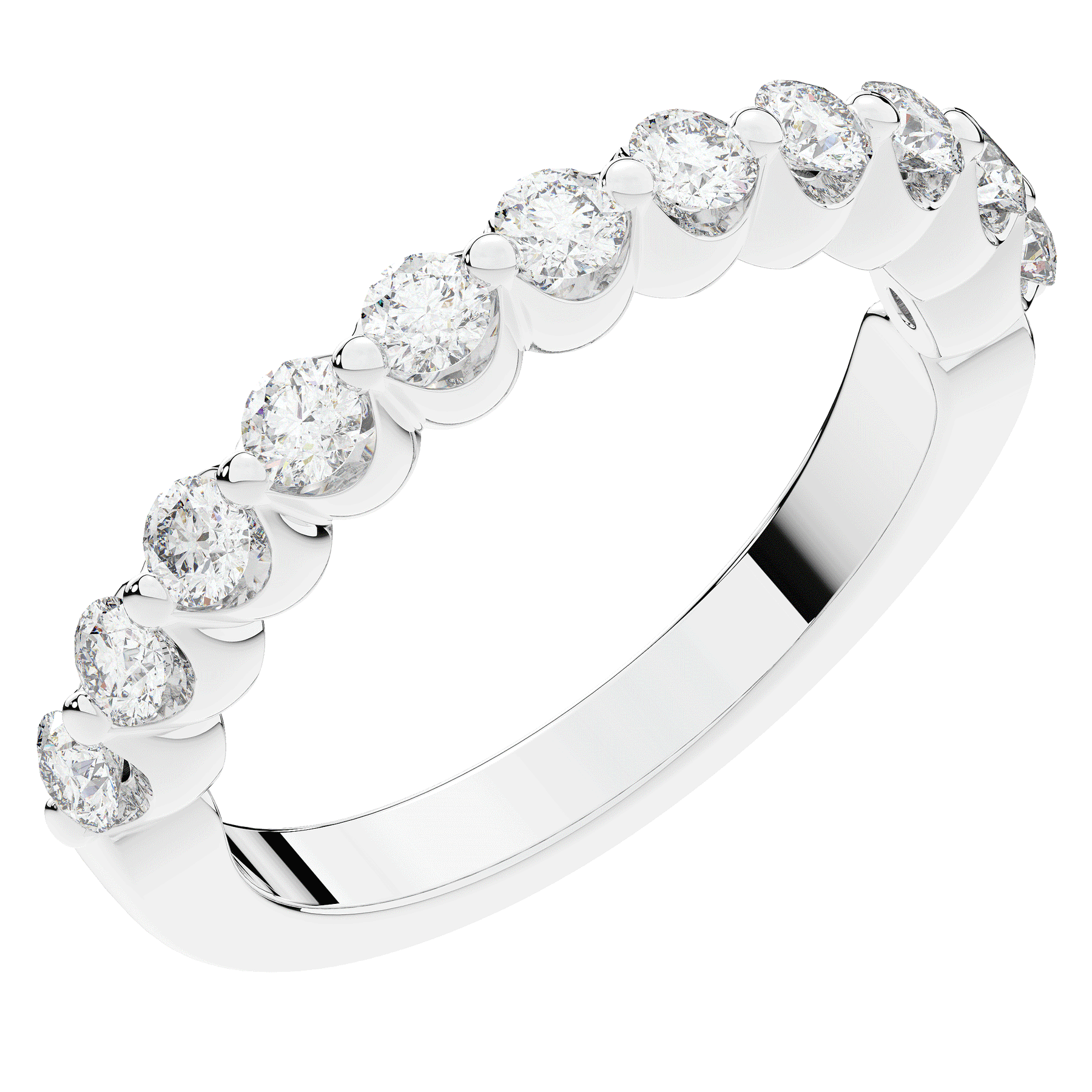This ring features a stunning scalloped side band with shared prongs for the round lab grown diamonds, to show as much of the diamonds as possible. This ring is available in 14k white, yellow or rose gold, 18k yellow gold, as well as platinum.
