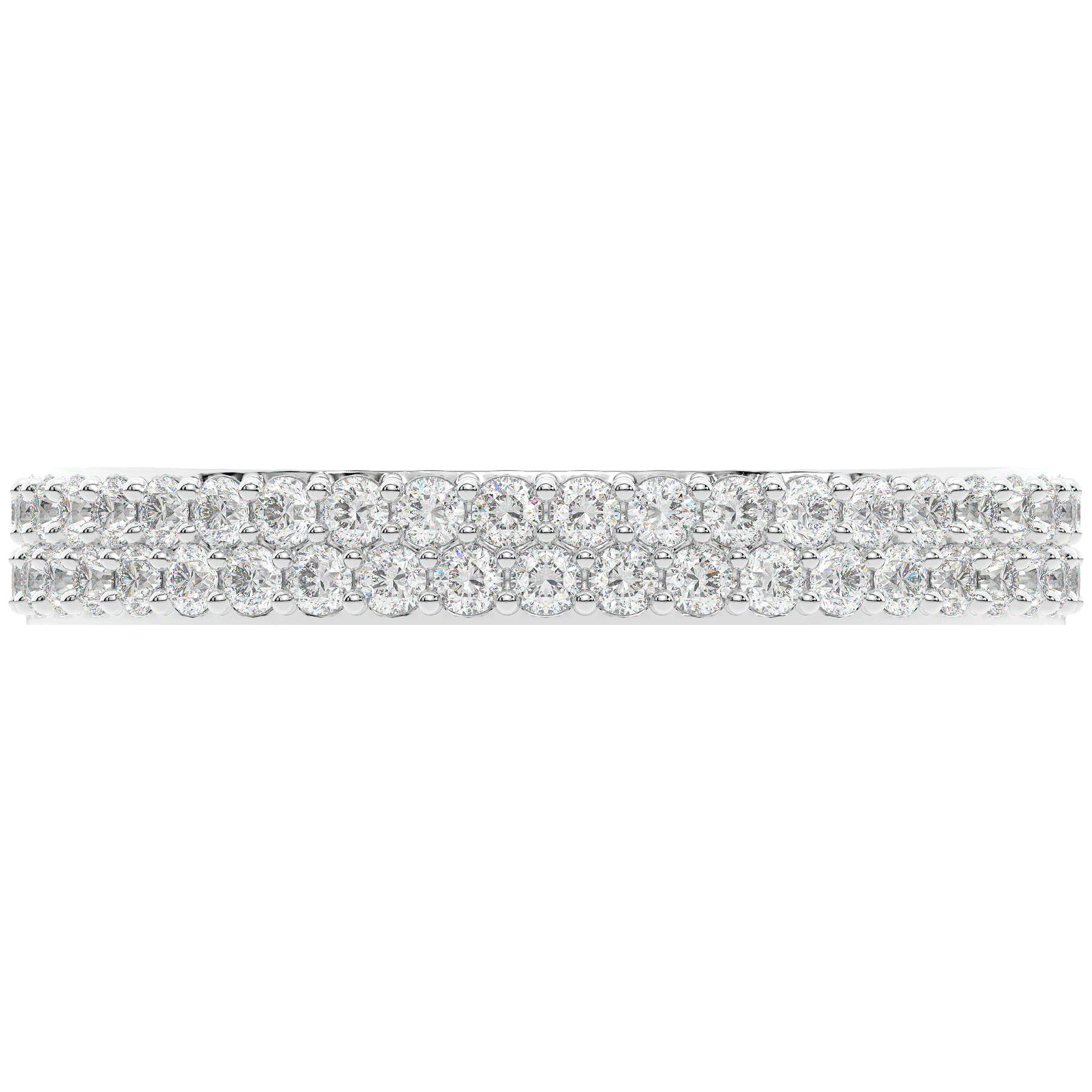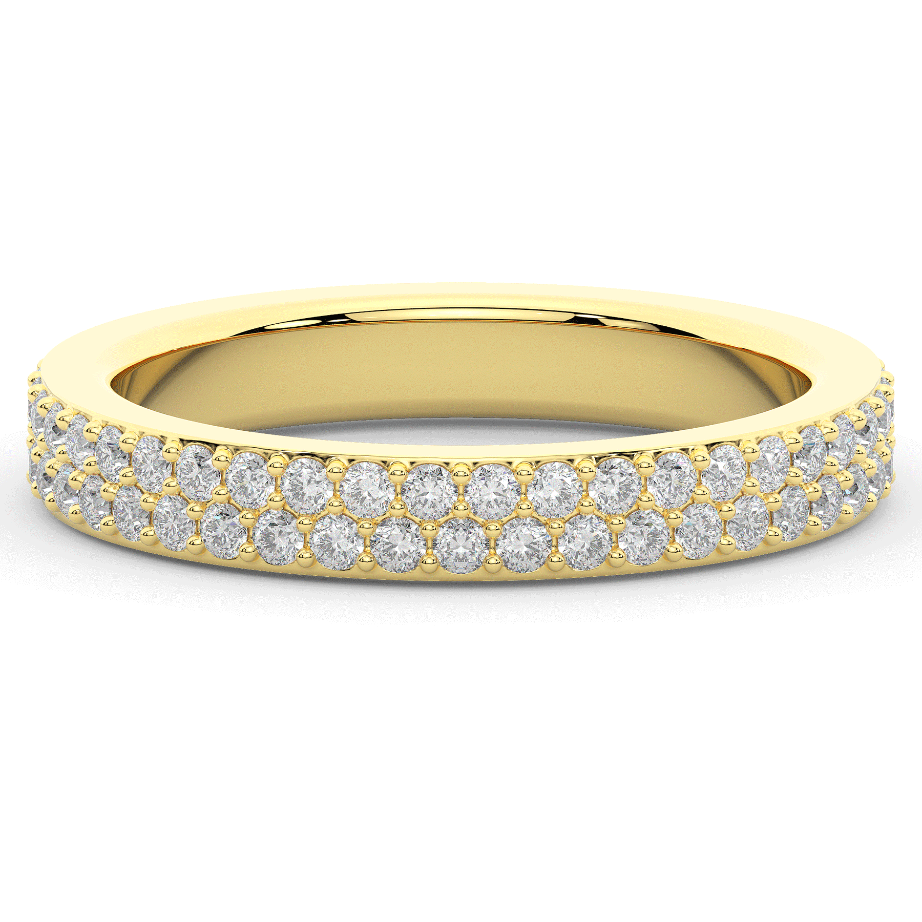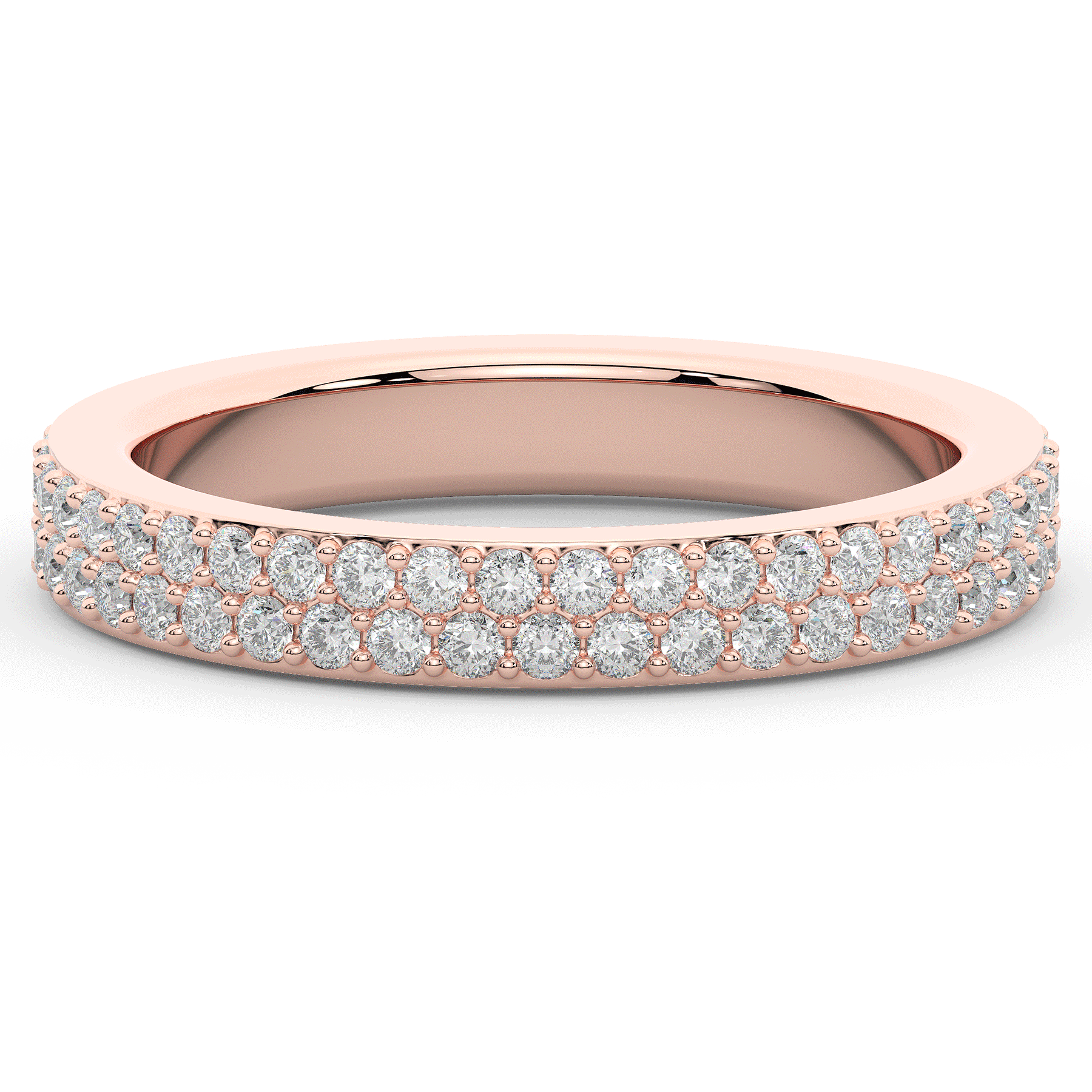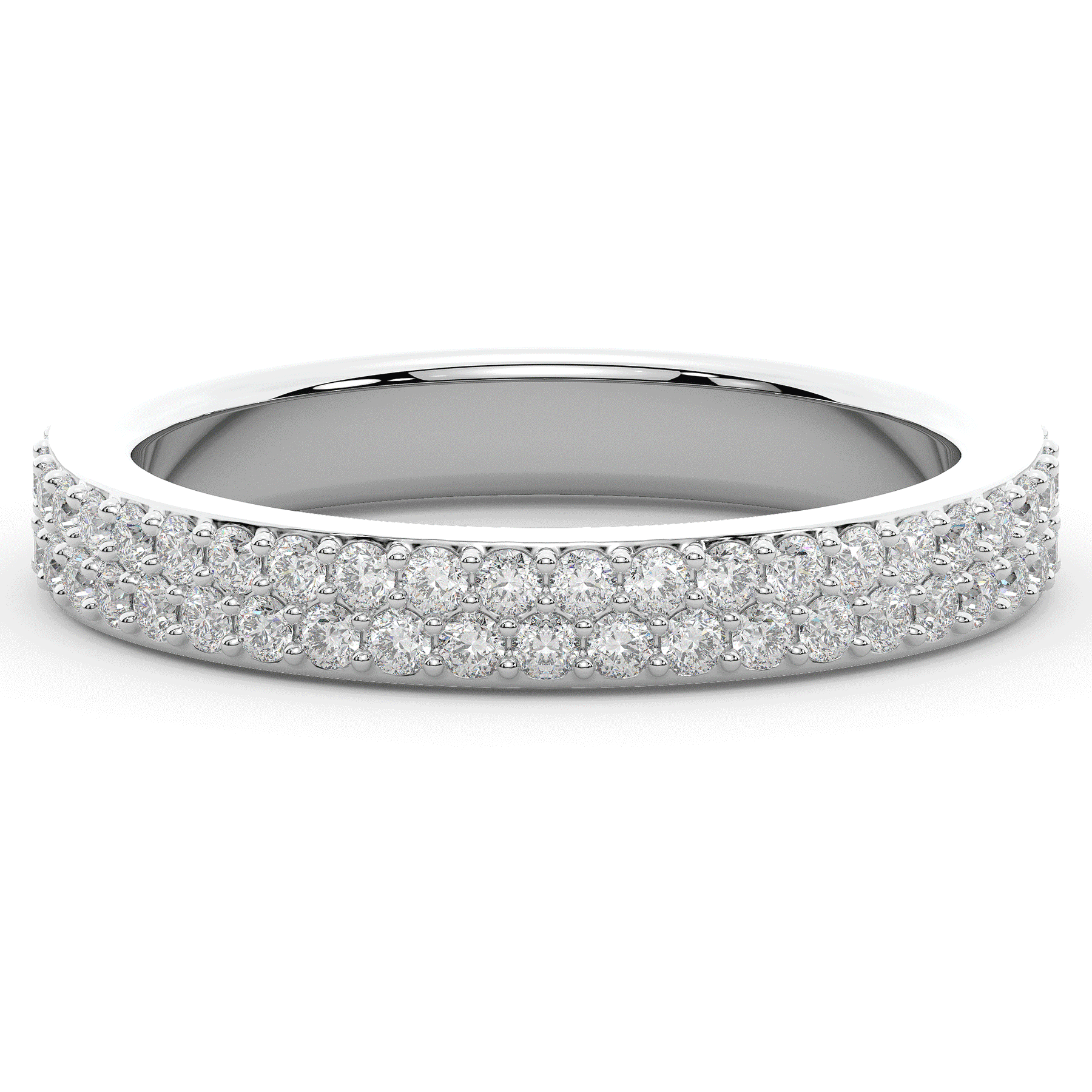 This wedding band features two rows of lab diamonds accenting the band, making for a beautiful wedding band to pair with any Nazarelle engagement ring. This ring is available in 14k white, yellow or rose gold, 18k yellow gold, as well as platinum.