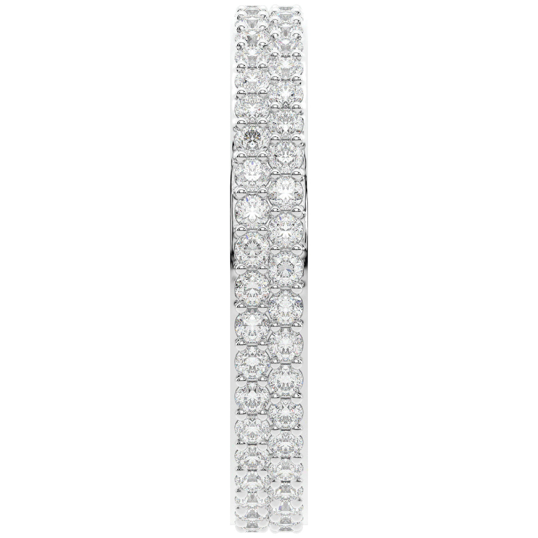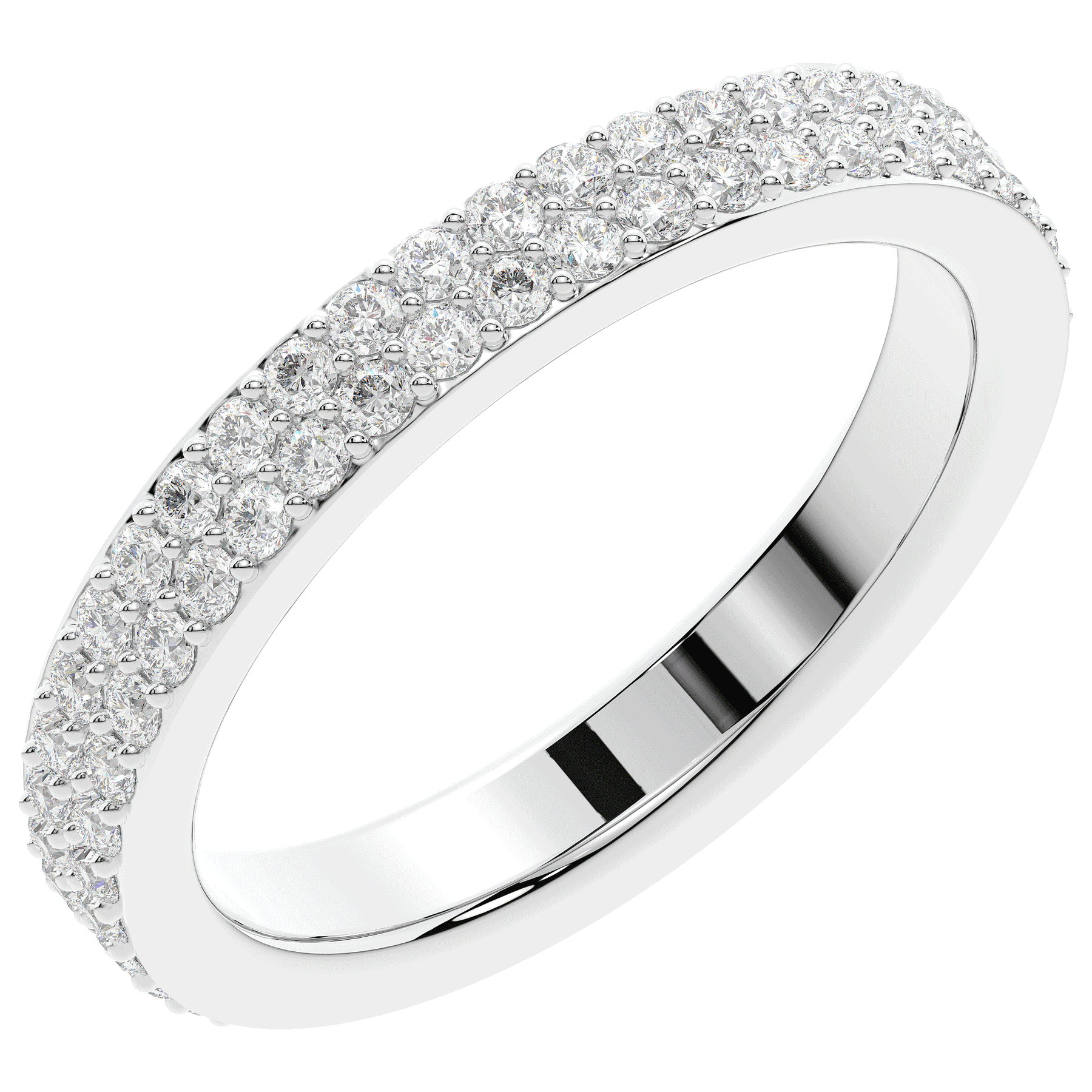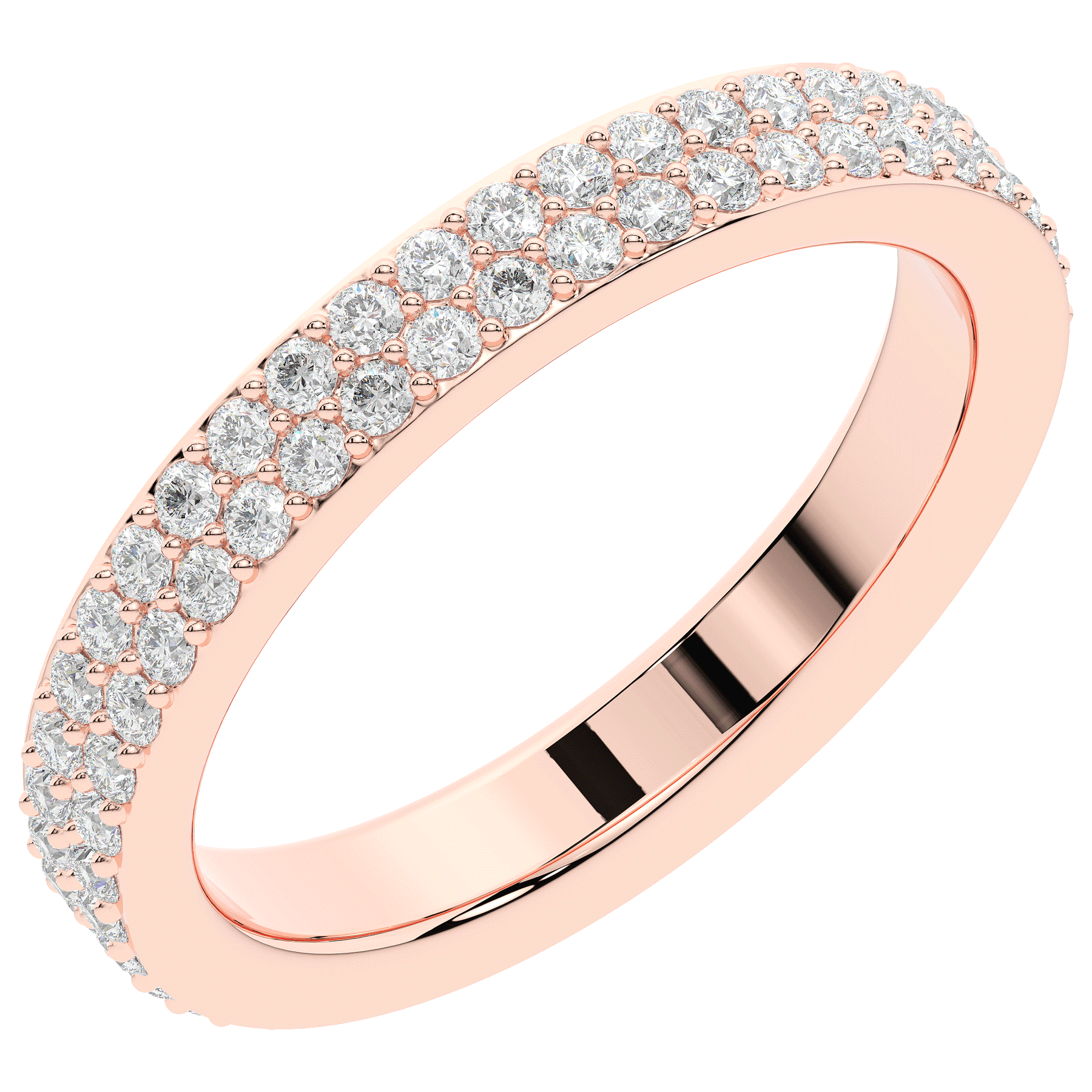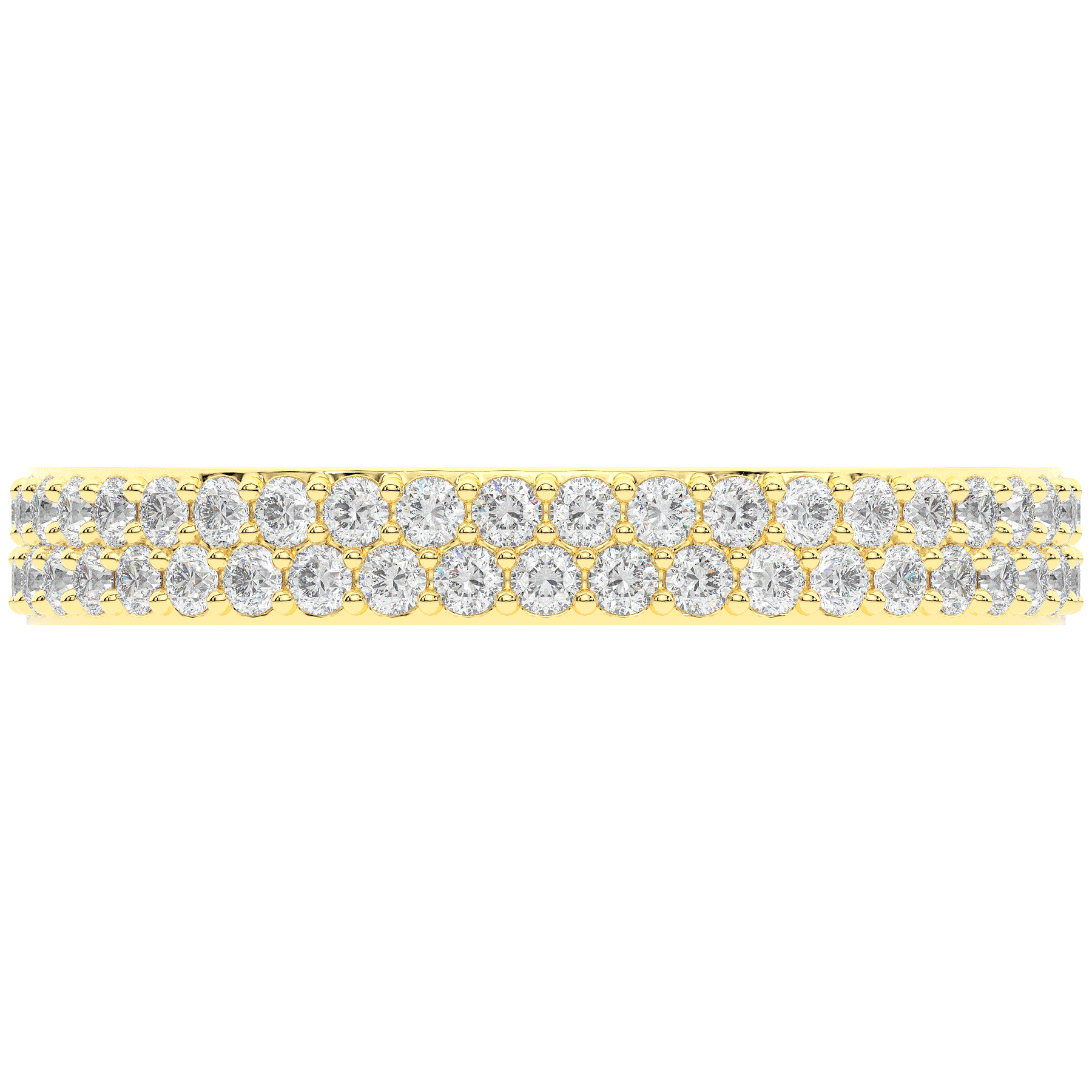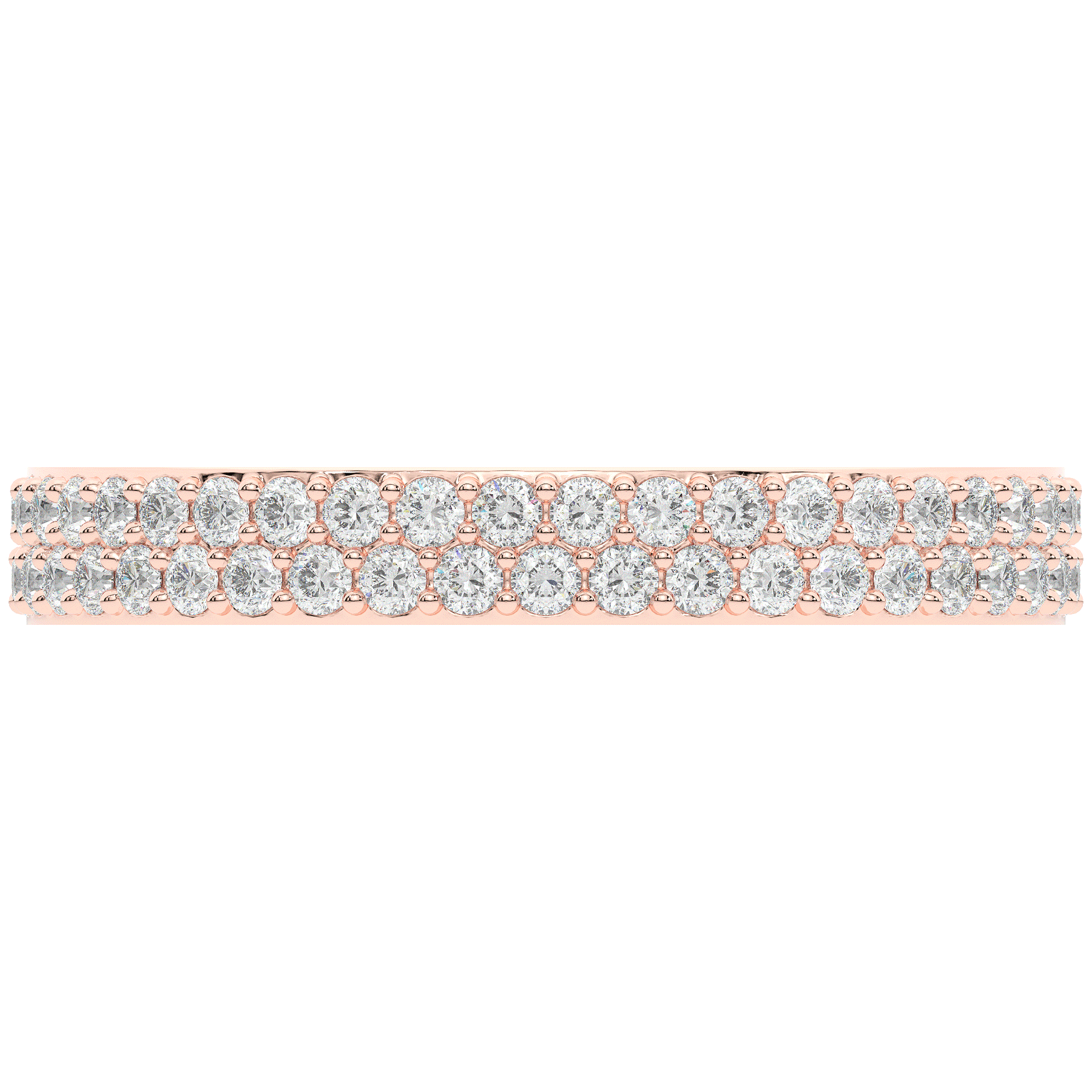 This wedding band features two rows of lab diamonds accenting the band, making for a beautiful wedding band to pair with any Nazarelle engagement ring. This ring is available in 14k white, yellow or rose gold, 18k yellow gold, as well as platinum.
