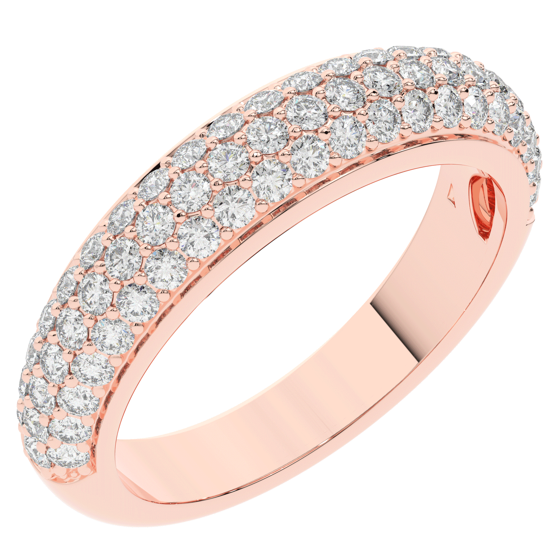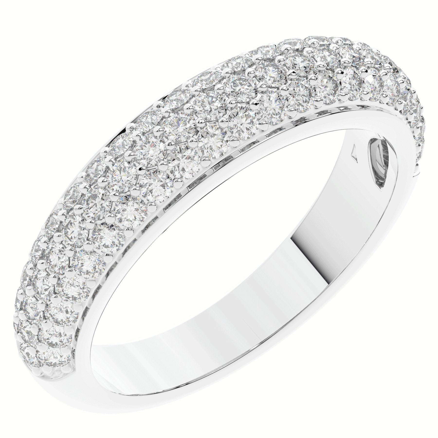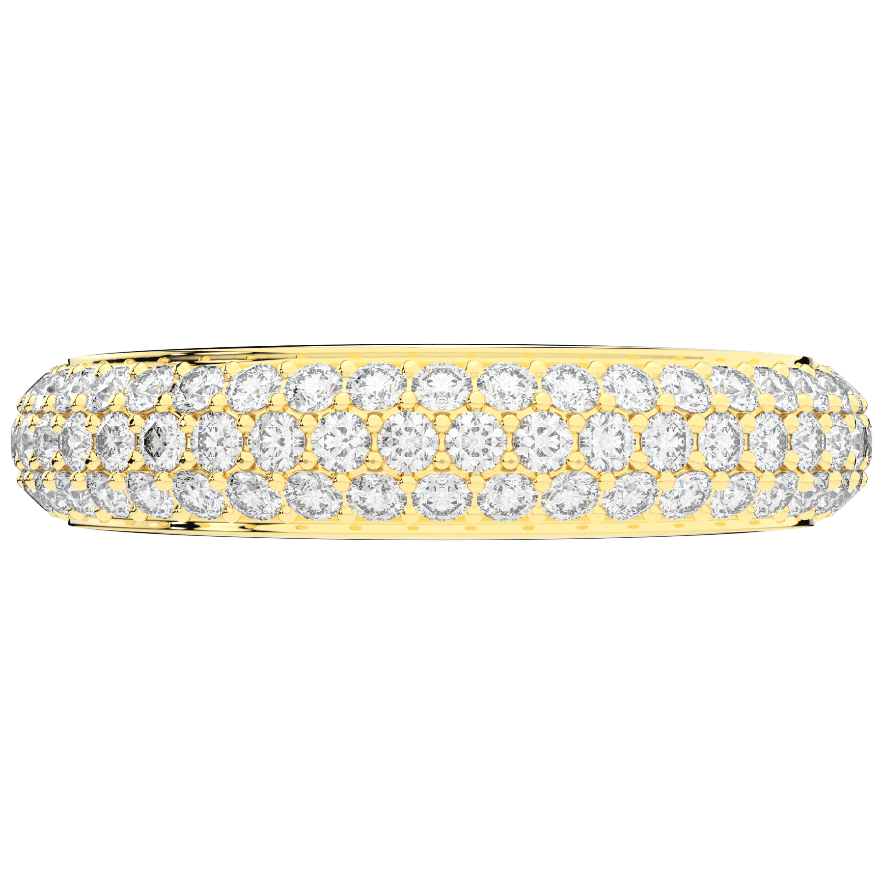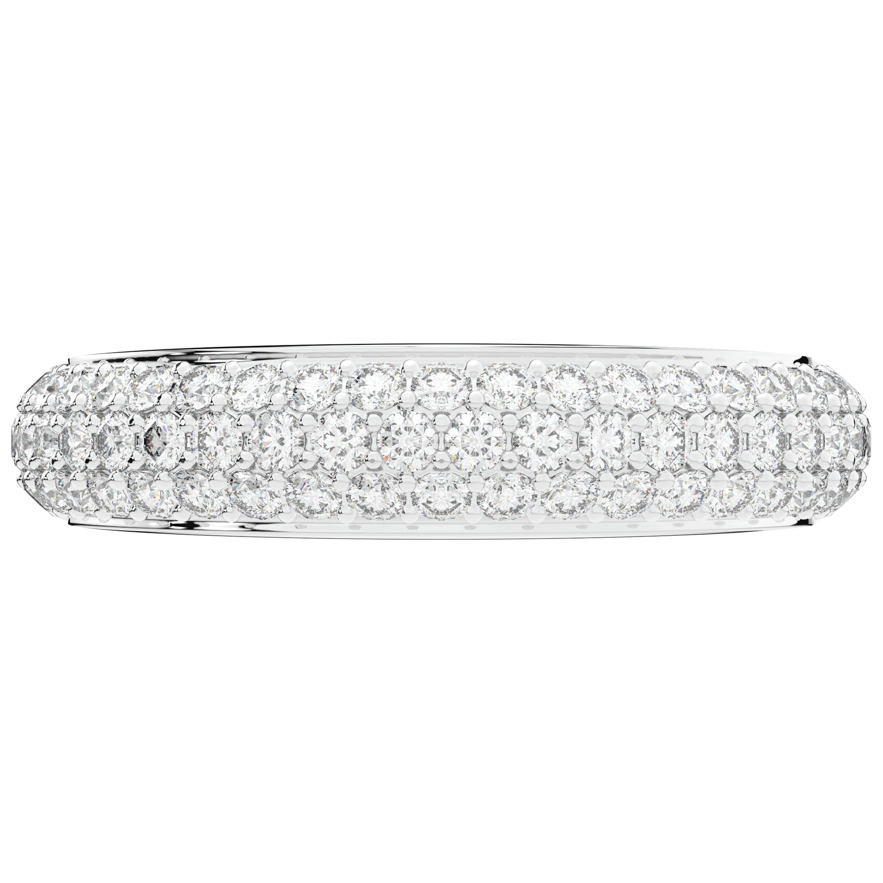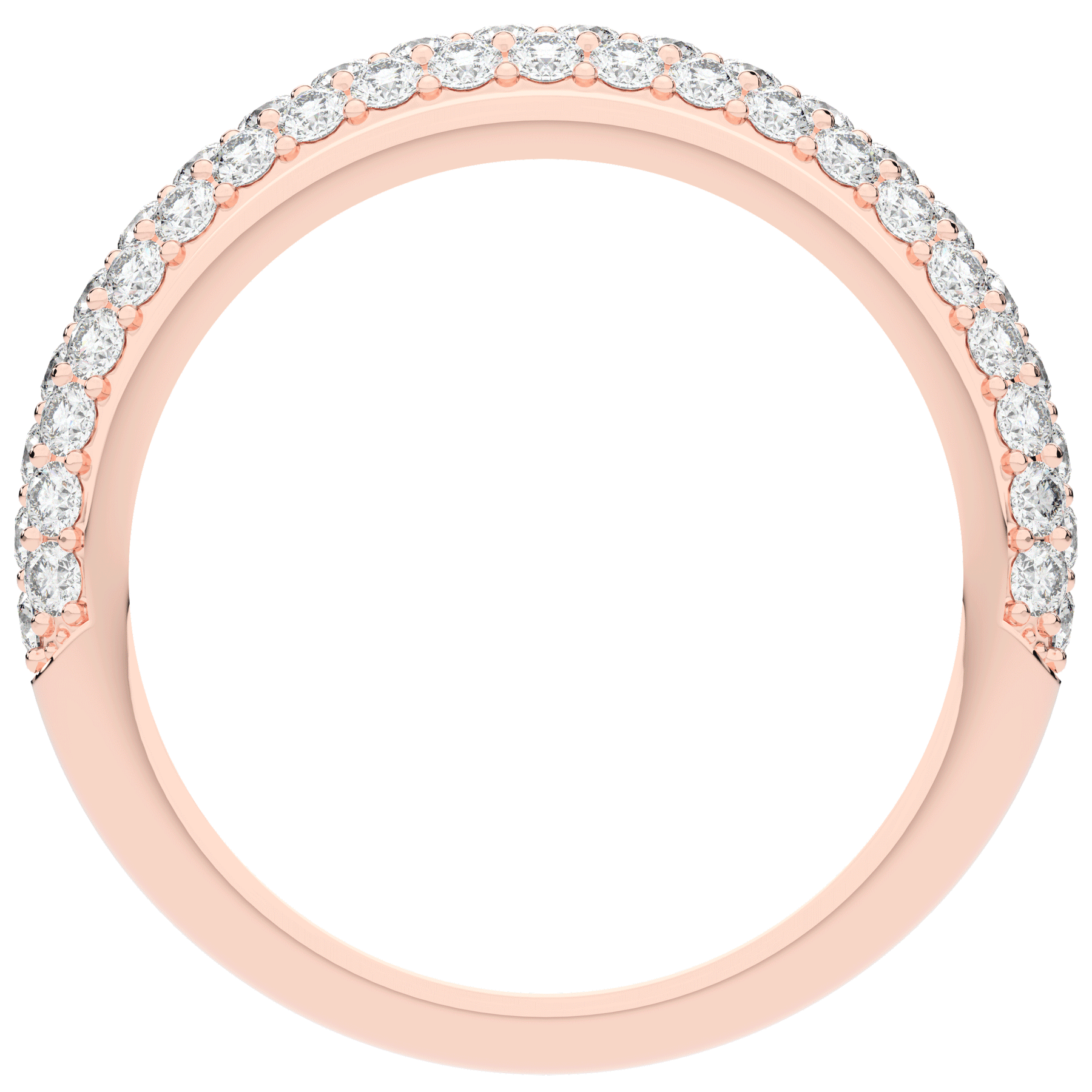 This beautiful ring features 3 rows of bright round lab grown diamonds accenting the band. This ring is available in 14k white, yellow or rose gold, 18k yellow gold, as well as platinum.